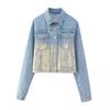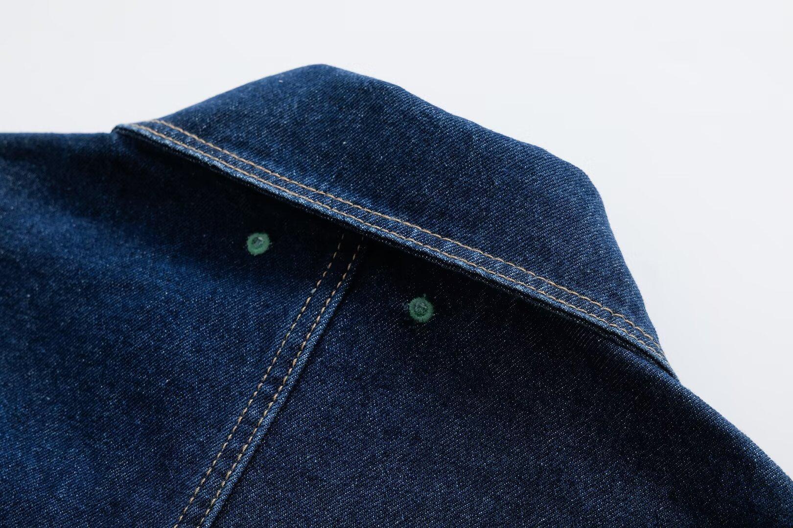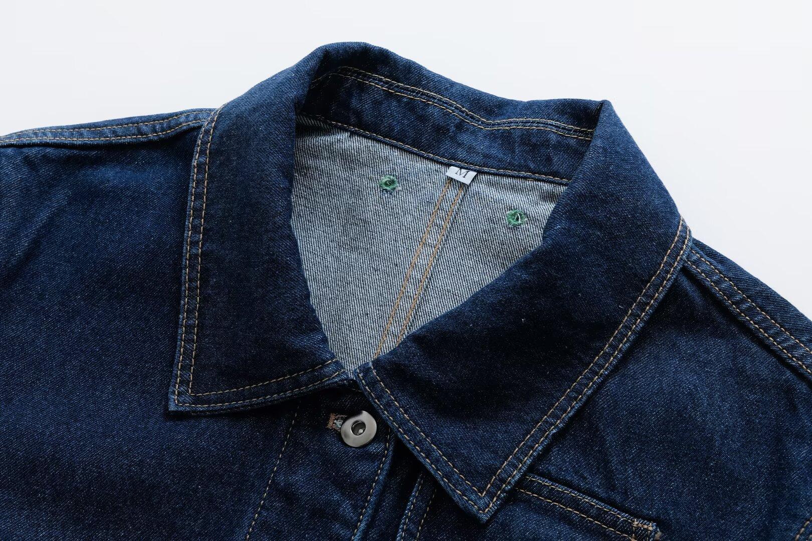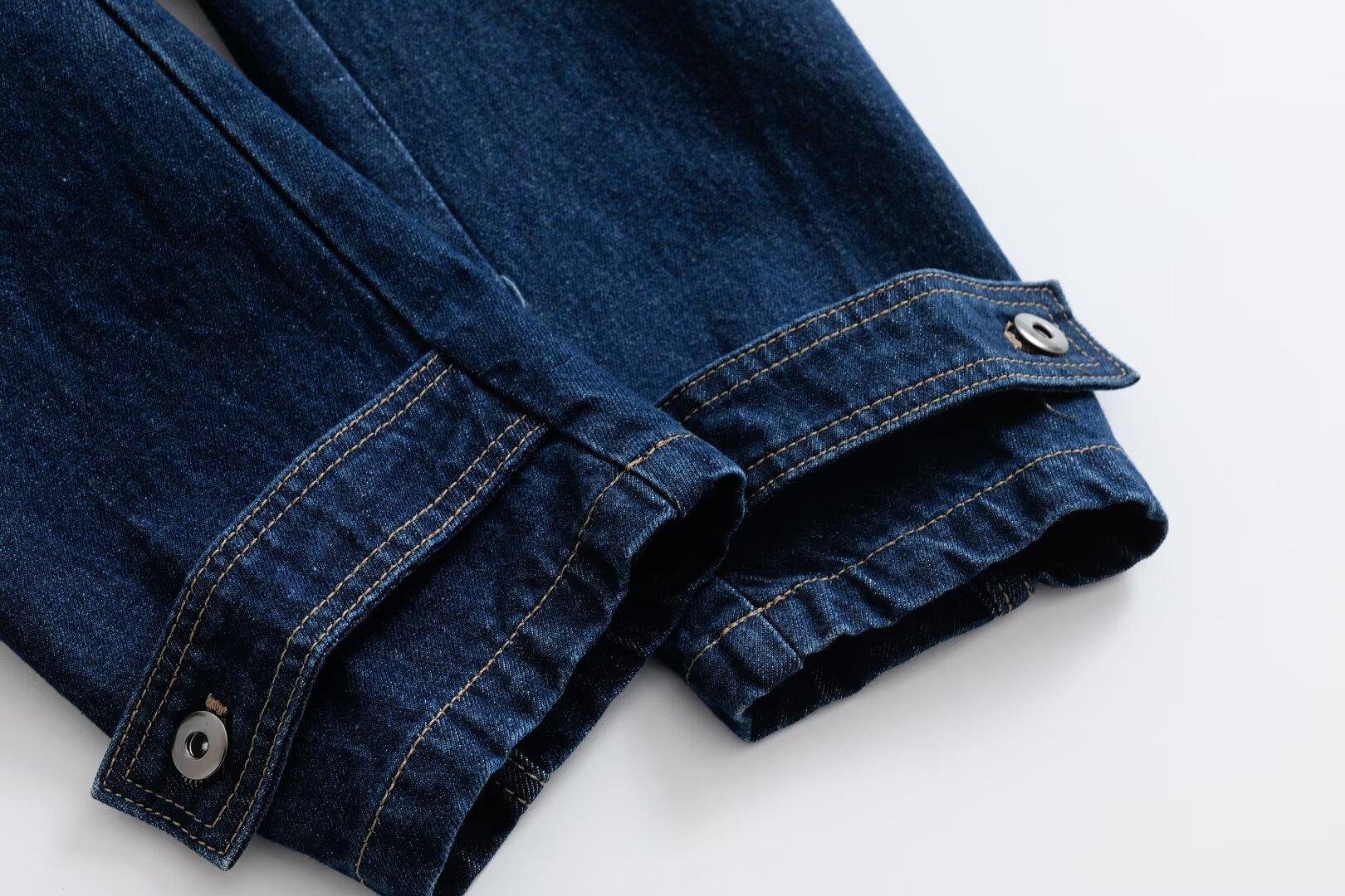 5002-Estilo Europeo y Americano 2025 Nuevo Sexy Pantalones con Bolsillo de Solapa Chaqueta de Mezclilla Solapa para Mujer Holgado Top Casual