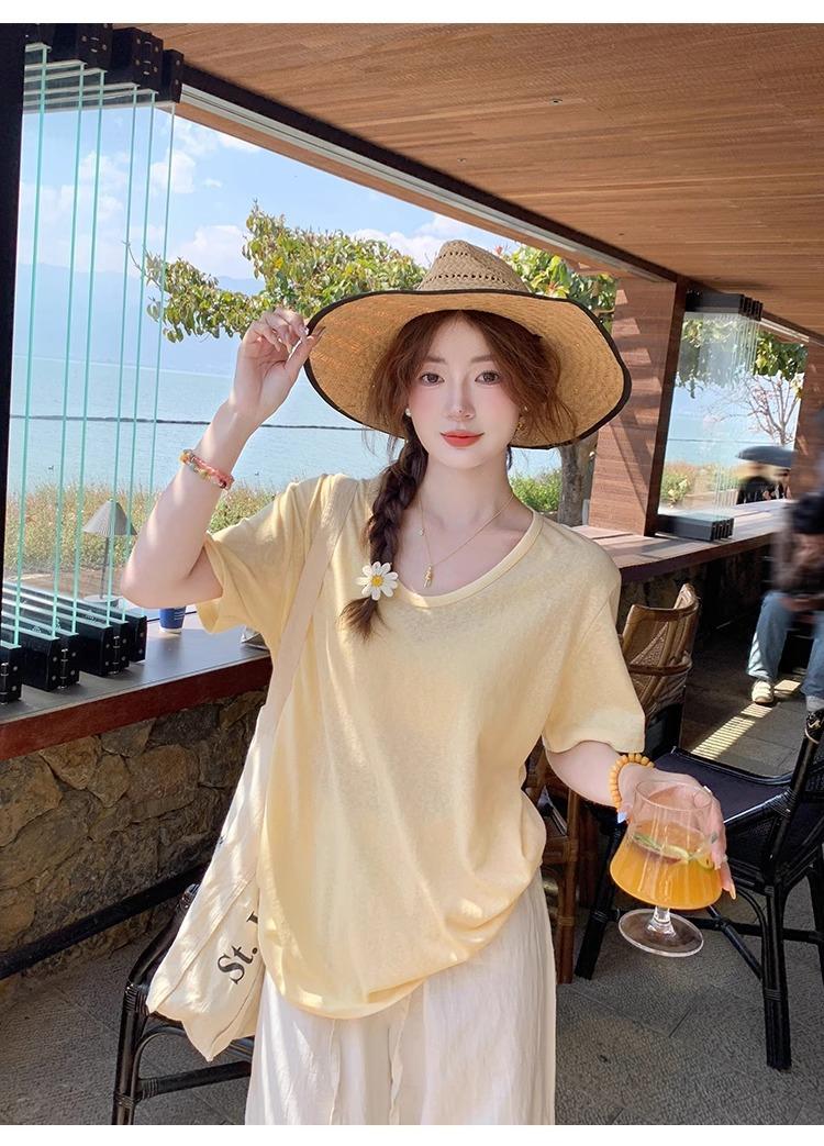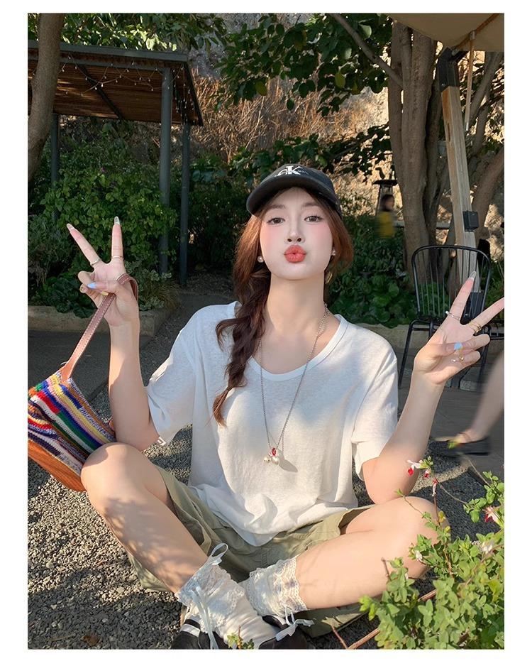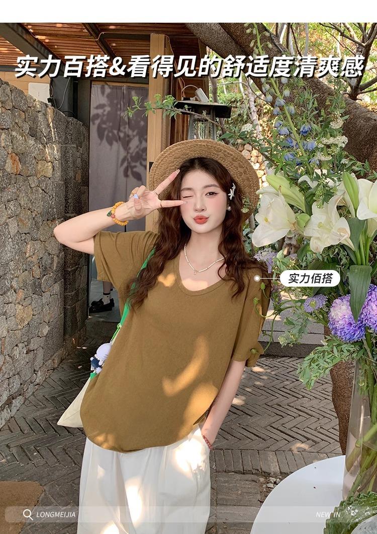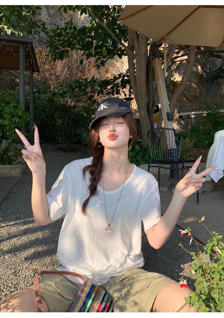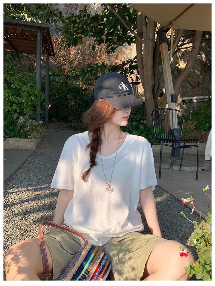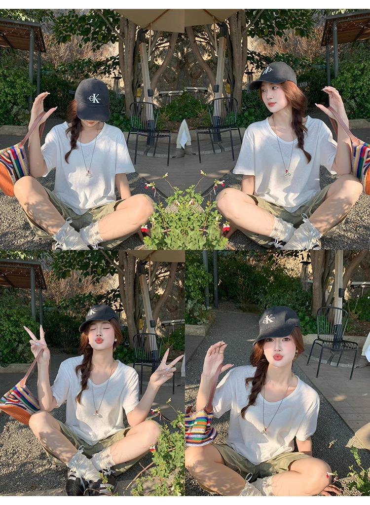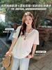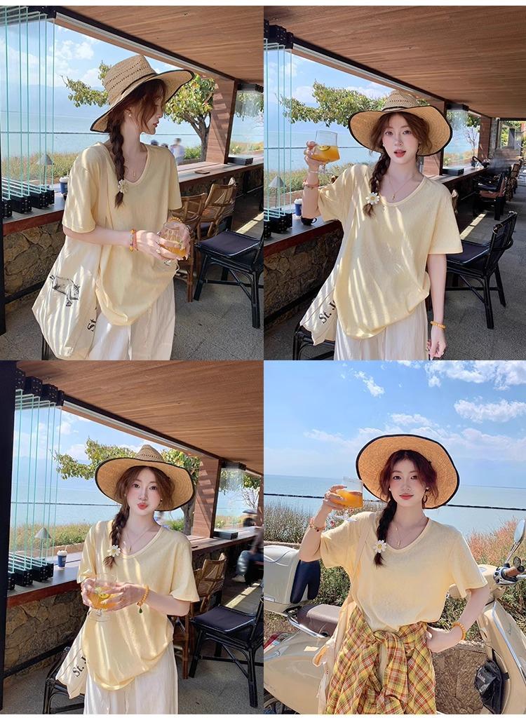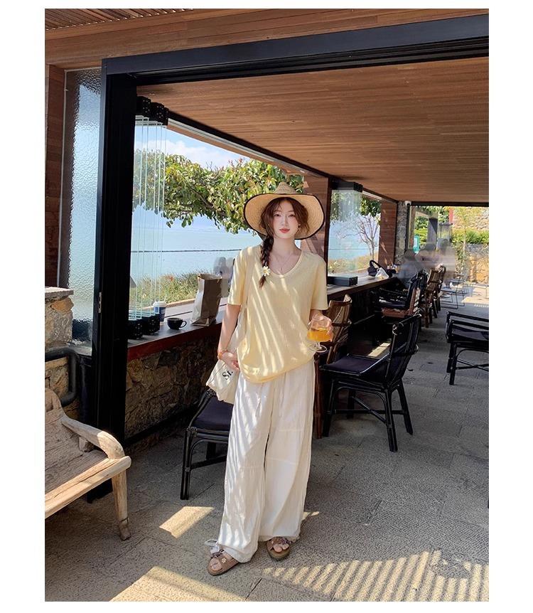Playera de Punto con Cuello en V de Manga Corta para Mujer Verano 2025 Nuevo Manga Media Algodón Bambú Fino para Fondo Top Holgado para Uso Exterior