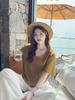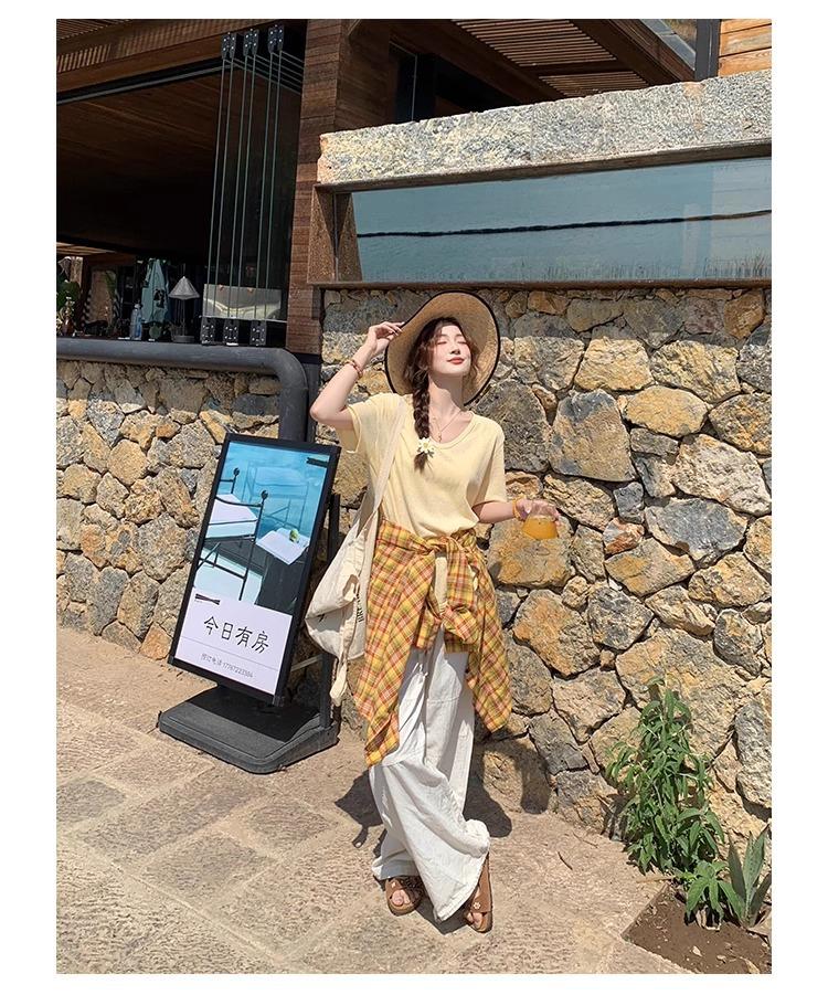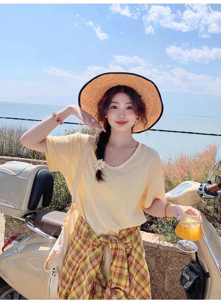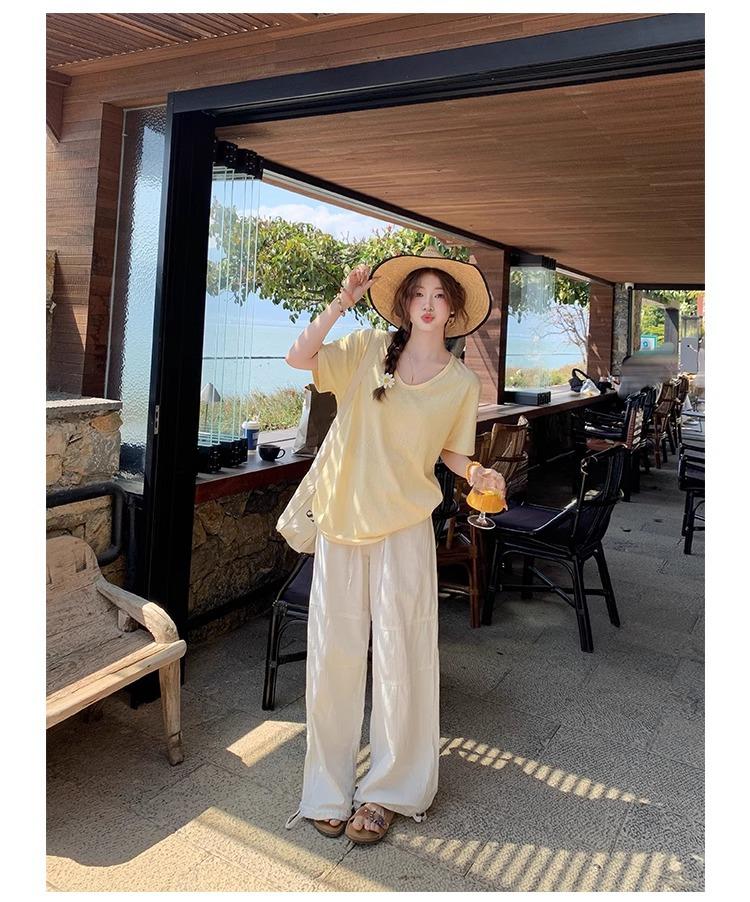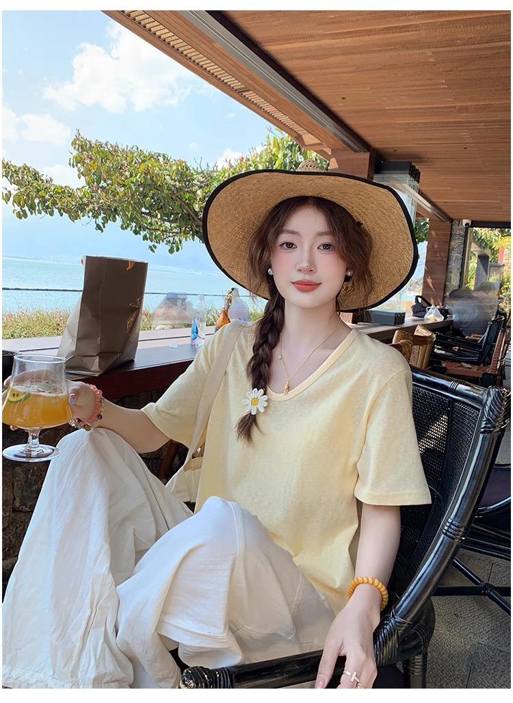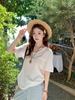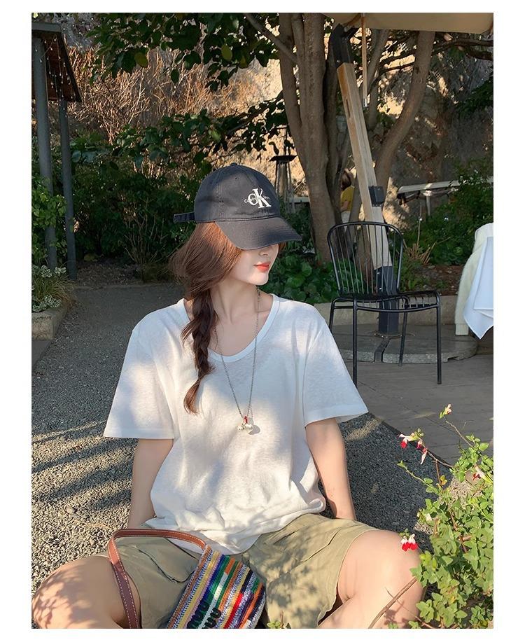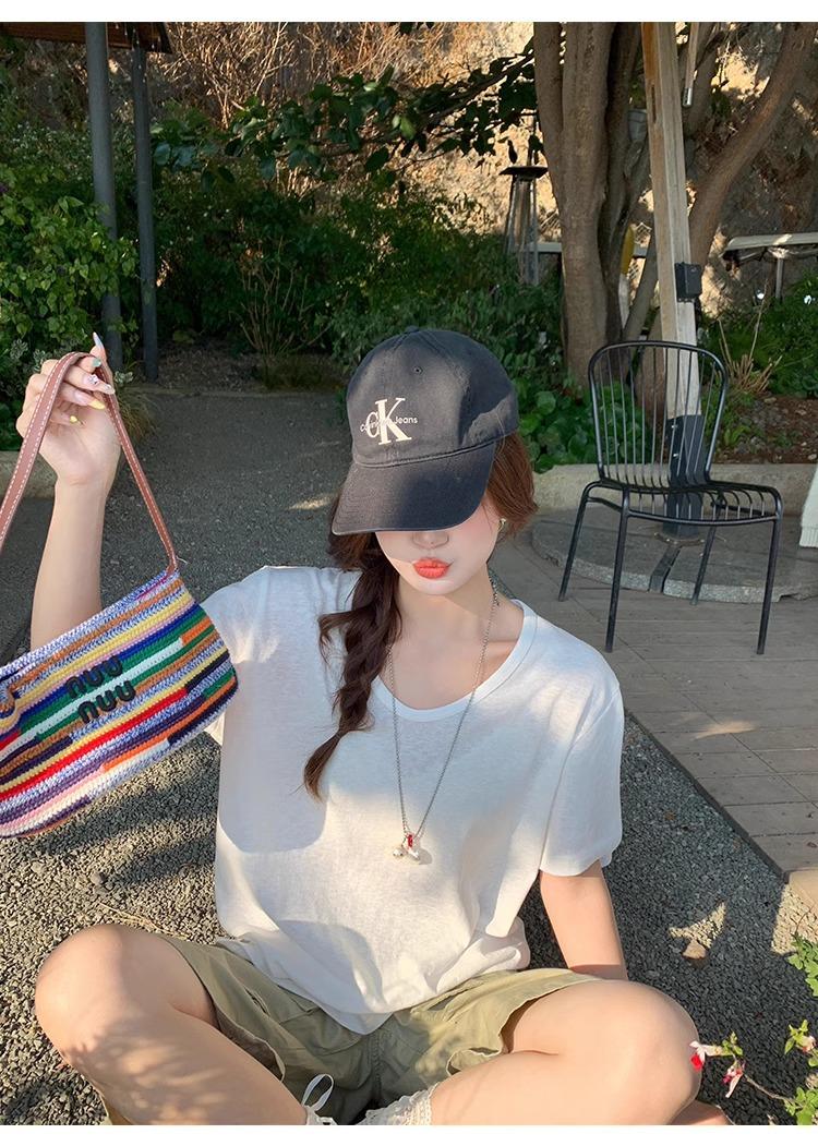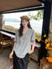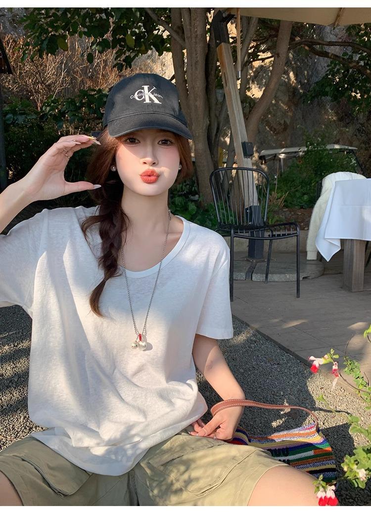 Playera de Punto con Cuello en V de Manga Corta para Mujer Verano 2025 Nuevo Manga Media Algodón Bambú Fino para Fondo Top Holgado para Uso Exterior