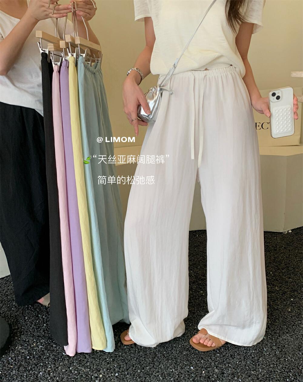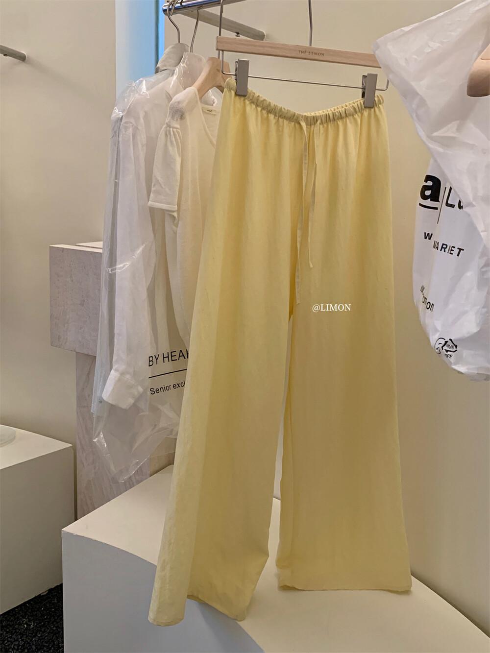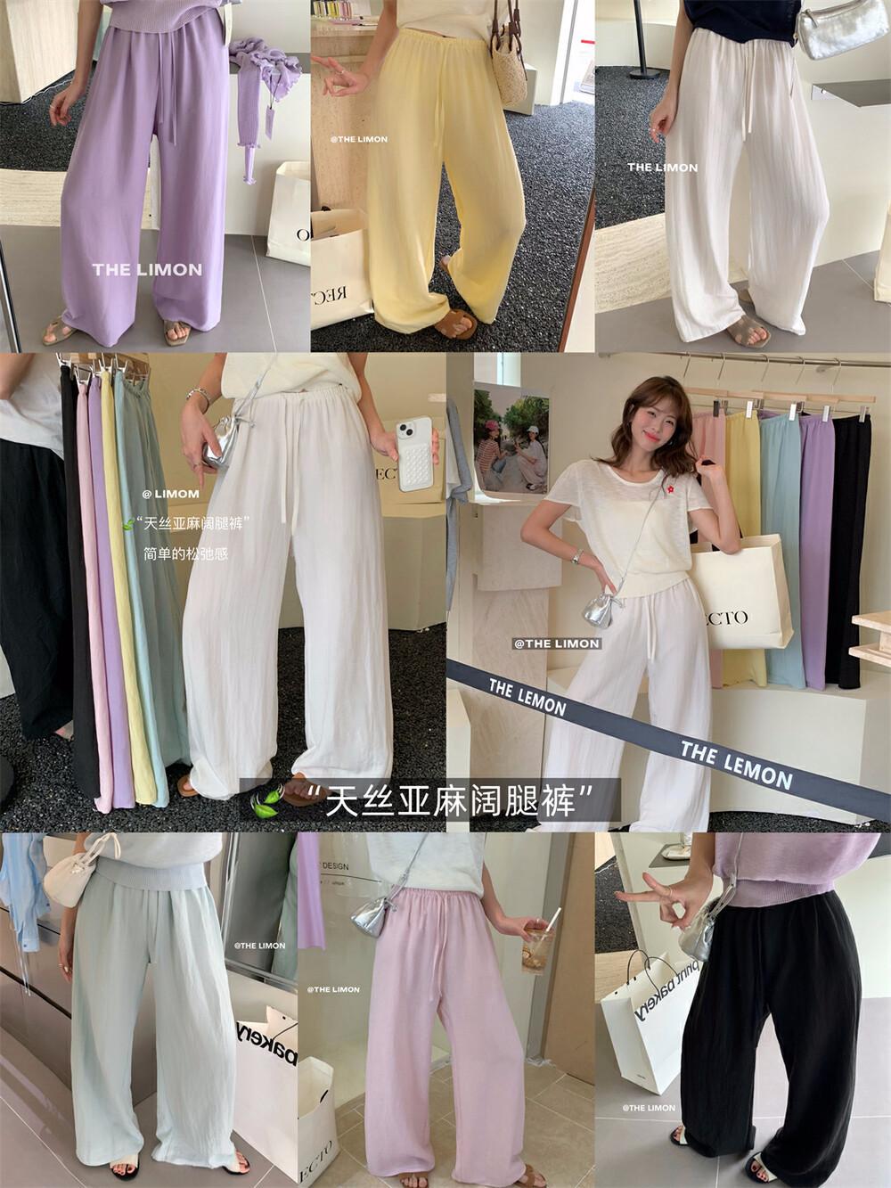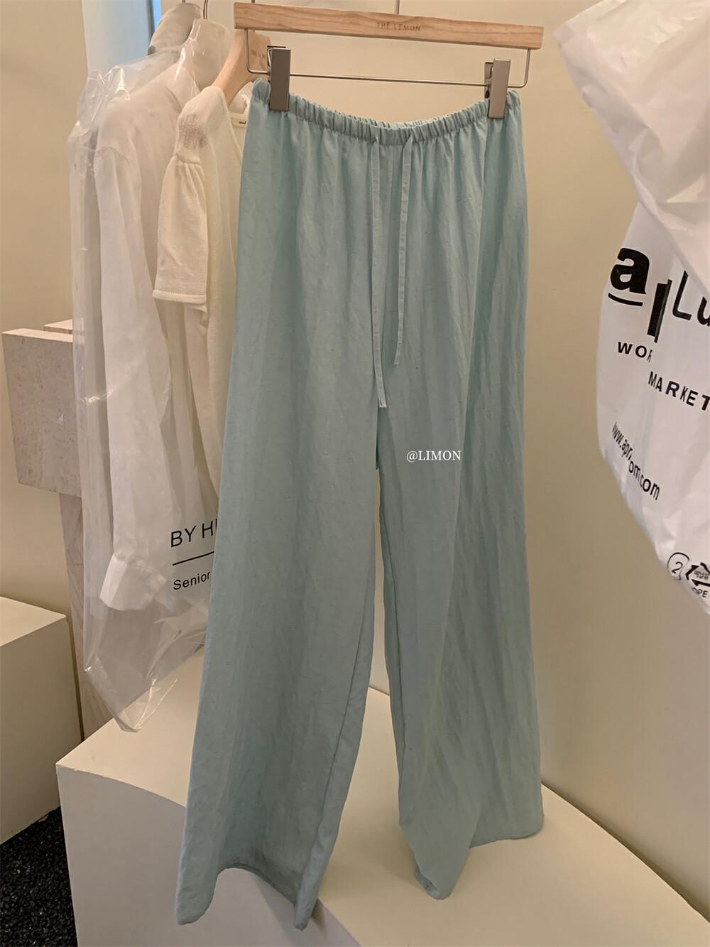 Gran Venta No Retornable Té Verde Limón Estilo Coreano Pantalones Casuales Simples para Mujer Verano Tencel Lino Cintura Alta Pantalones Slim Verano