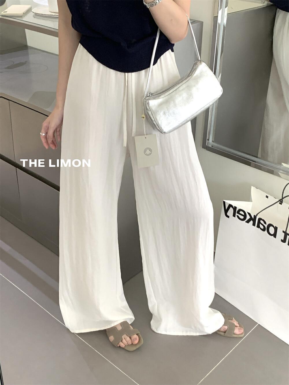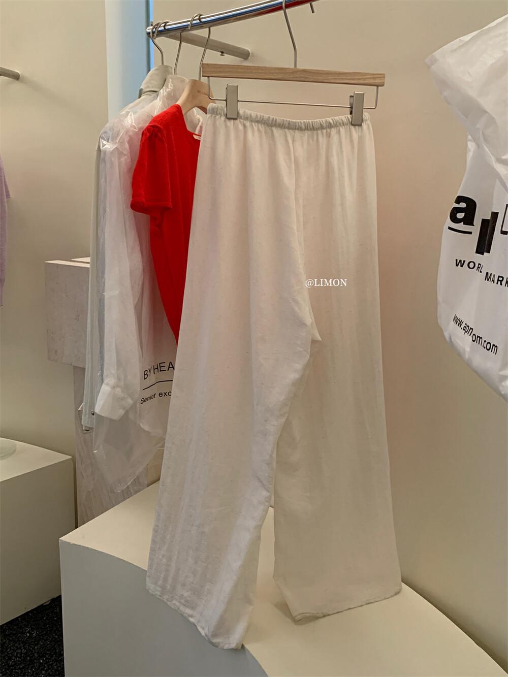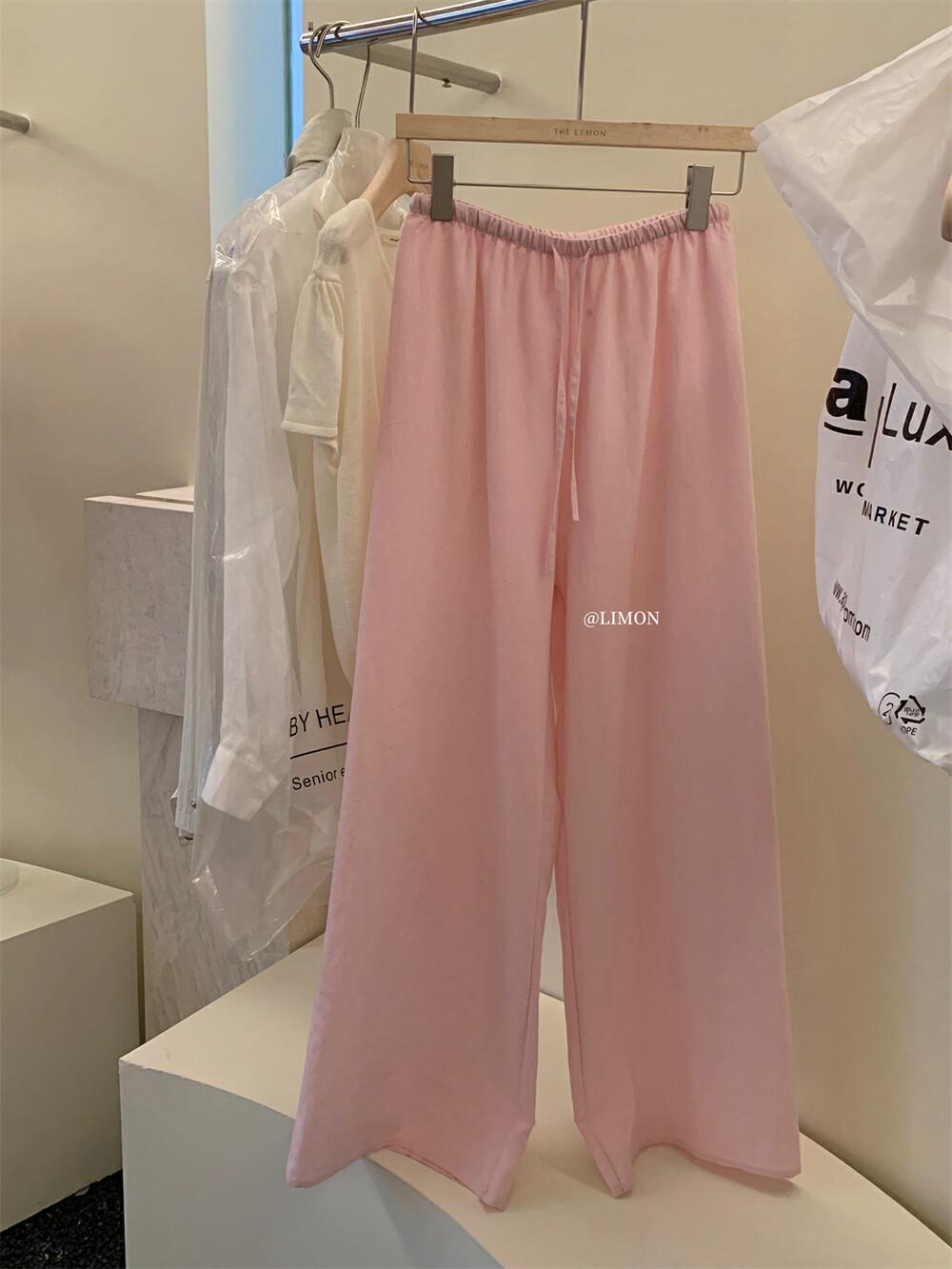 Gran Venta No Retornable Té Verde Limón Estilo Coreano Pantalones Casuales Simples para Mujer Verano Tencel Lino Cintura Alta Pantalones Slim Verano