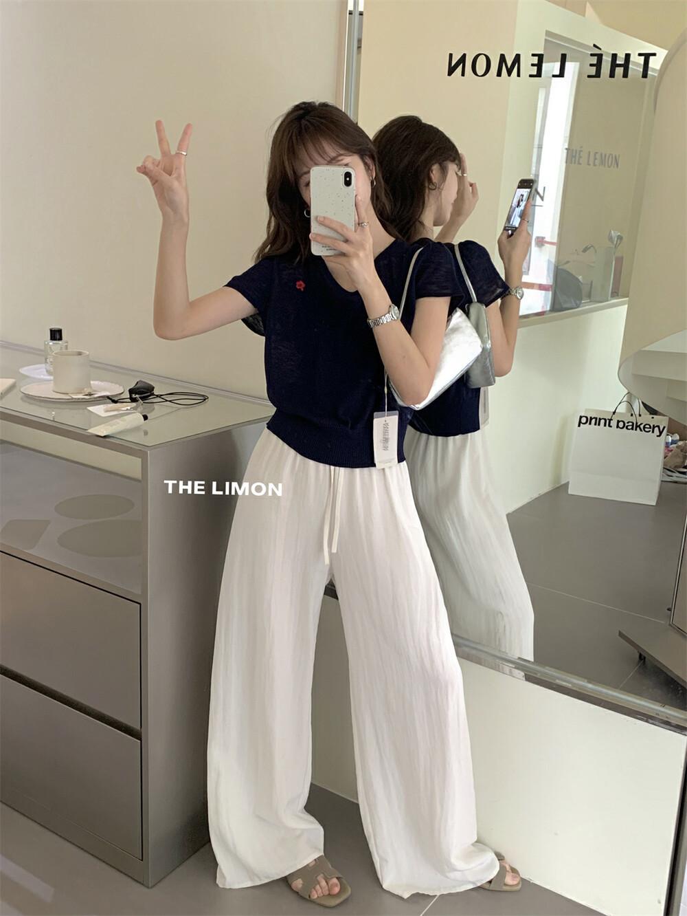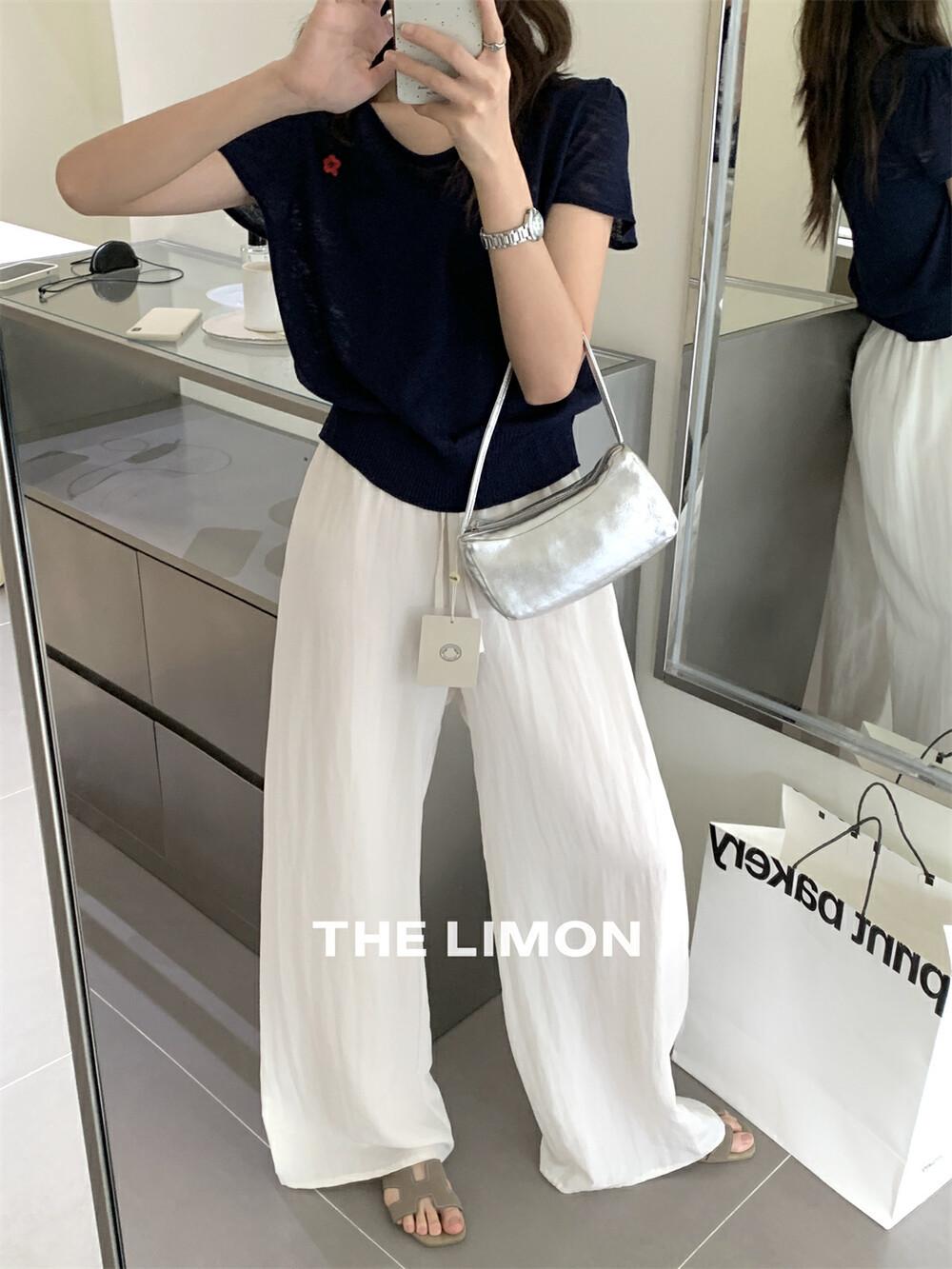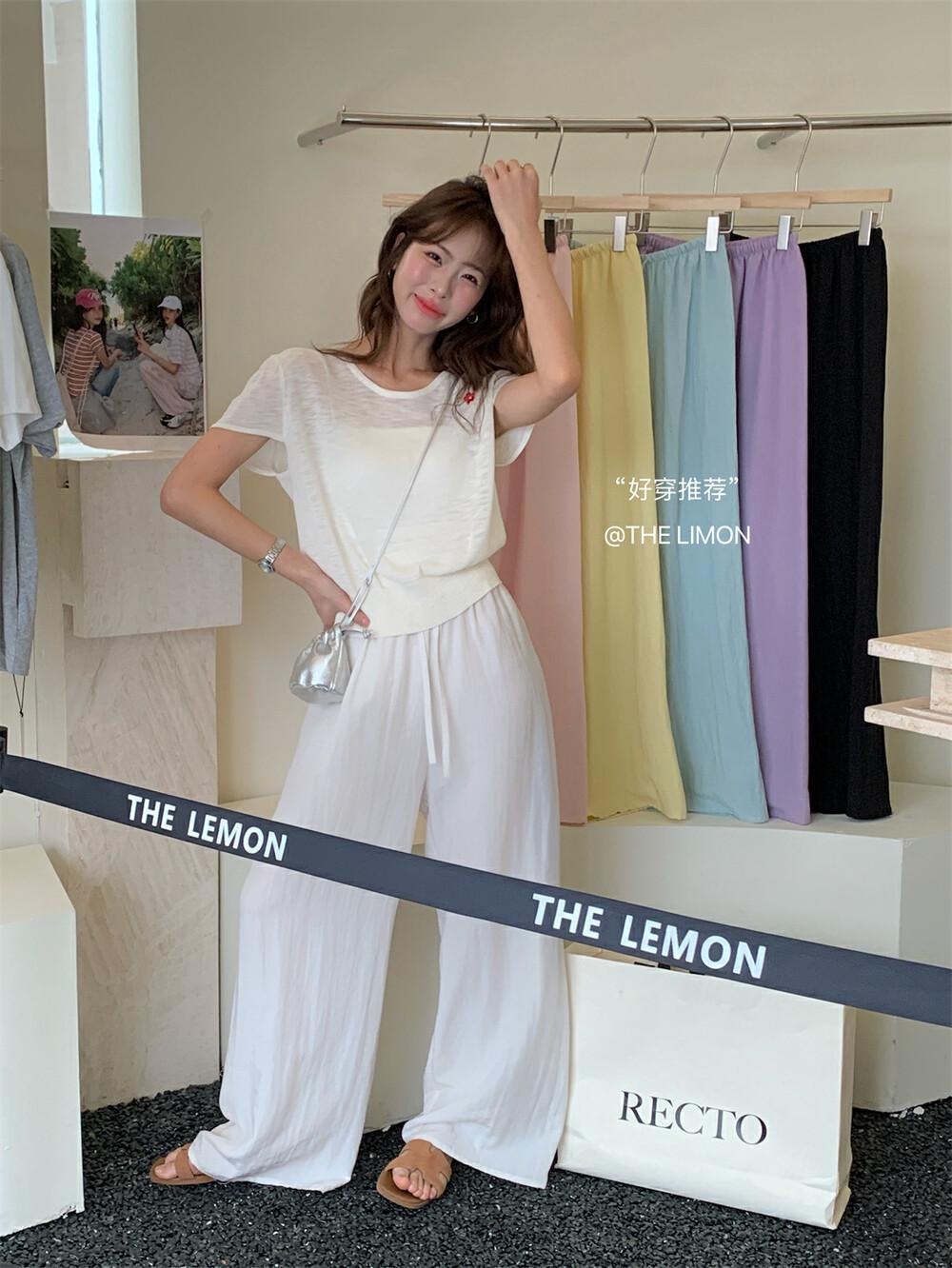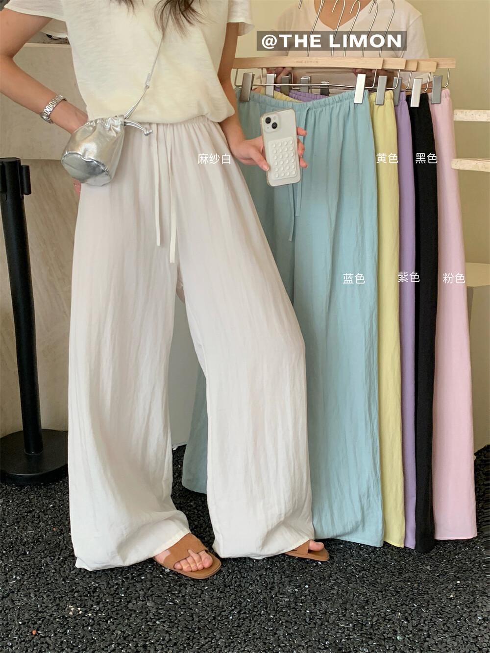 Gran Venta No Retornable Té Verde Limón Estilo Coreano Pantalones Casuales Simples para Mujer Verano Tencel Lino Cintura Alta Pantalones Slim Verano