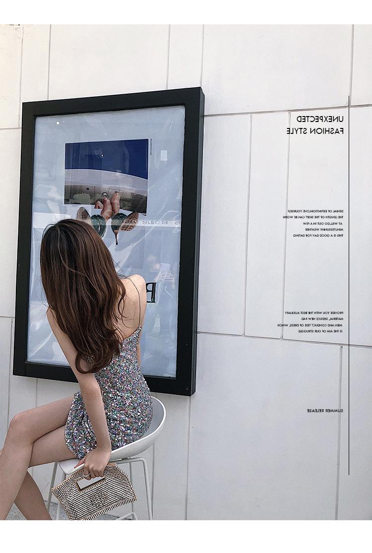 Verano 2020 Nuevo Sexy Adelgazante Lentejuelas Vestido de Tirantes Falda de Fiesta con Cadera de Bolsa para Mujer