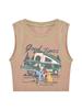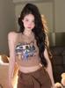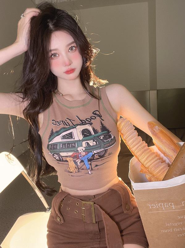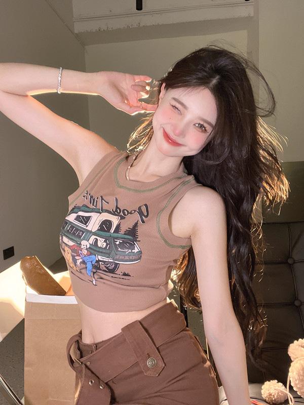 Camiseta sin mangas retro americana para chica hot, camiseta de verano para mujer, diseño de moda ins, nicho, corta, ajustada, camiseta top, ropa