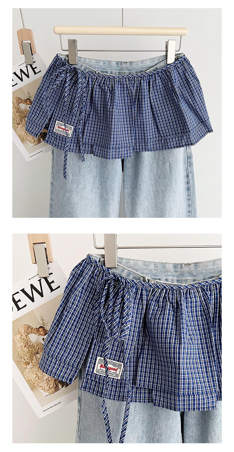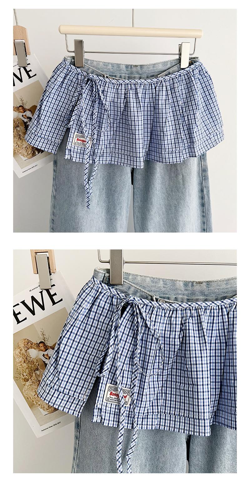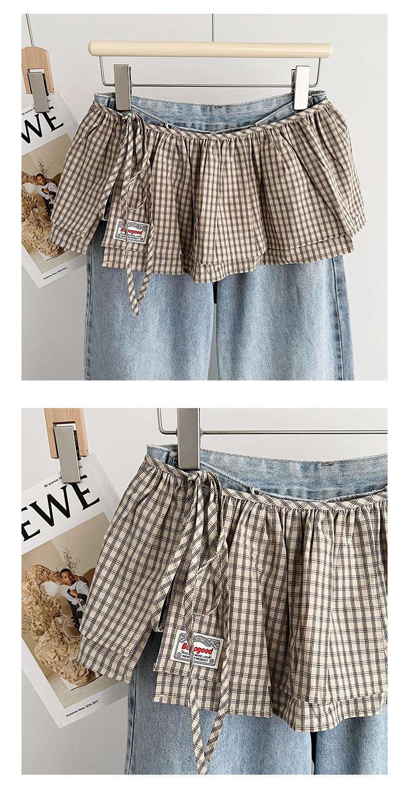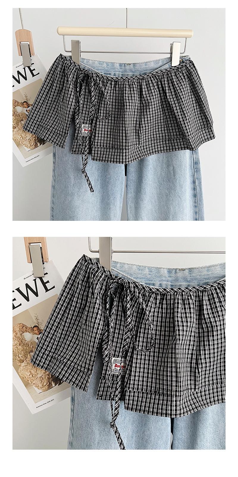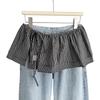 Falda Corta Coreana Retro de Cuadros Pequeños con Cordones y Cortina Trasera para Mujer Primavera Falda de Doble Capa con Cortina Vestido de Una Pieza con Cordones Cubre Carne