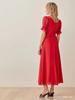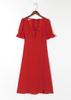 Retro Francés 2022 Estilo Hepburn Cuello Cuadrado Silueta Adelgazante Elegante Moda Vestido Largo con Abertura Manga Larga