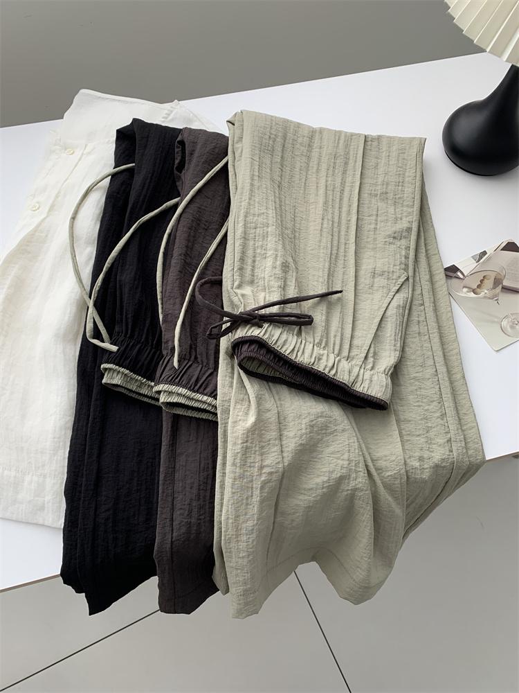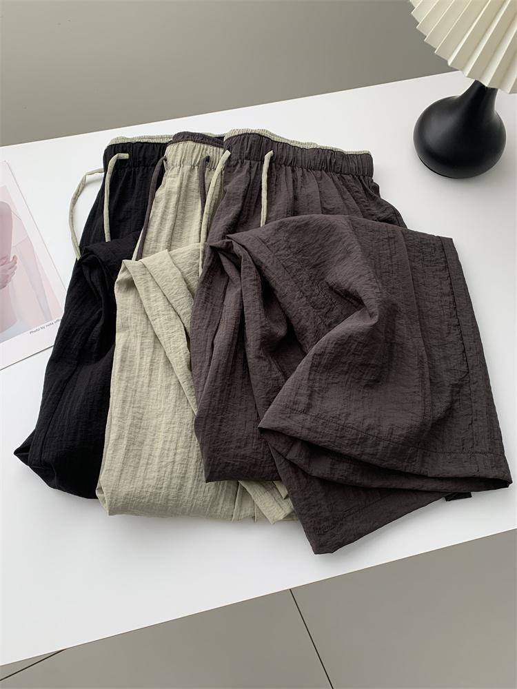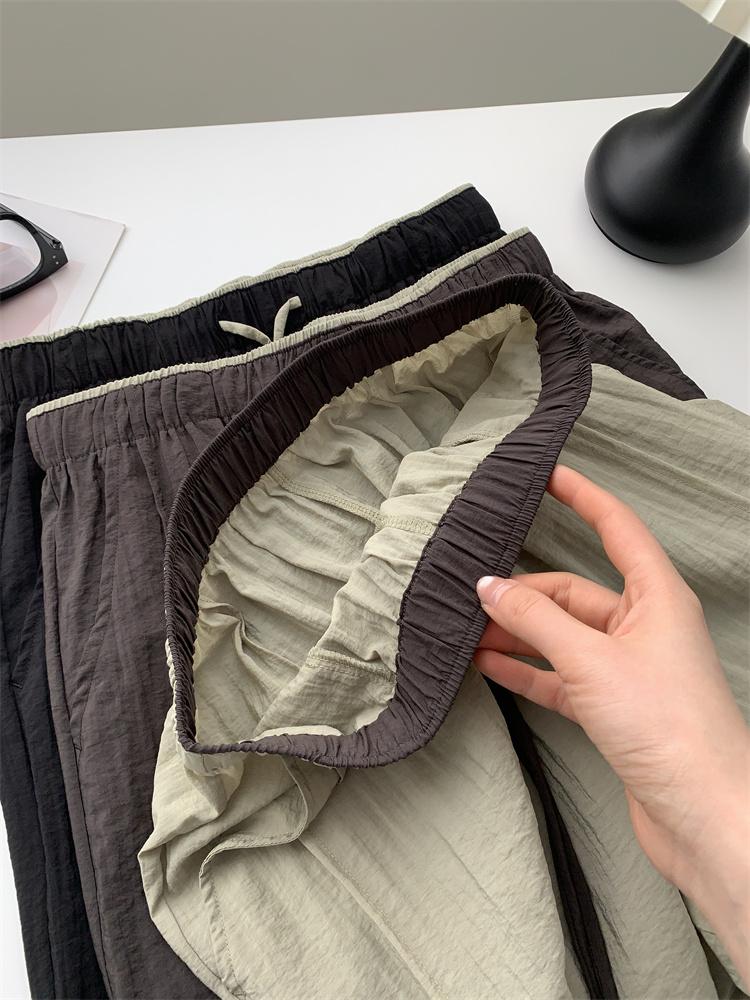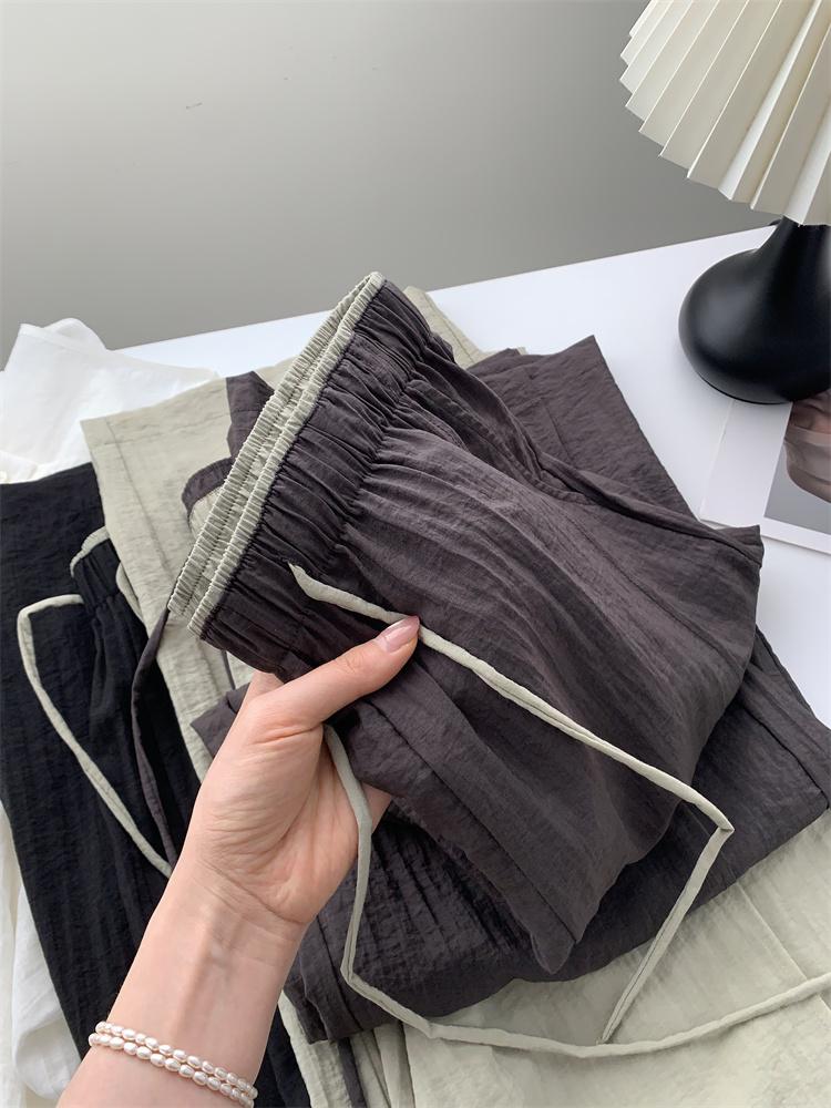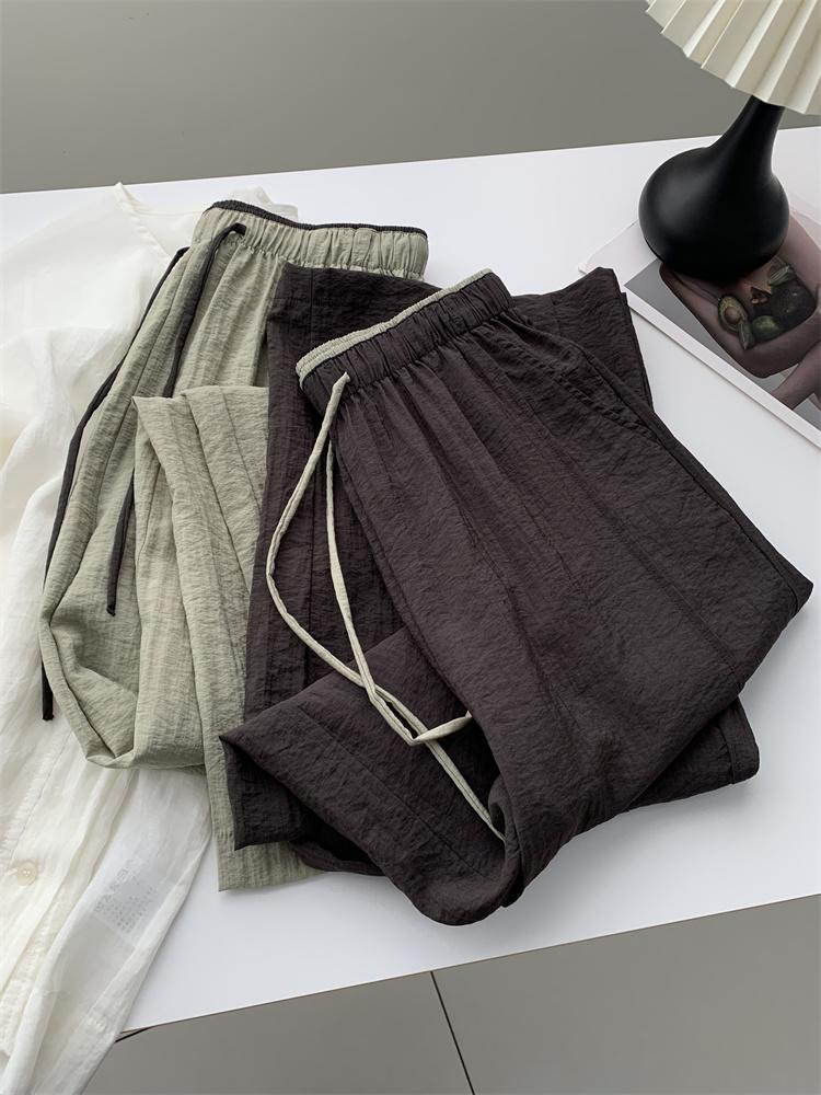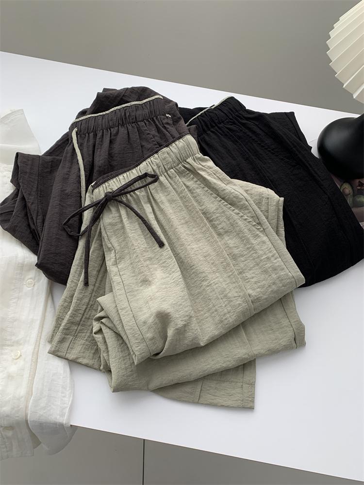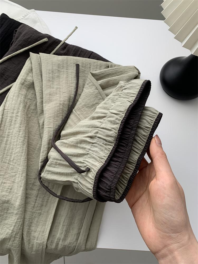 Pantalones Casuales Ligeros Drapeados de Secado Rápido Texturizados Color-Block de Cintura Alta Pierna Ancha para Mujer Pantalones Rectos hasta el Piso Pantalones Frescos de Verano