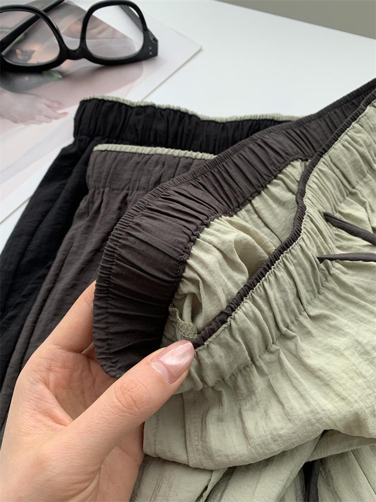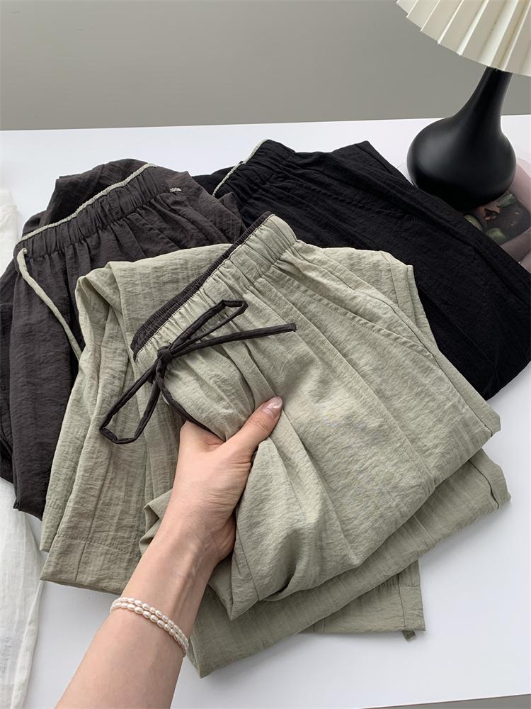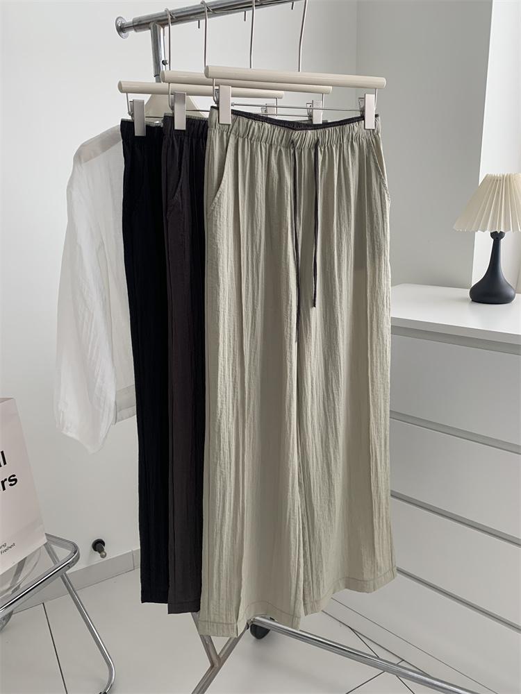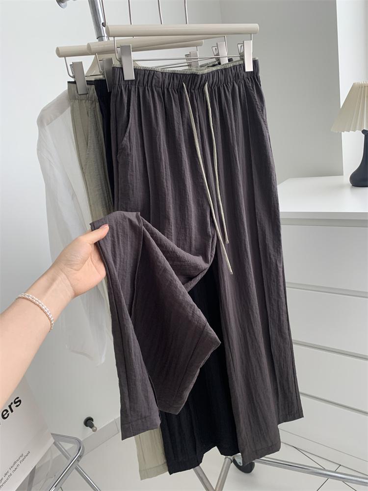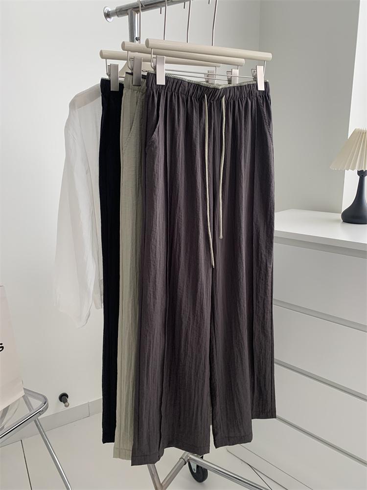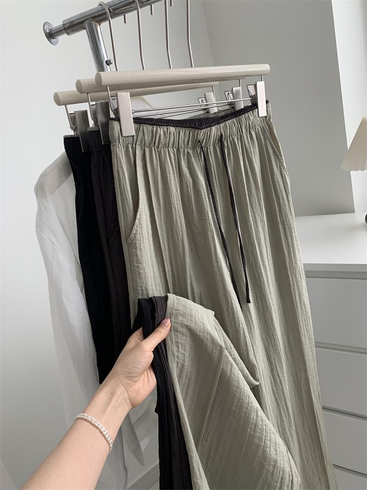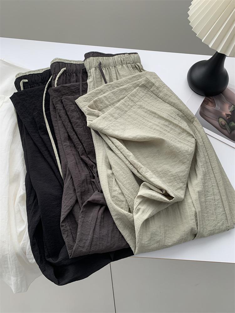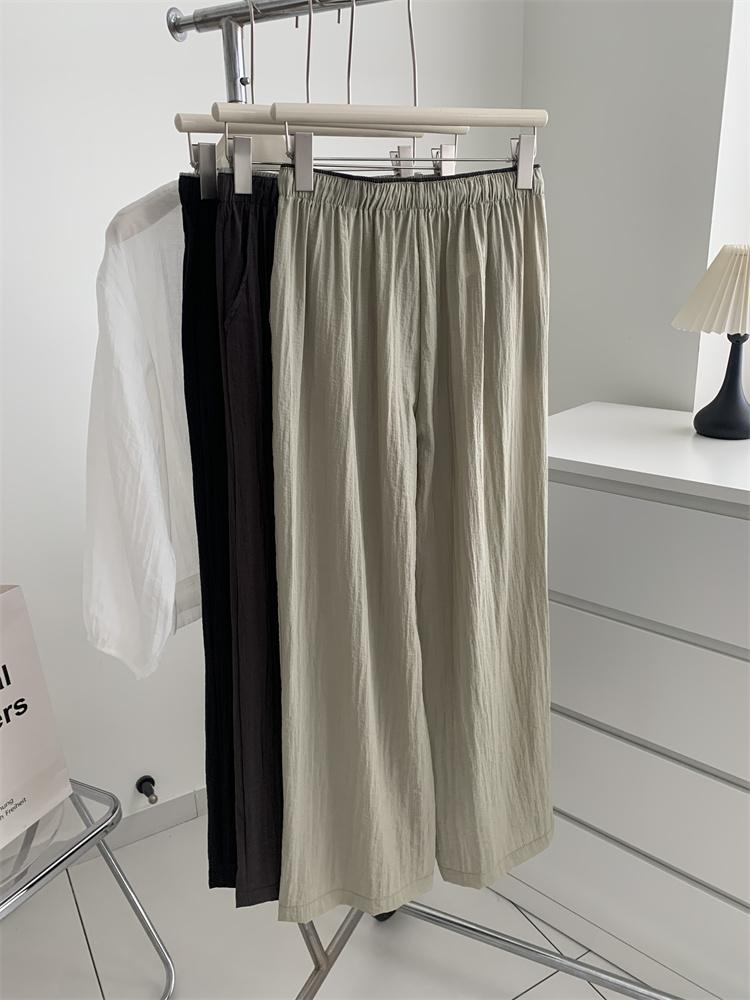 Pantalones Casuales Ligeros Drapeados de Secado Rápido Texturizados Color-Block de Cintura Alta Pierna Ancha para Mujer Pantalones Rectos hasta el Piso Pantalones Frescos de Verano