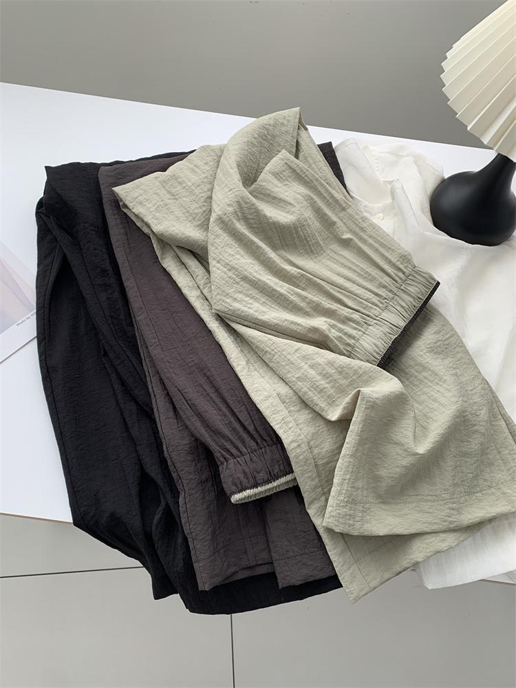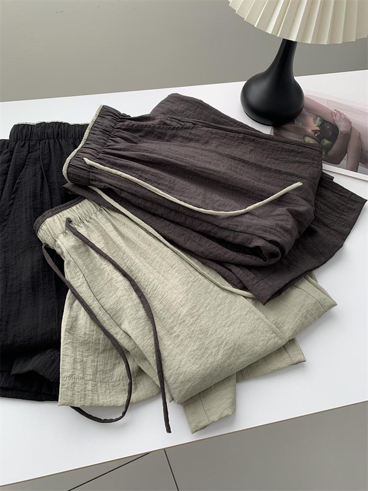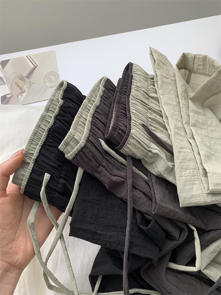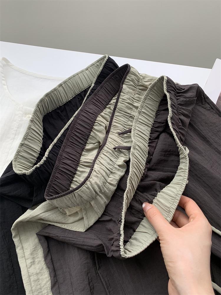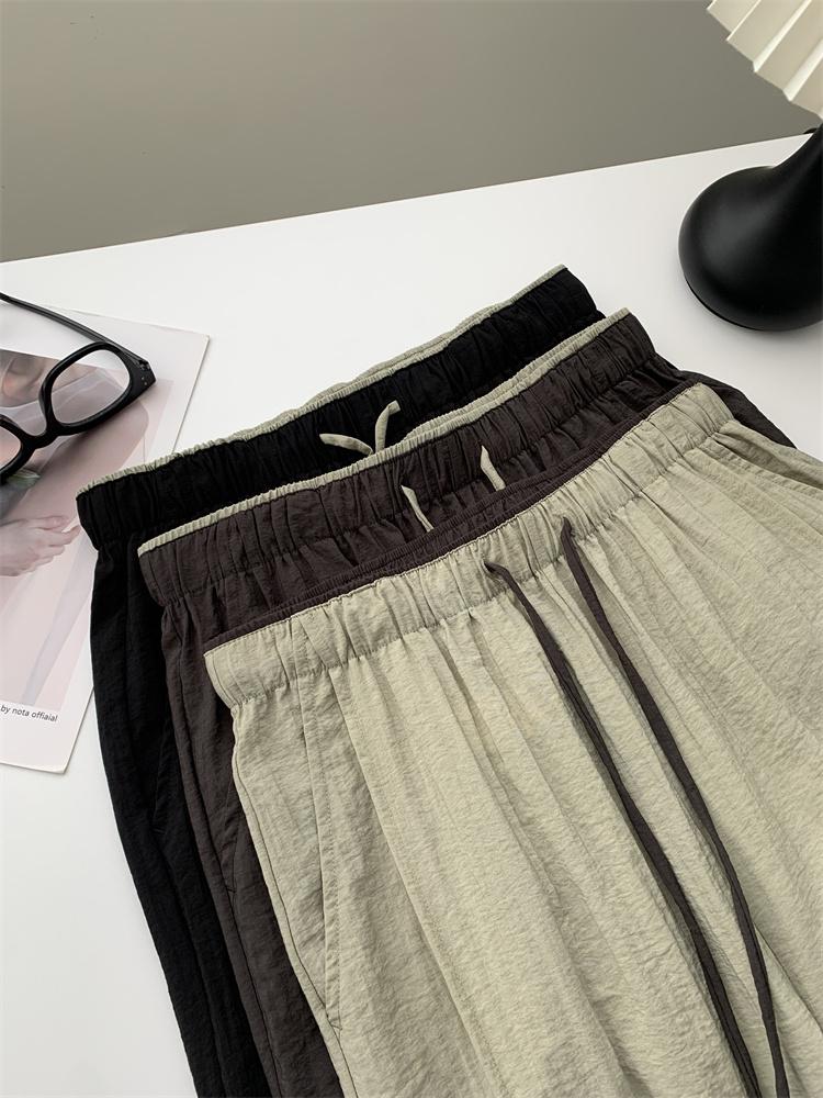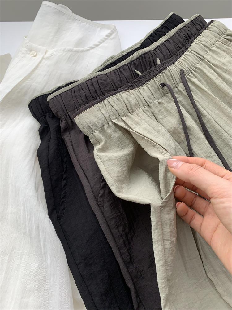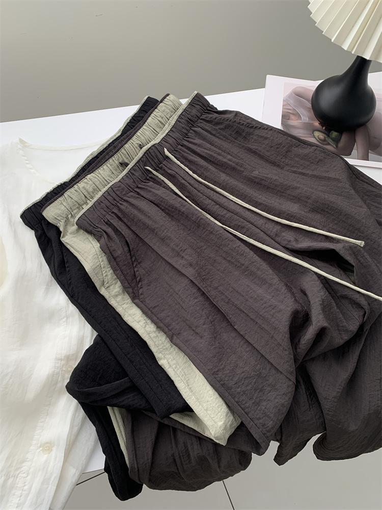 Pantalones Casuales Ligeros Drapeados de Secado Rápido Texturizados Color-Block de Cintura Alta Pierna Ancha para Mujer Pantalones Rectos hasta el Piso Pantalones Frescos de Verano