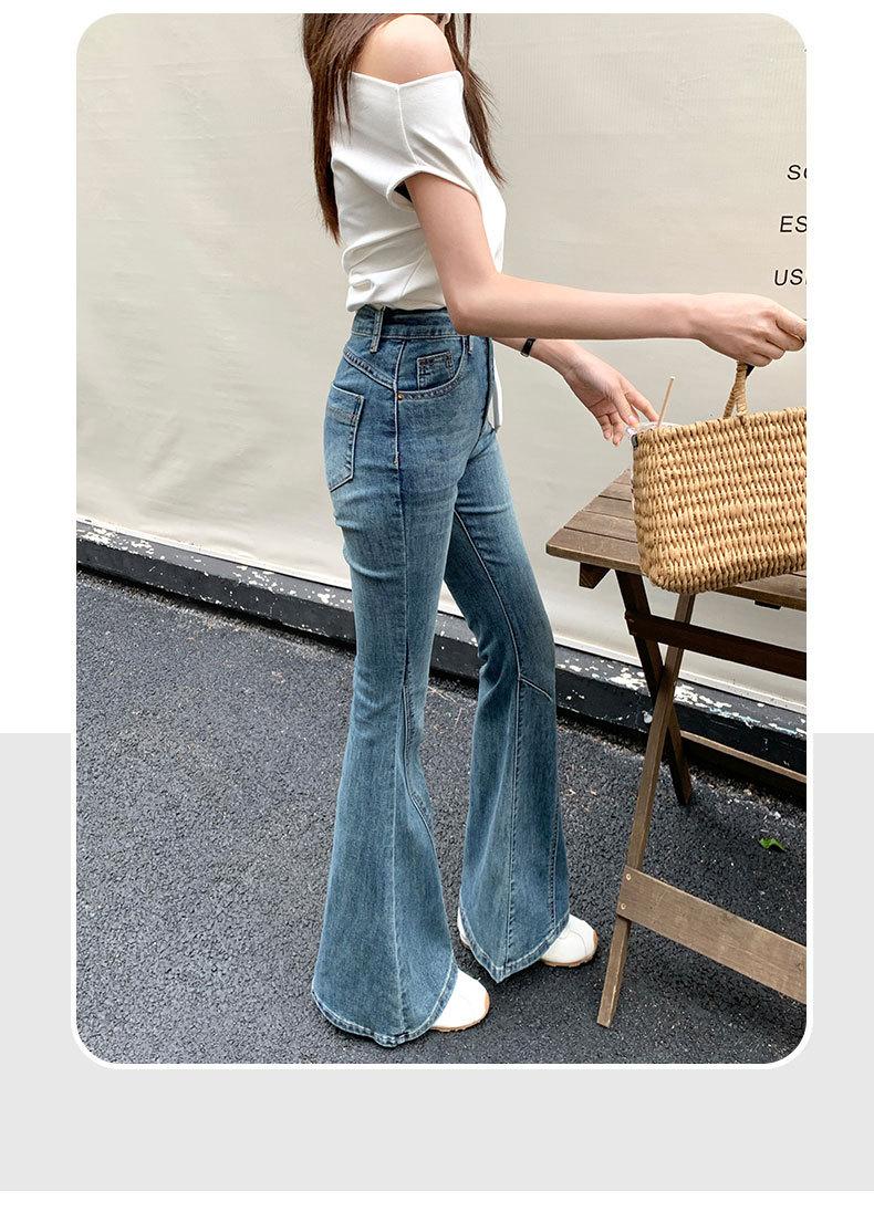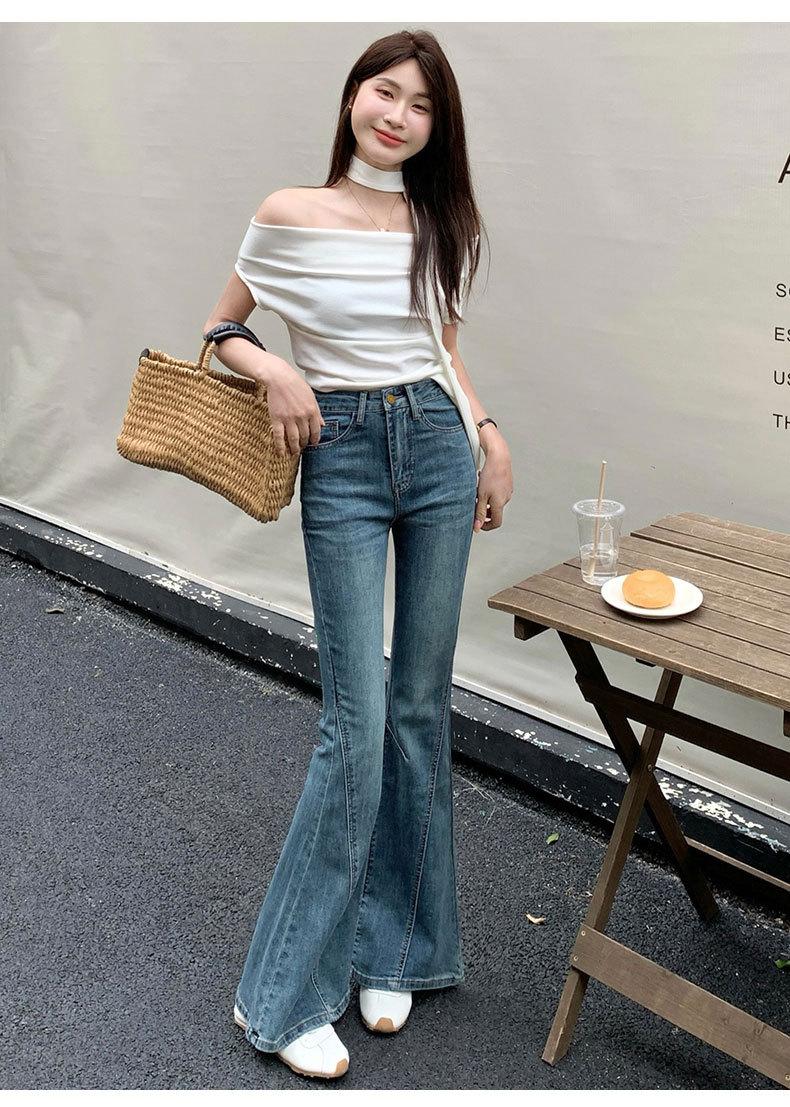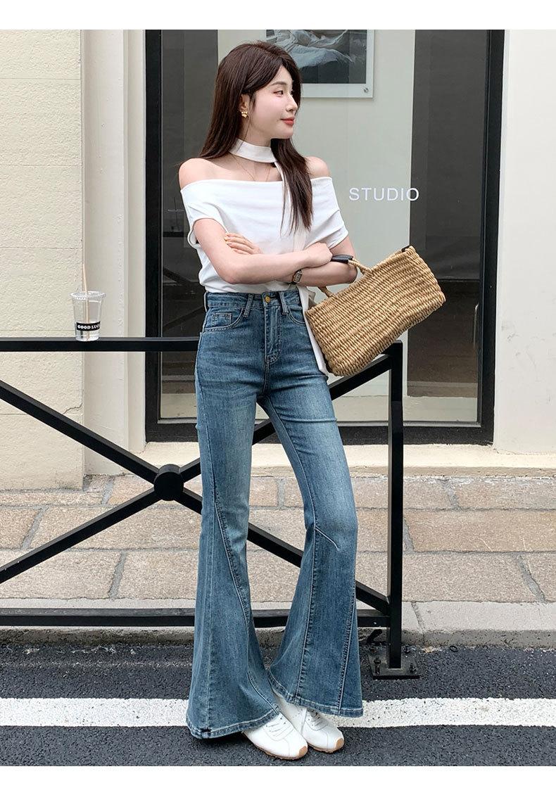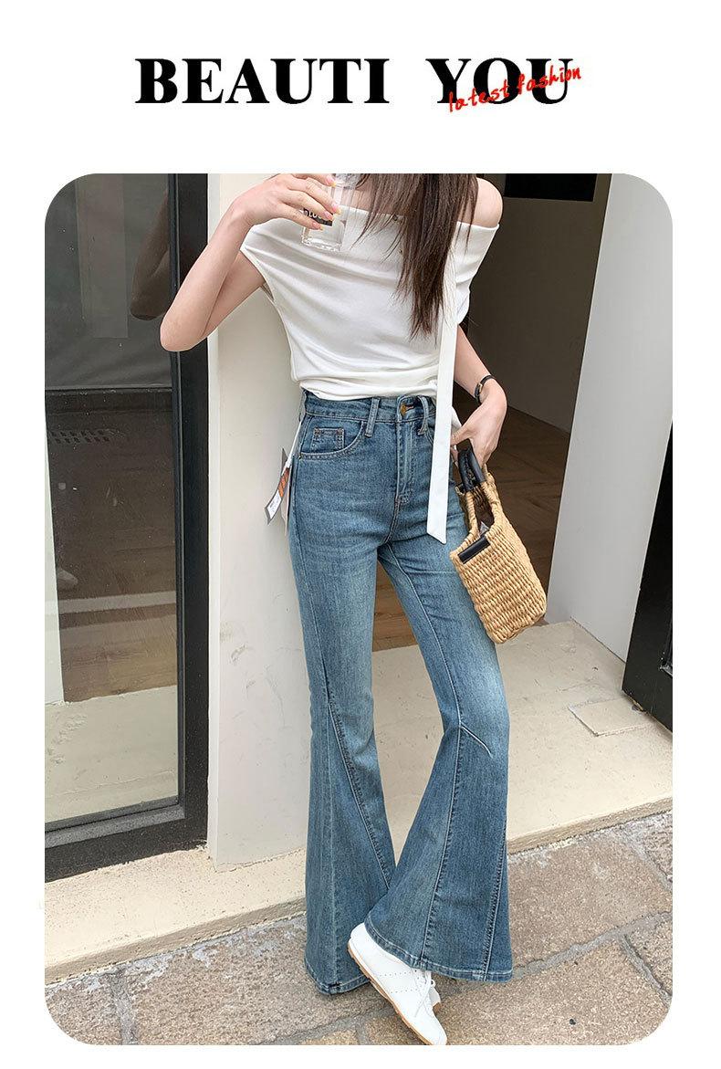 Jeans acampanados adelgazantes para mujer inspirados en celebridades, nuevo estilo de otoño 2025 con diseño patchwork y pantalones acampanados elásticos
