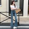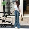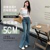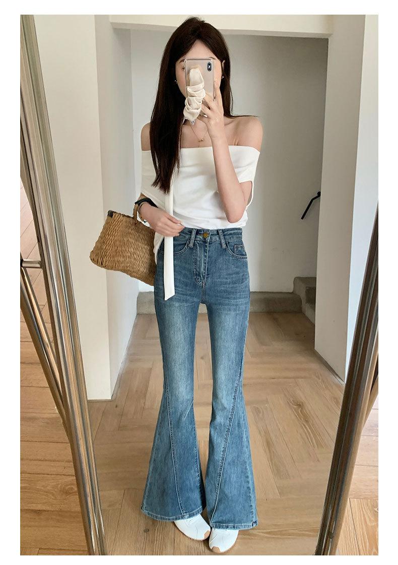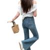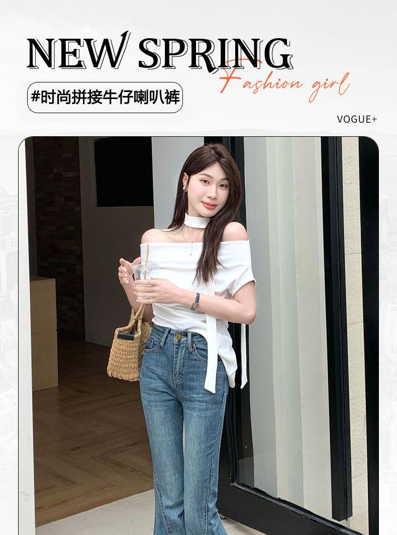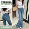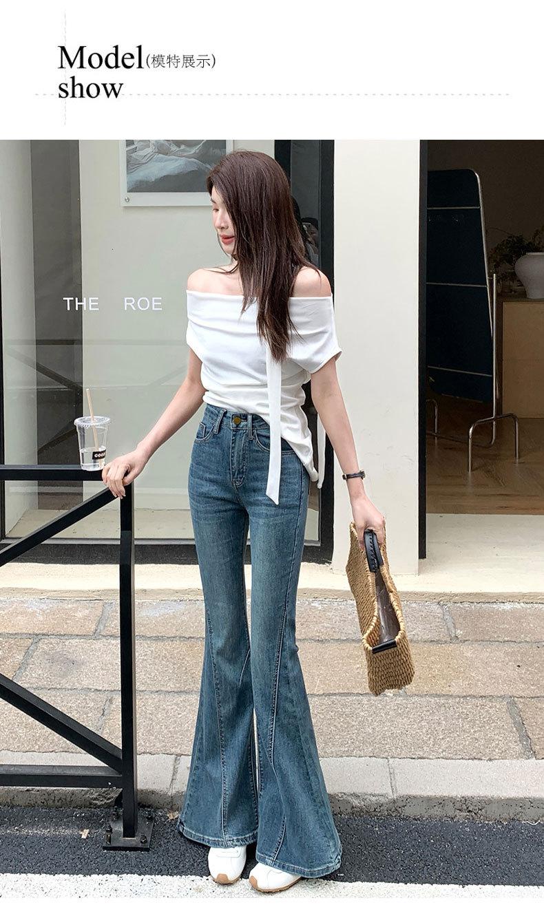 Jeans acampanados adelgazantes para mujer inspirados en celebridades, nuevo estilo de otoño 2025 con diseño patchwork y pantalones acampanados elásticos