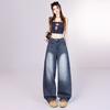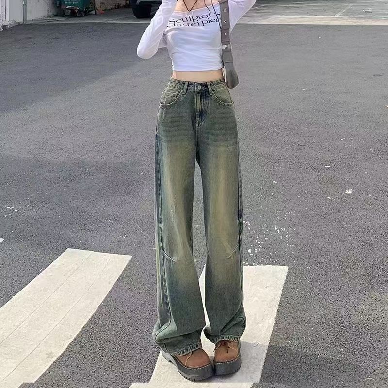 Primavera Nuevo Jeans de Pierna Ancha Holgados Versátiles Adelgazantes de Cintura Alta para Mujer Americano Retro Extendido Alto Recto