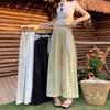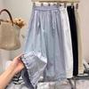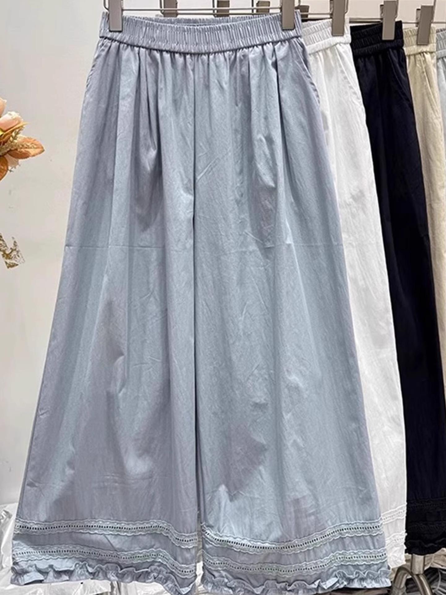 Pantalones de Encaje con Volantes Calados de Pierna Ancha para Mujer 2025 Verano Pantalones Rectos Holgados Cintura Elástica Adelgazantes de Cintura Alta Pantalones Recortados
