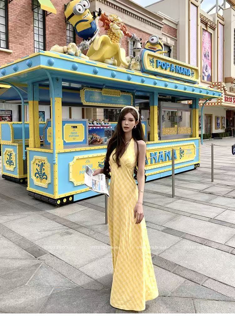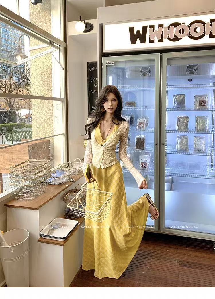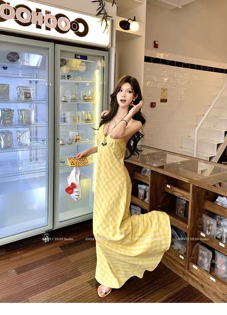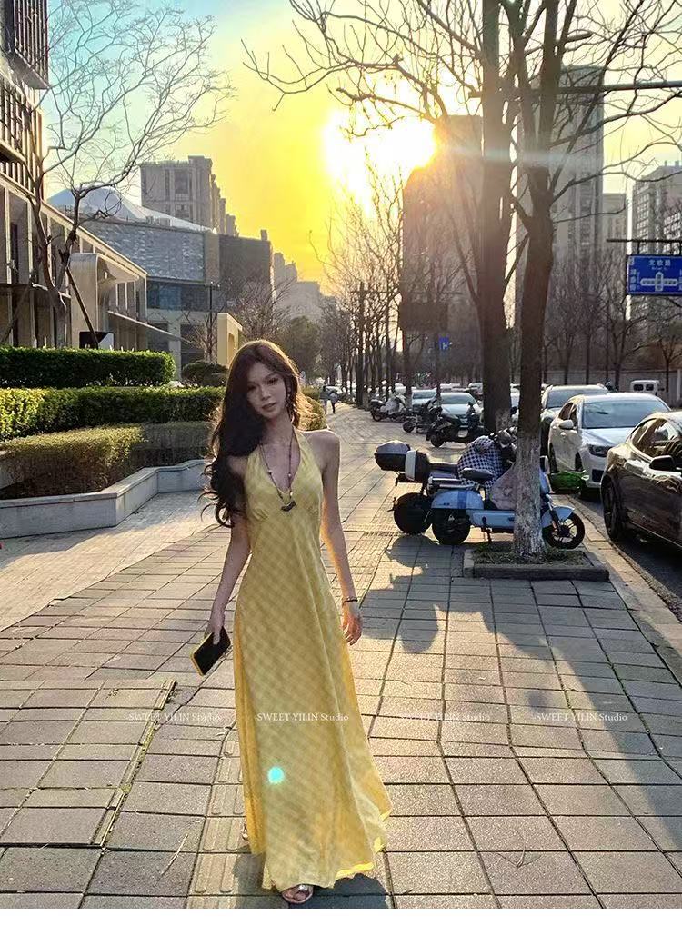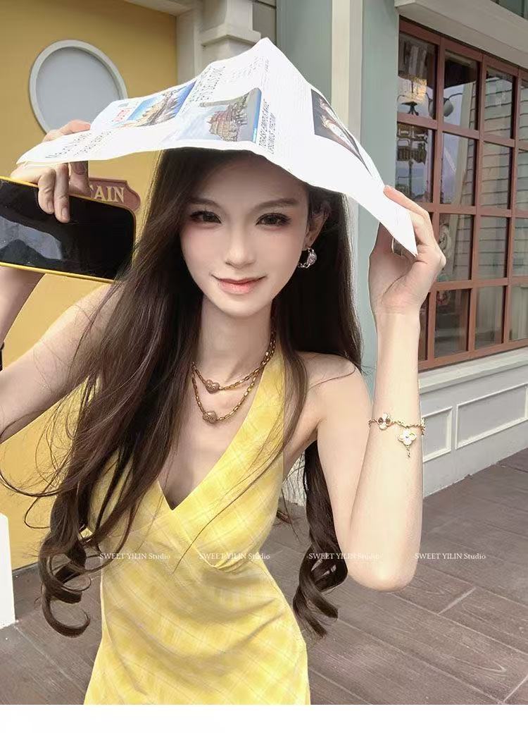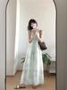 Vestido romántico de estilo francés con cuello en V para mujer, Verano 2025, Nuevo diseño nicho, Estilo vacacional suave, Vestido largo