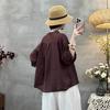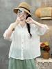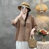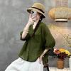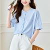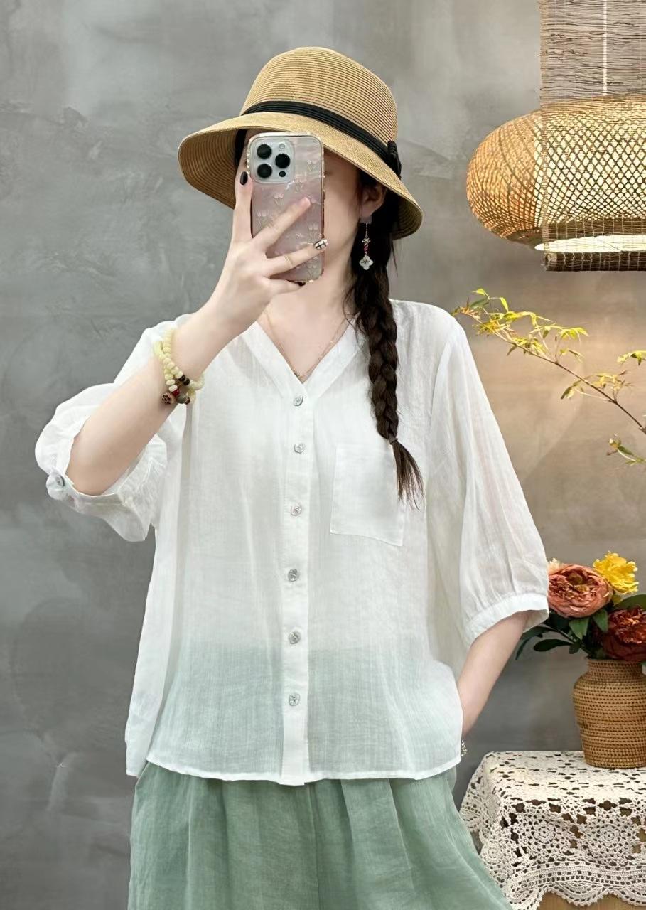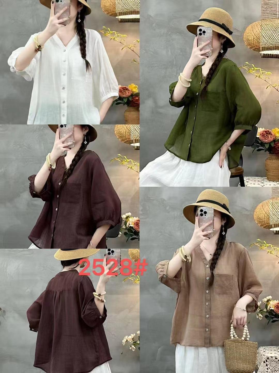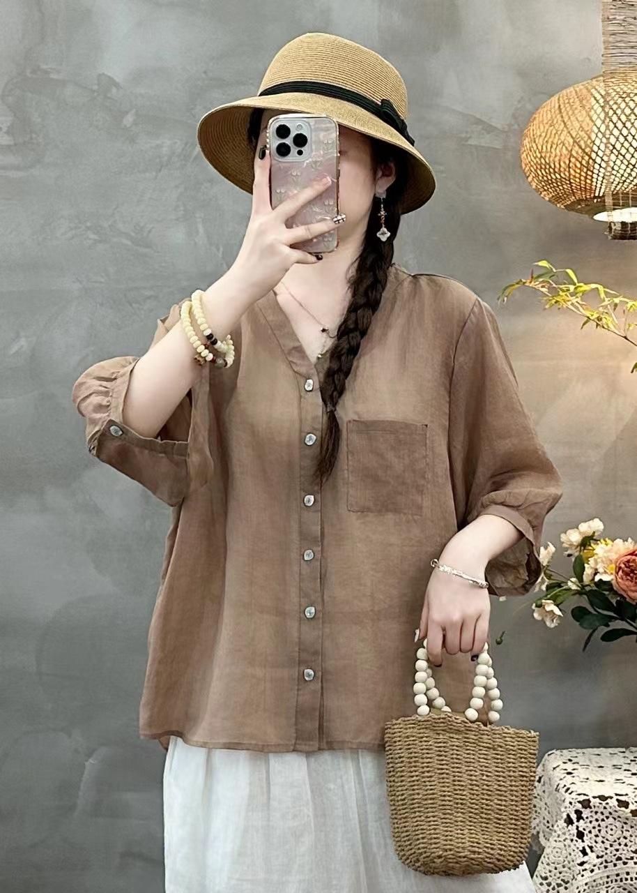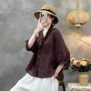 Popular Camisa de Ramio Verano 2025 Nueva, Cubriendo la Carne y con Aspecto Adelgazante, Color Puro, Camisa Top de Manga Tres Cuartos para Mujer