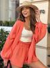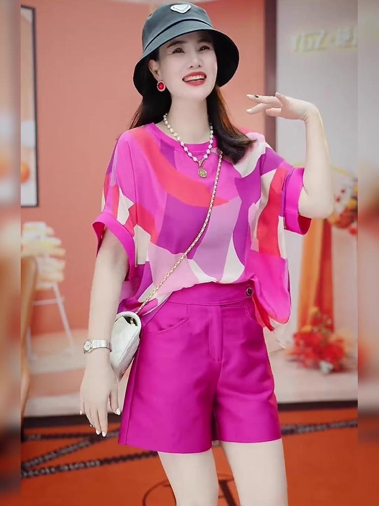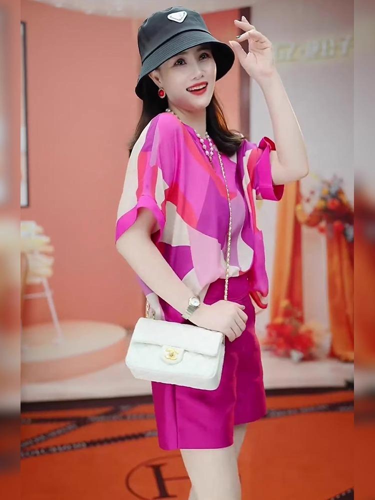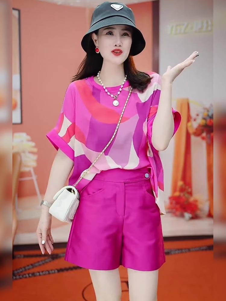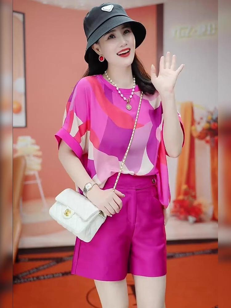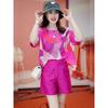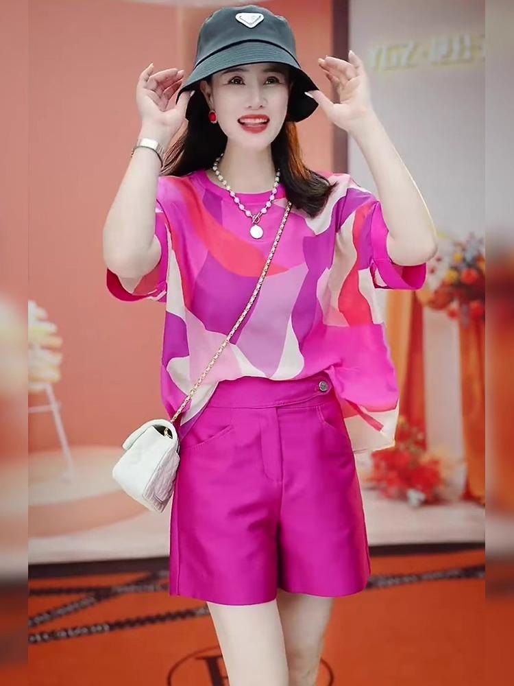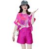 Traje Deportivo Casual de Moda de Alta Gama para Mujer 2024 Verano Nuevo Diseño de Bloques de Color Conjunto de Dos Piezas Top y Shorts