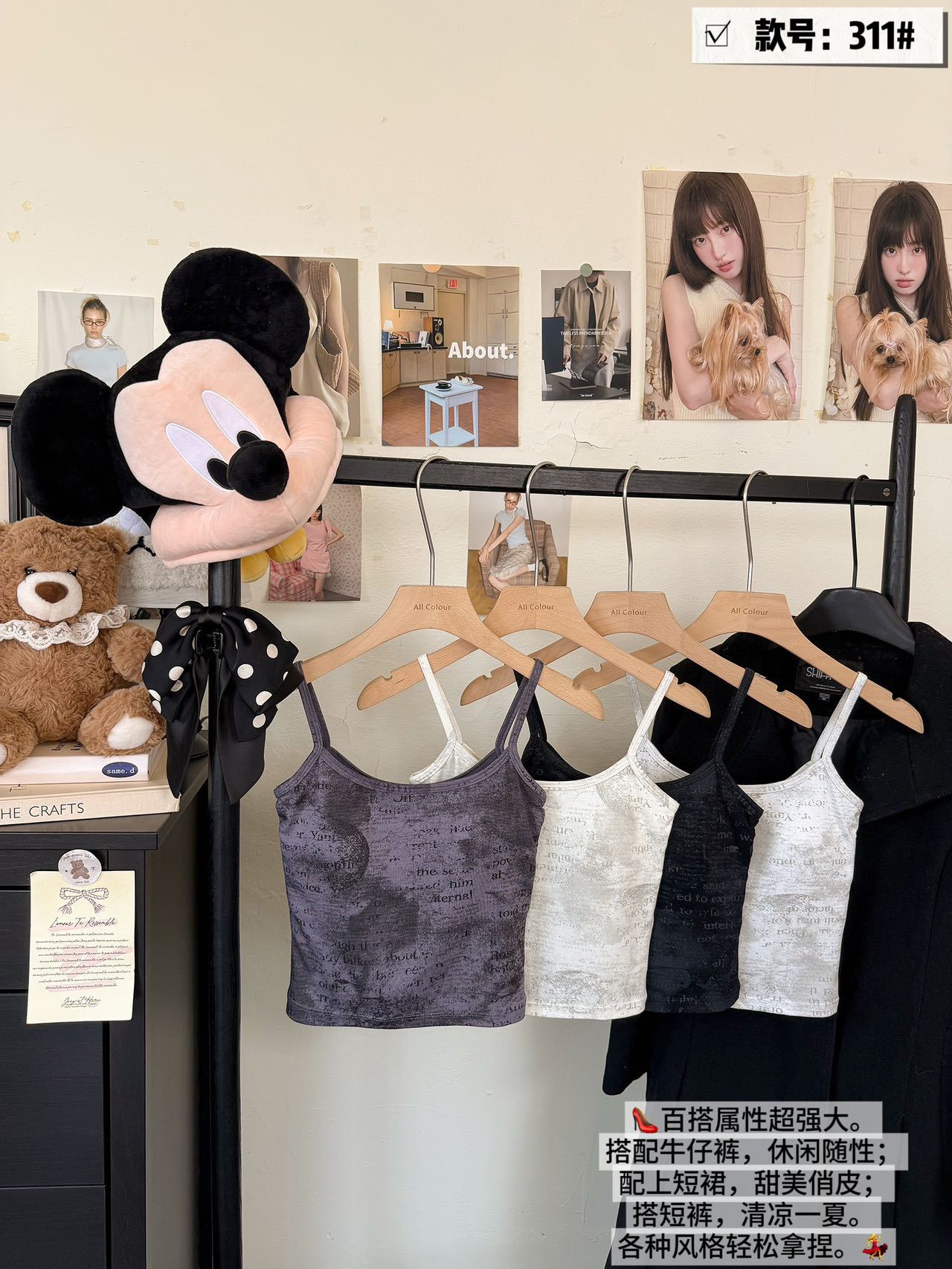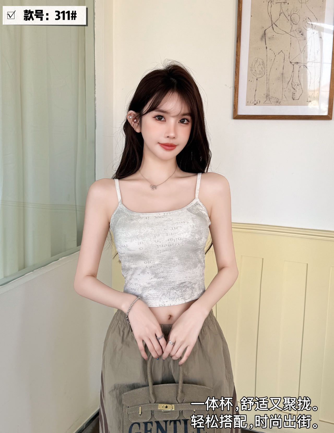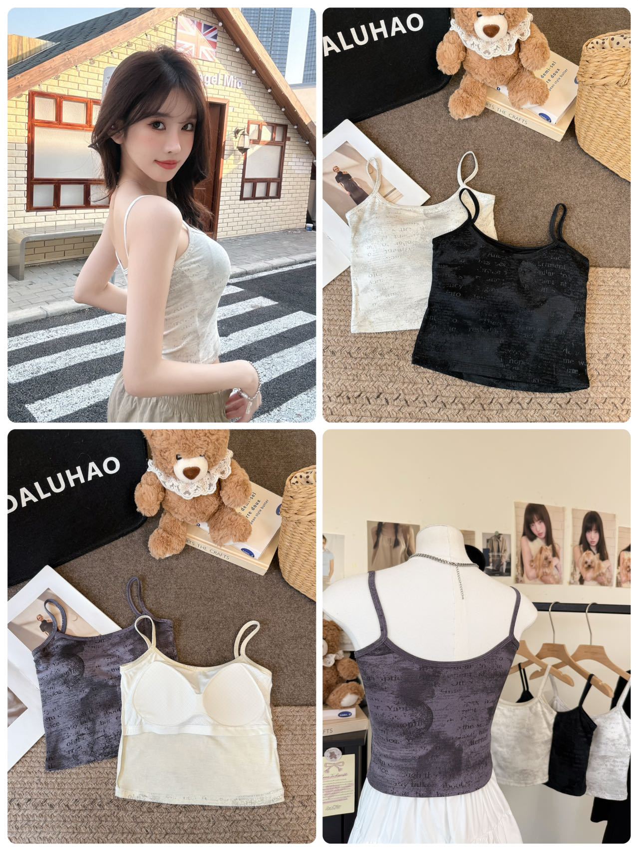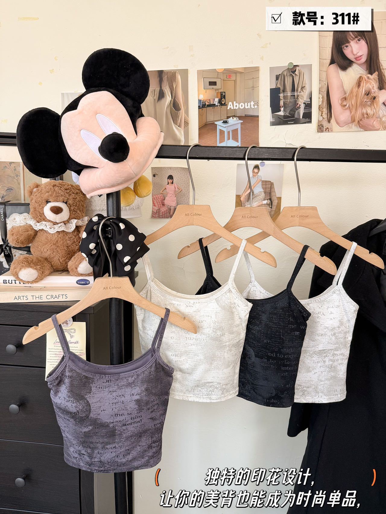 Camisola de estilo americano nuevo con estampado del alfabeto Spice Girl, verano, espalda hermosa, adelgazante, corte ajustado, sin mangas, combinable, top para usar como prenda exterior