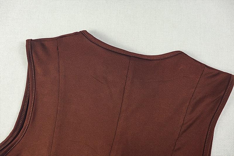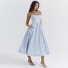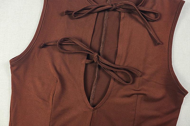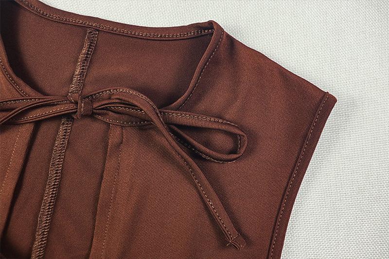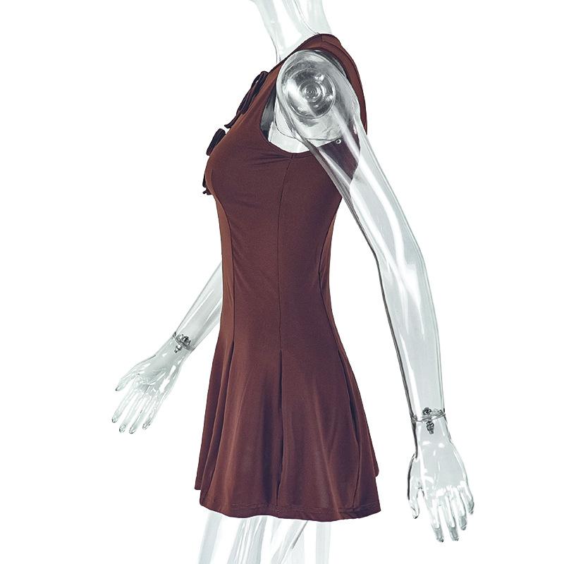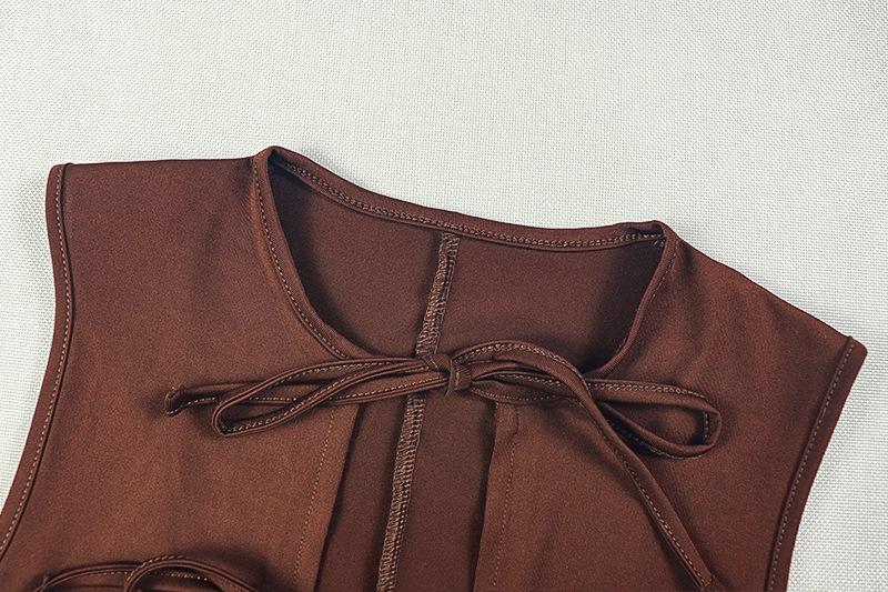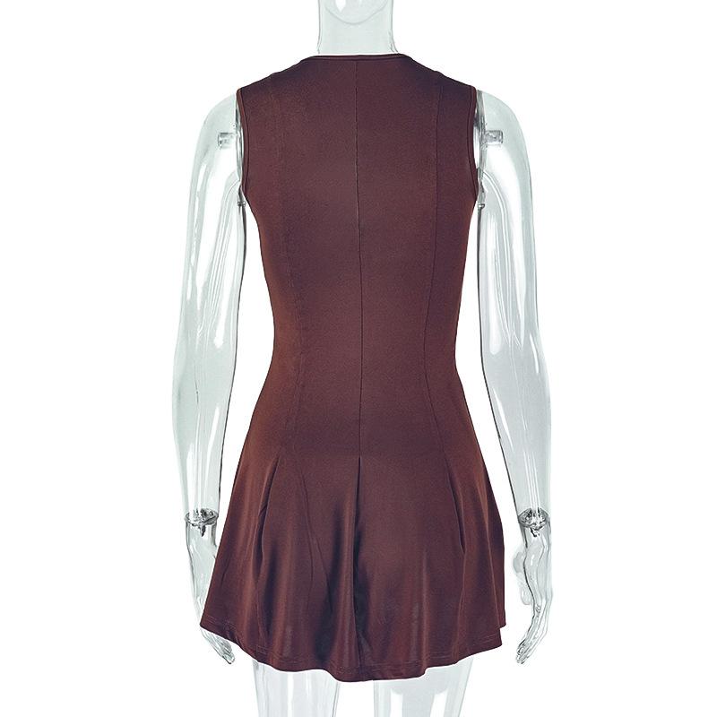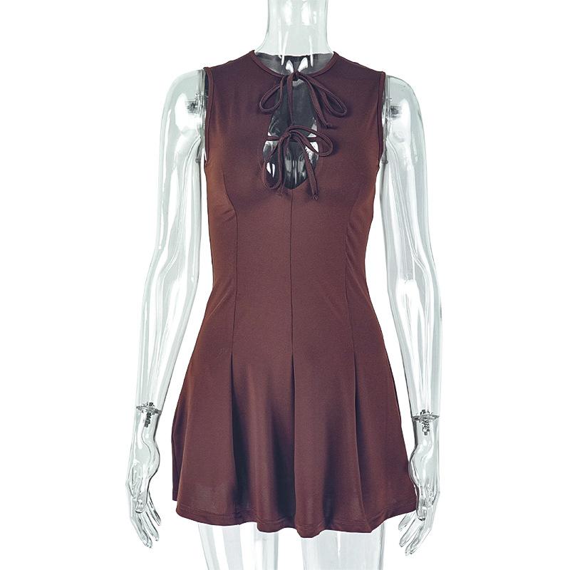 Estilo Europeo y Americano Ins Transfronterizo Color Sólido Moda Falda Elegante A-line de Cintura Plisada para Mujer Vestido Corto sin Mangas con Cordones