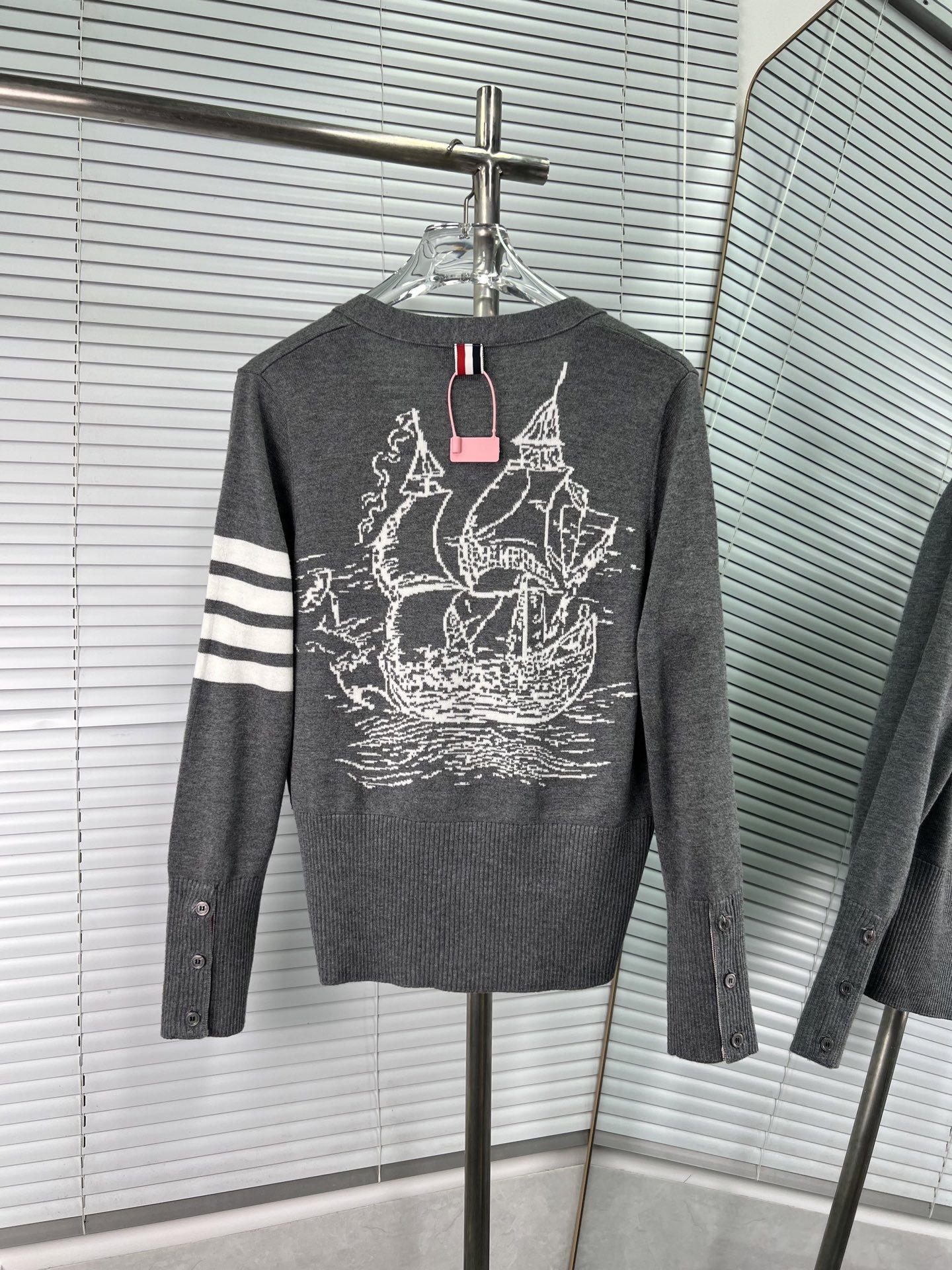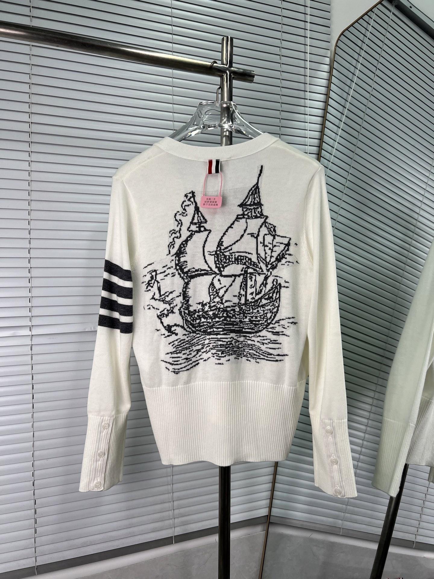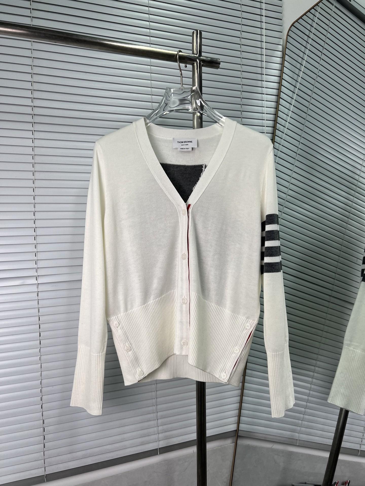 Ventas Directas de Fábrica Tb Versión Alta Primavera y Otoño Mangas Largas Cuatro Barras Cuello en V Espalda Tejida Suéter de Navegación para Mujer