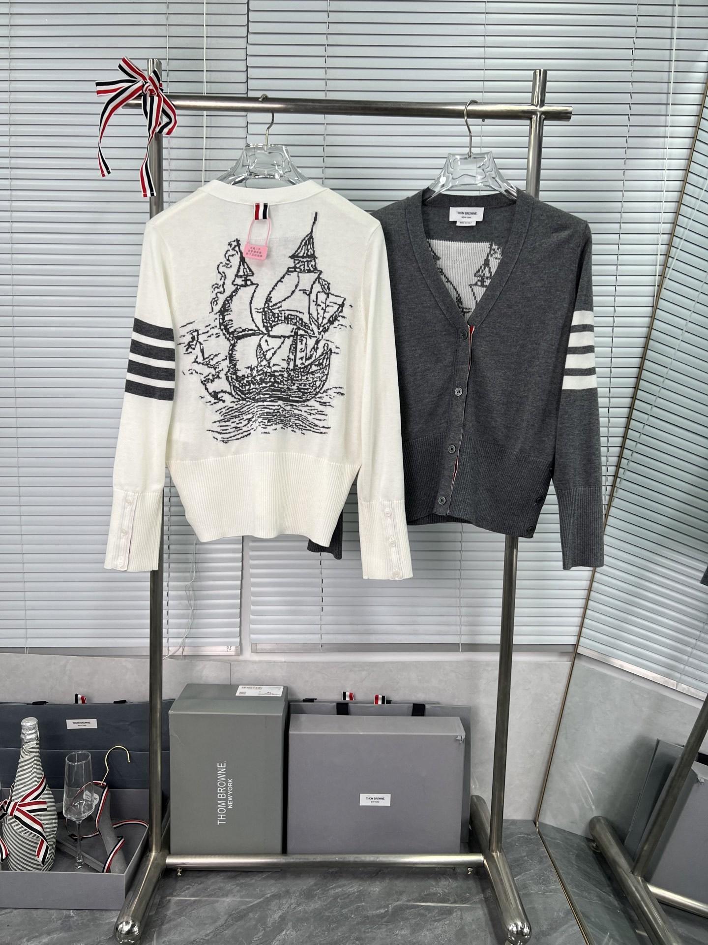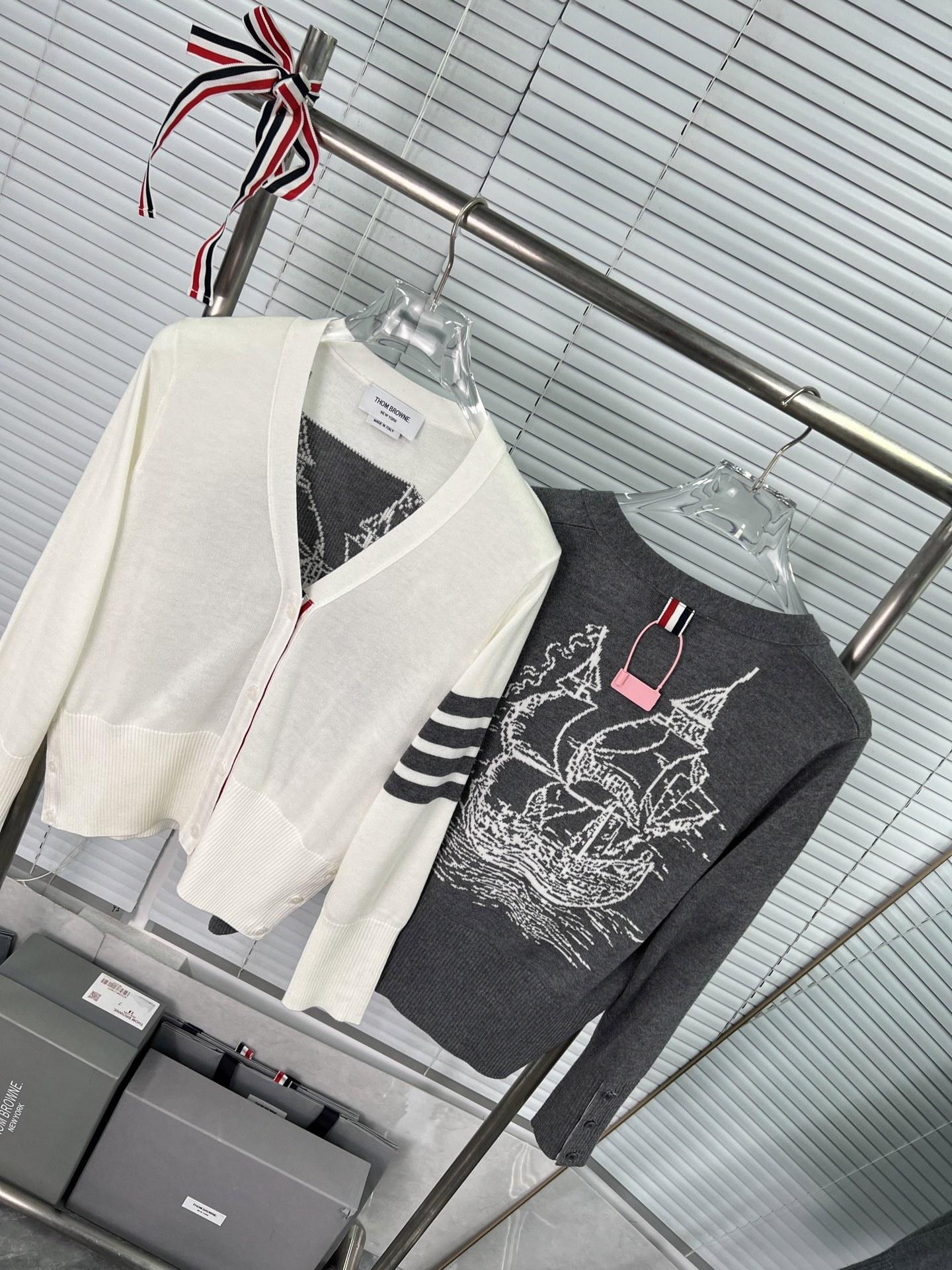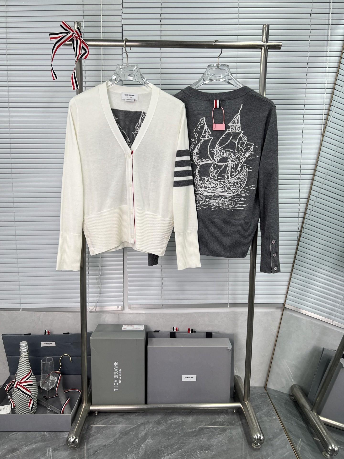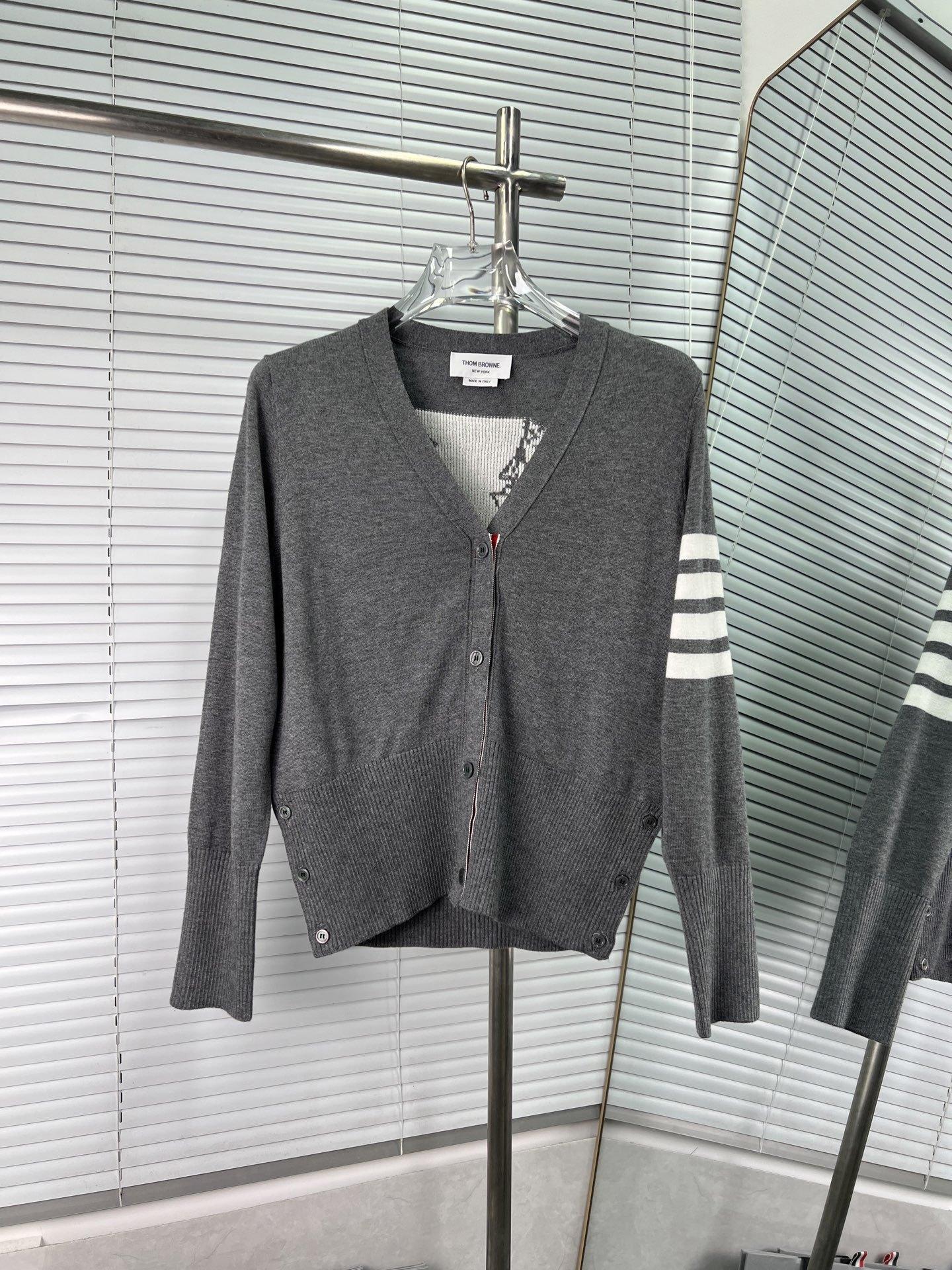 Ventas Directas de Fábrica Tb Versión Alta Primavera y Otoño Mangas Largas Cuatro Barras Cuello en V Espalda Tejida Suéter de Navegación para Mujer