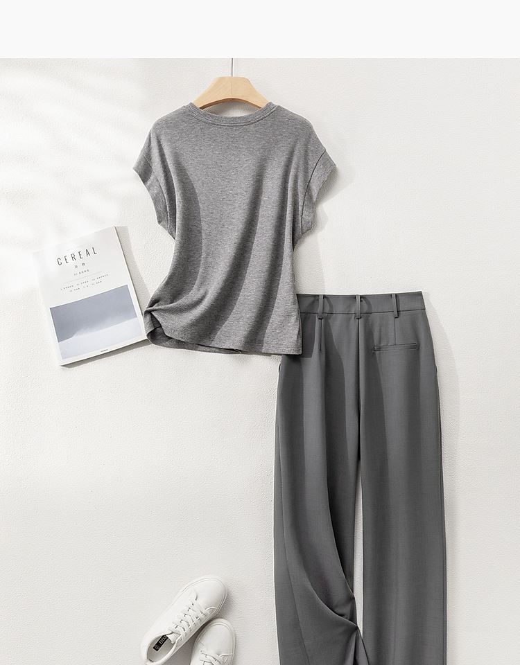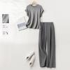 Conjunto de dos piezas de camiseta de manga corta de alta gama y pantalones de pierna ancha para mujer, traje de moda de verano 2025, conjunto de pantalones casuales