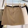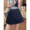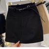 Falda de mezclilla elástica de talla grande para mujer, para trabajo, verano, para gordita mm, anti-exposición, cintura alta, corte A, que cubre las caderas, falda corta