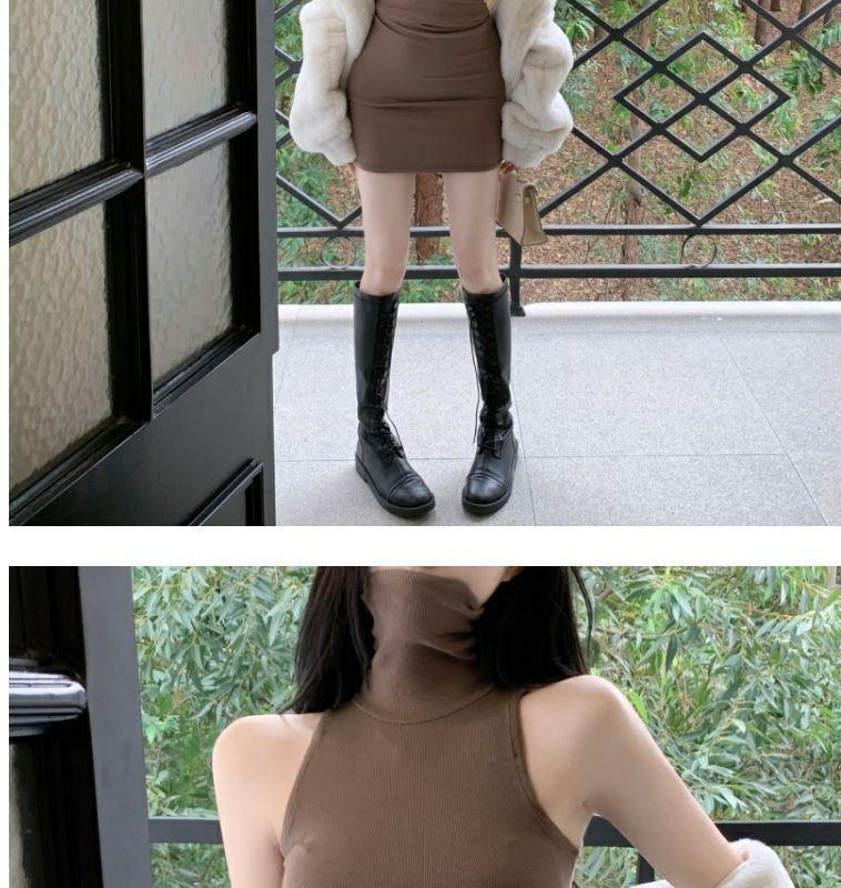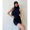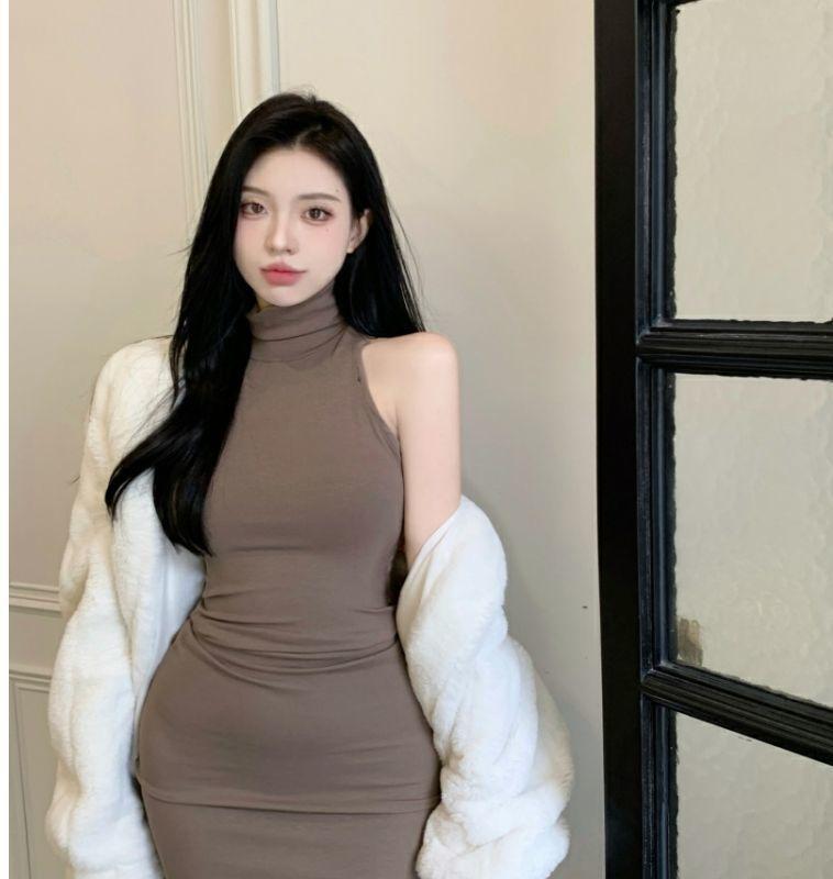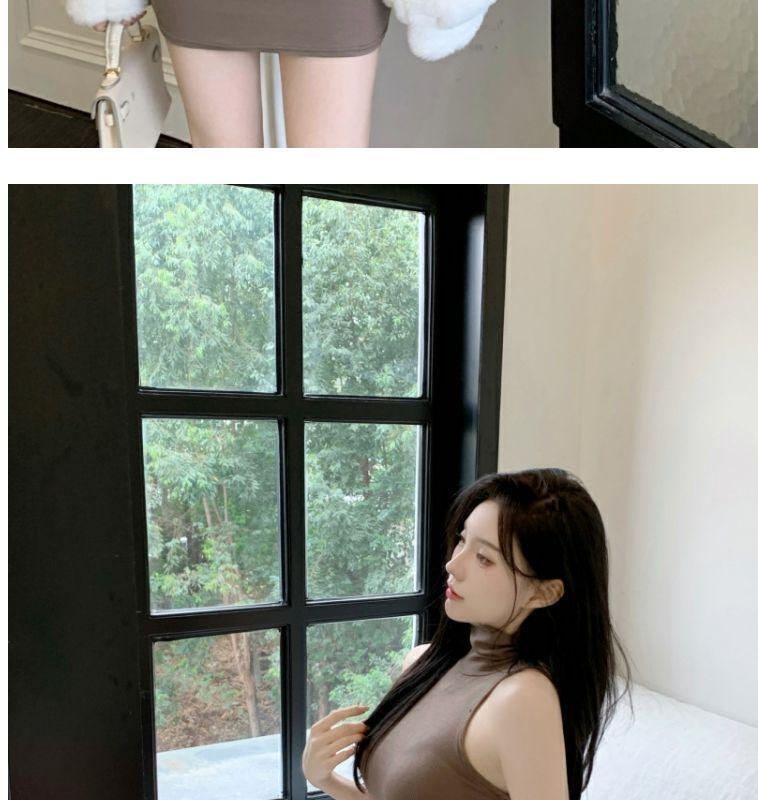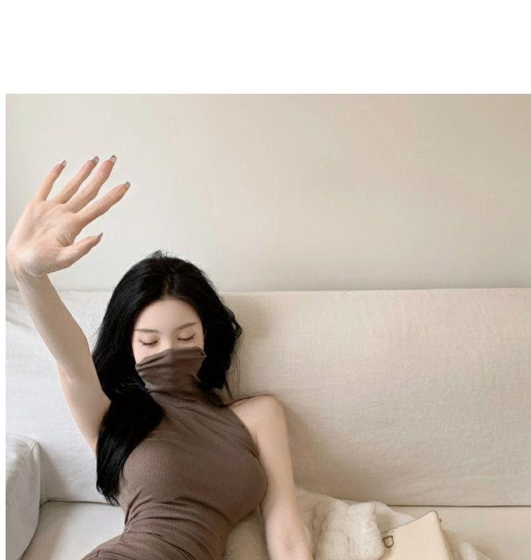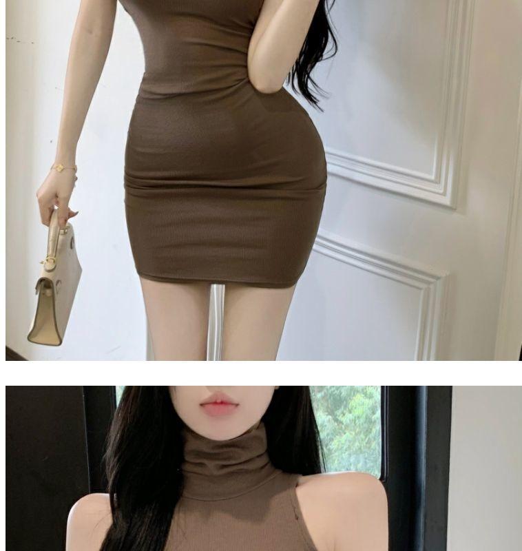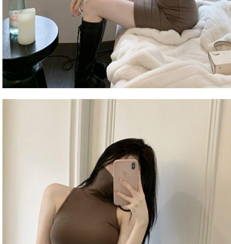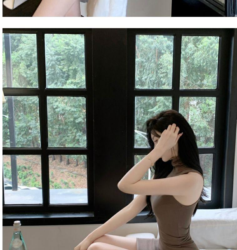 Verano Estilo Deseo Puro Dulce y Picante Ajustado Cintura Adelgazante Petite Cuello Alto Sin Mangas Bodycon Sexy Vestido Base para Mujer