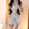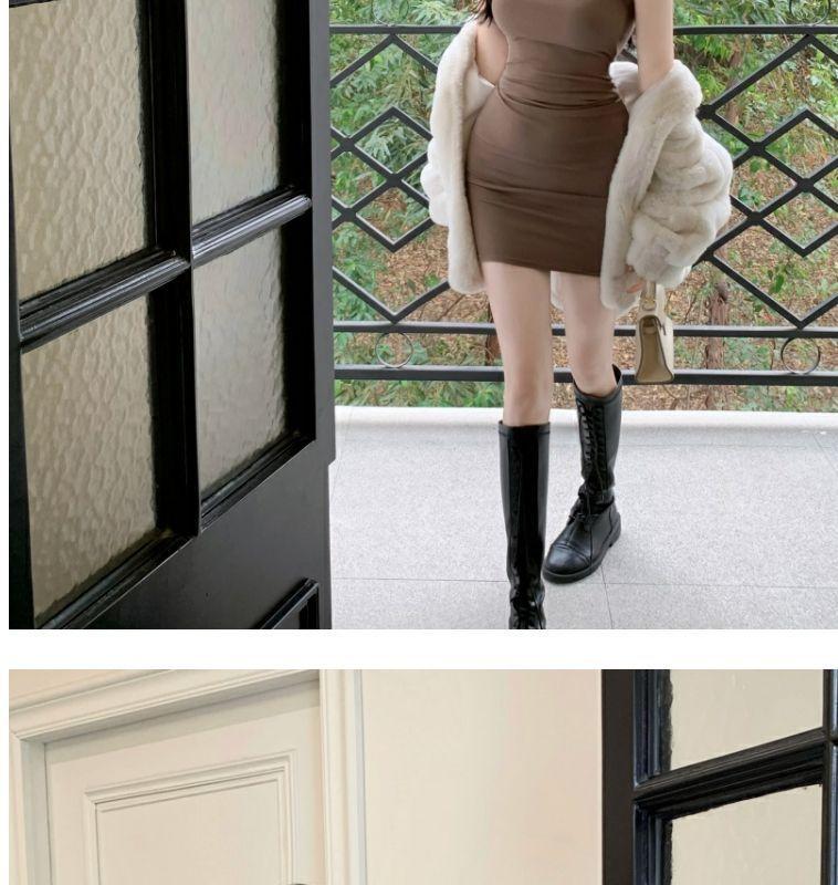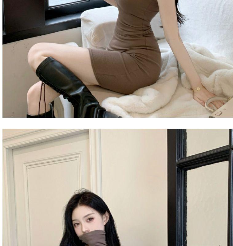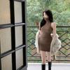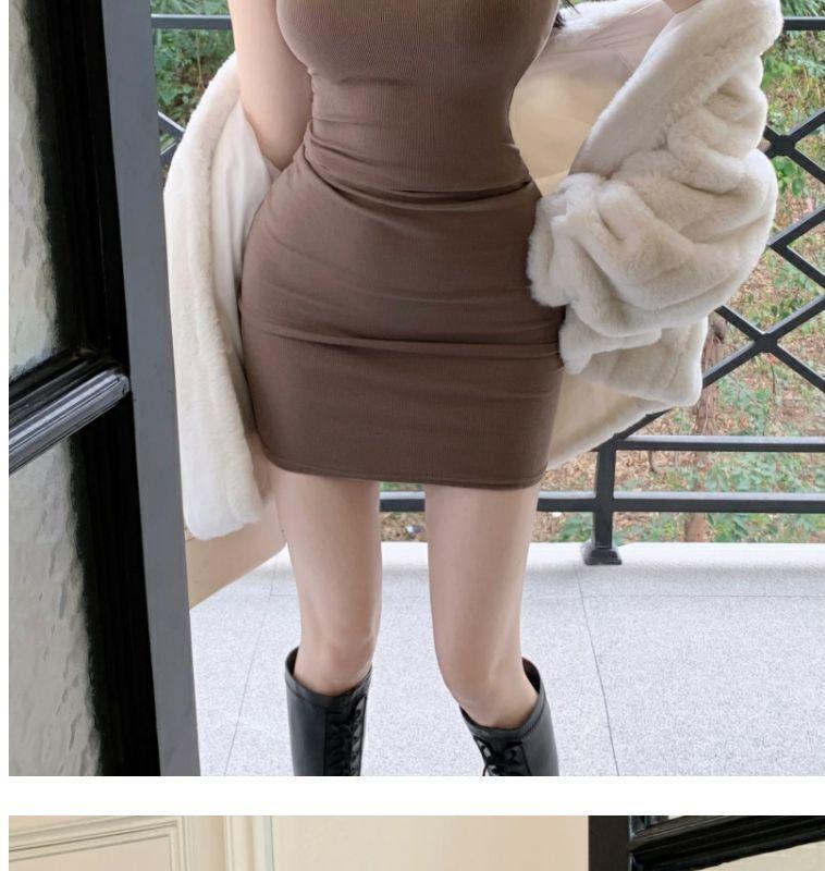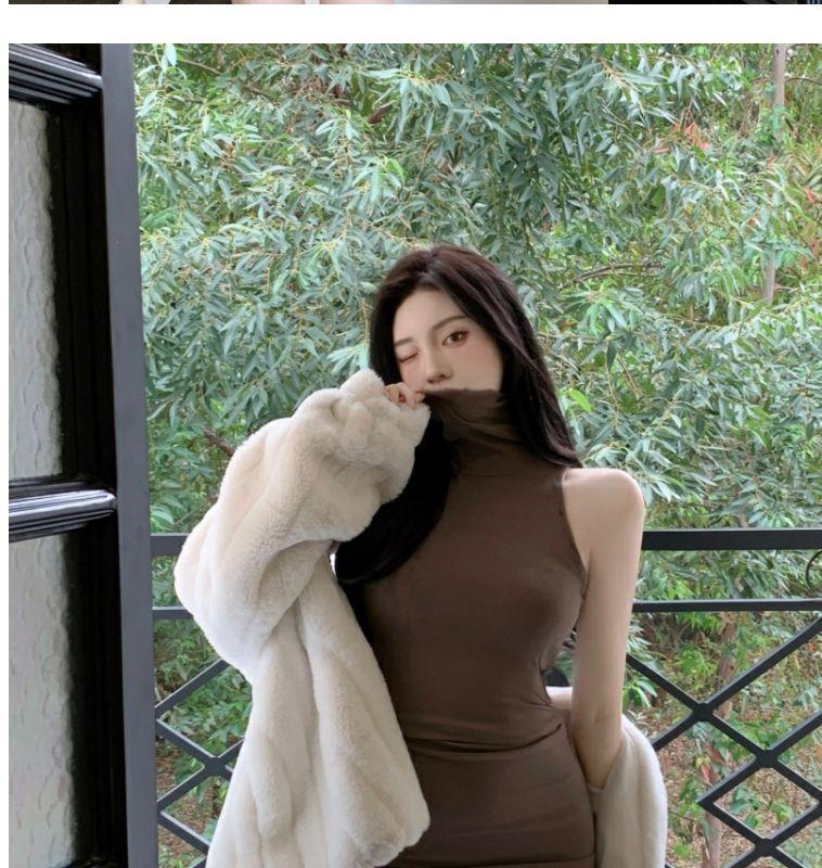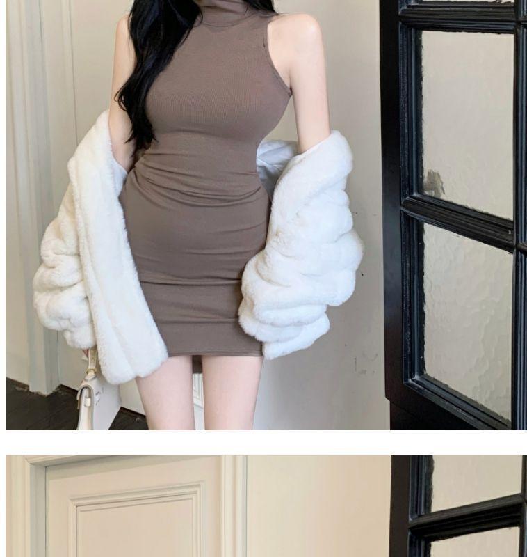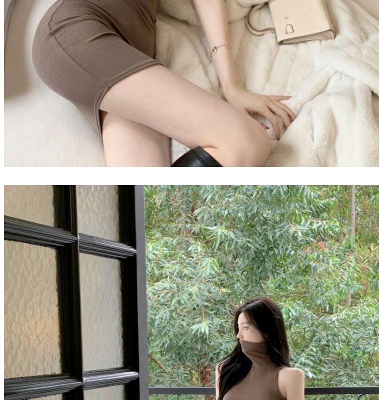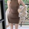 Verano Estilo Deseo Puro Dulce y Picante Ajustado Cintura Adelgazante Petite Cuello Alto Sin Mangas Bodycon Sexy Vestido Base para Mujer