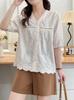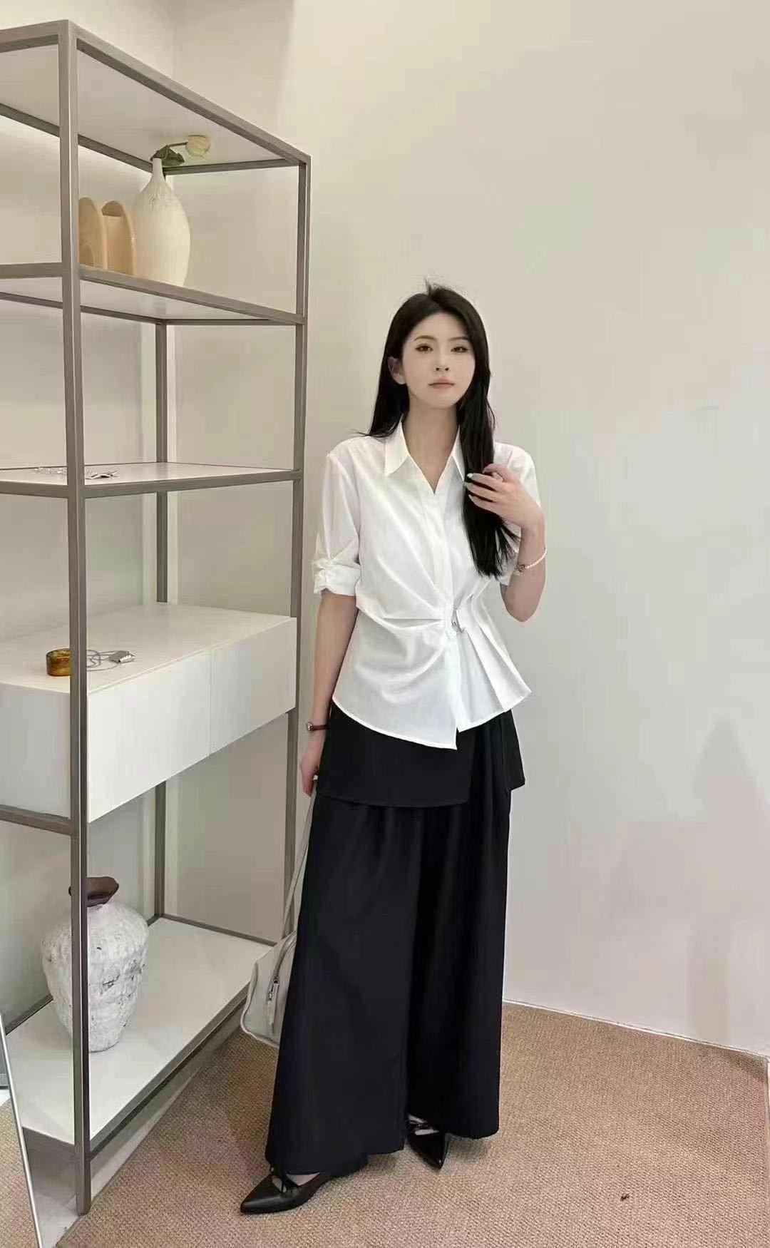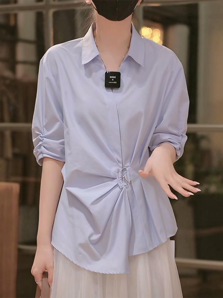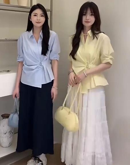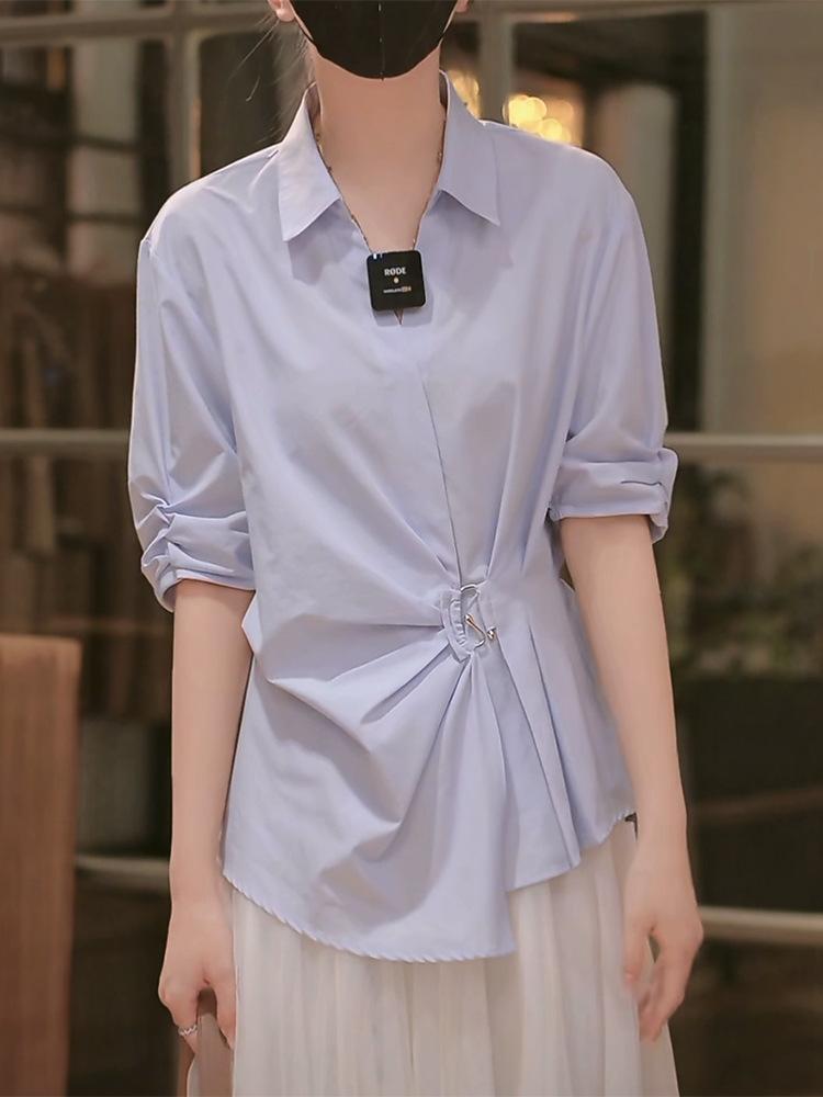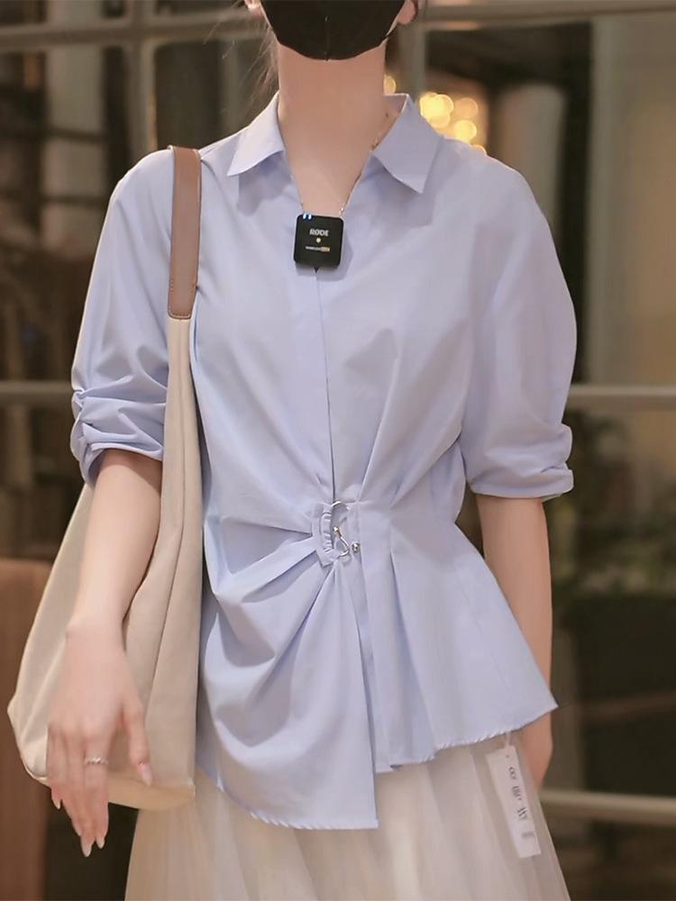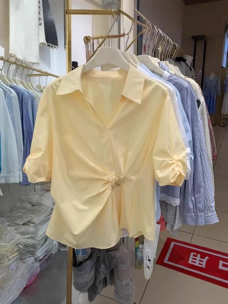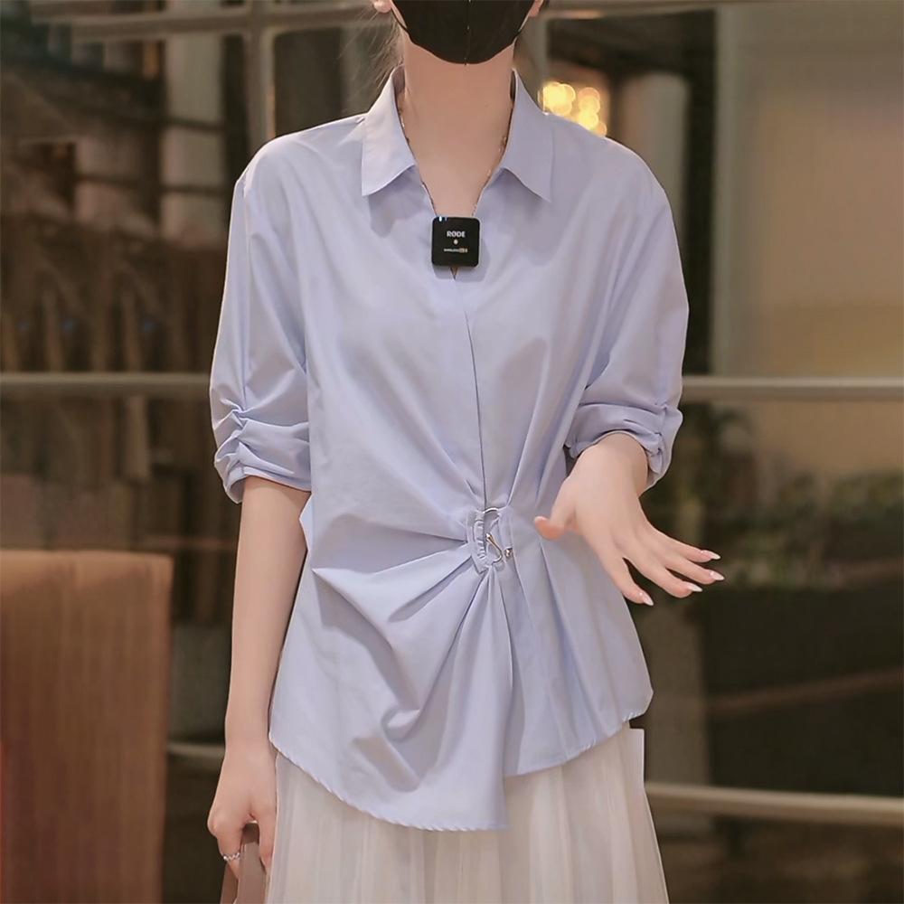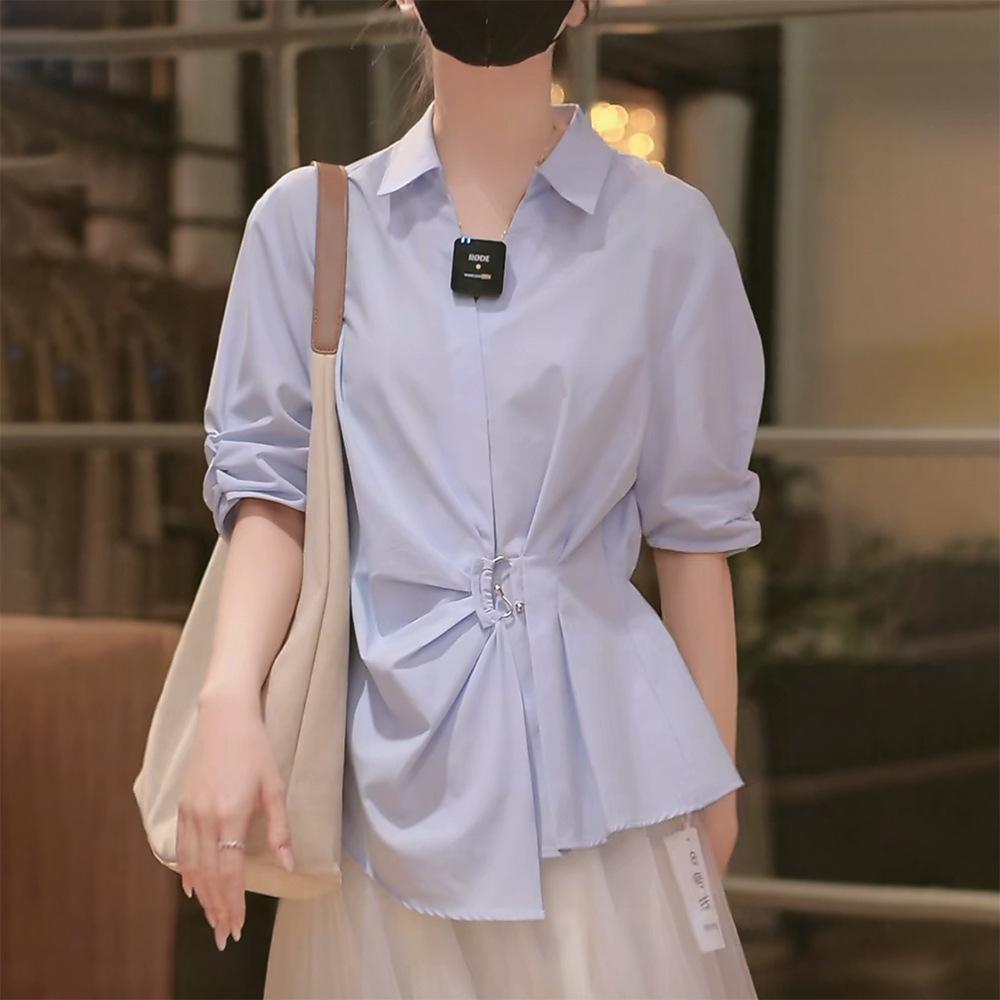 Camisa de Manga Corta Irregular con Sentido del Diseño para Mujer Verano 2025 Nuevo Estilo Moda Versátil Reductora de Edad Casual Adelgazante