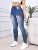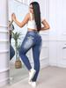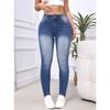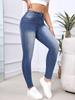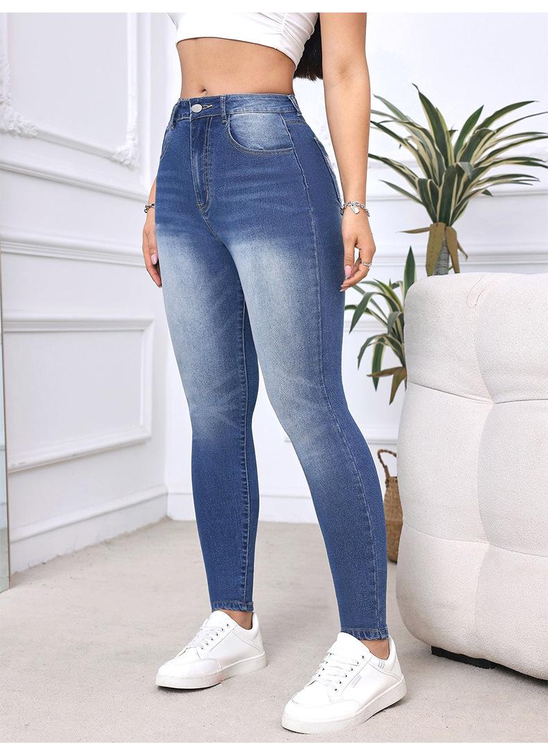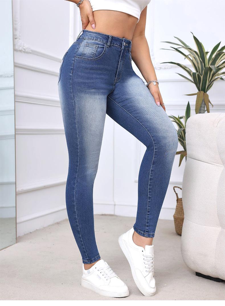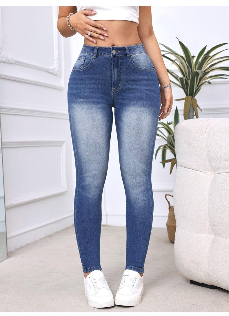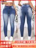 Europeo y Americano Transfronterizo 2025 Nuevo Aliexpress Más Vendido Simple Bordado Elástico Ajustado Denim Azul Pantalones Slim para Mujer