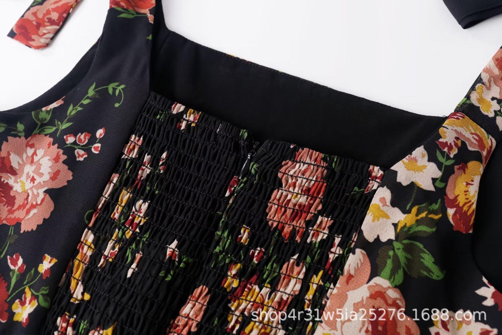Moda Femenina Europea y Americana 2023 Estilo Francés Nicho Pastoral Floral Dulce Cordón Verano Ajustado Deseo Puro Vestido de Vacaciones