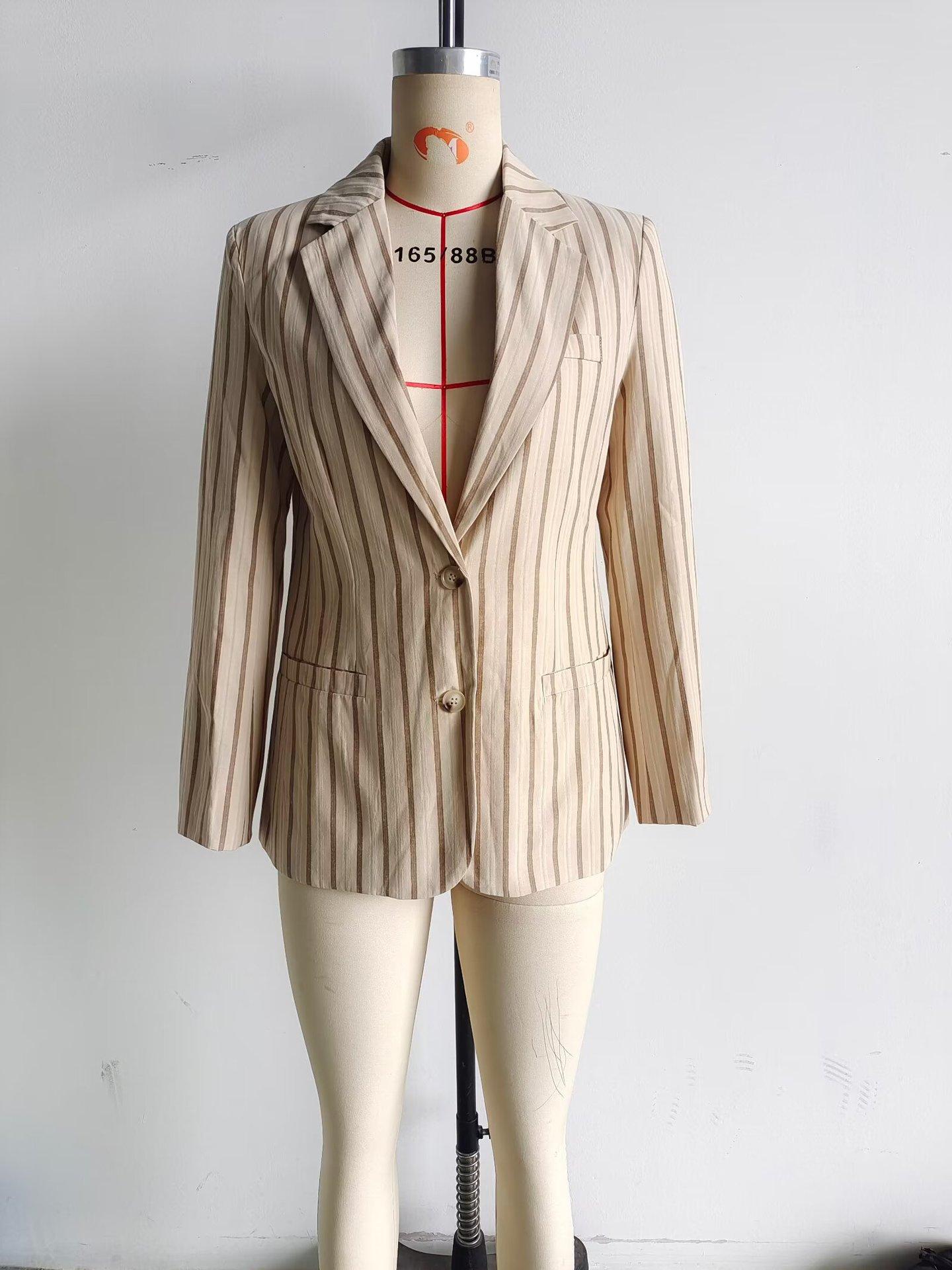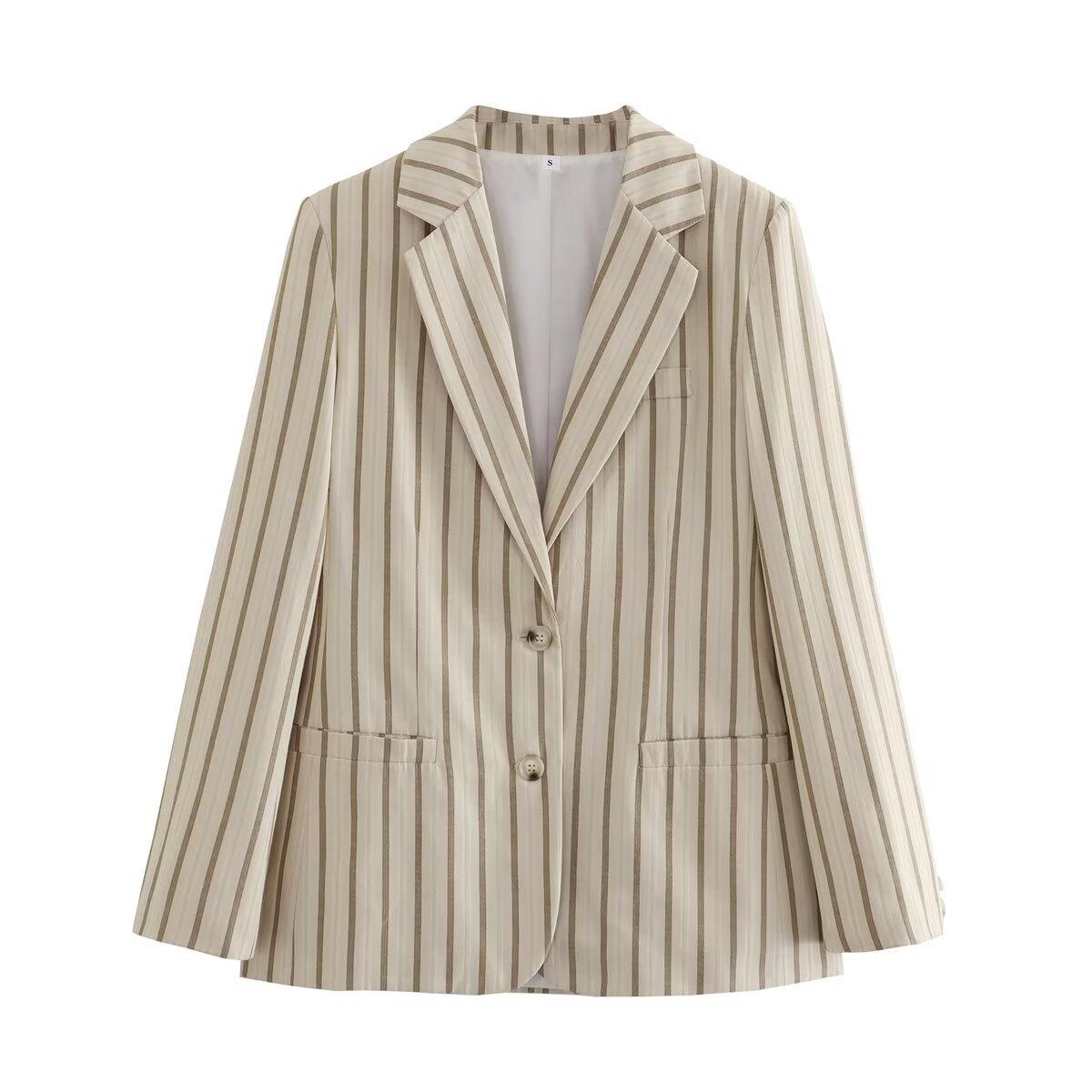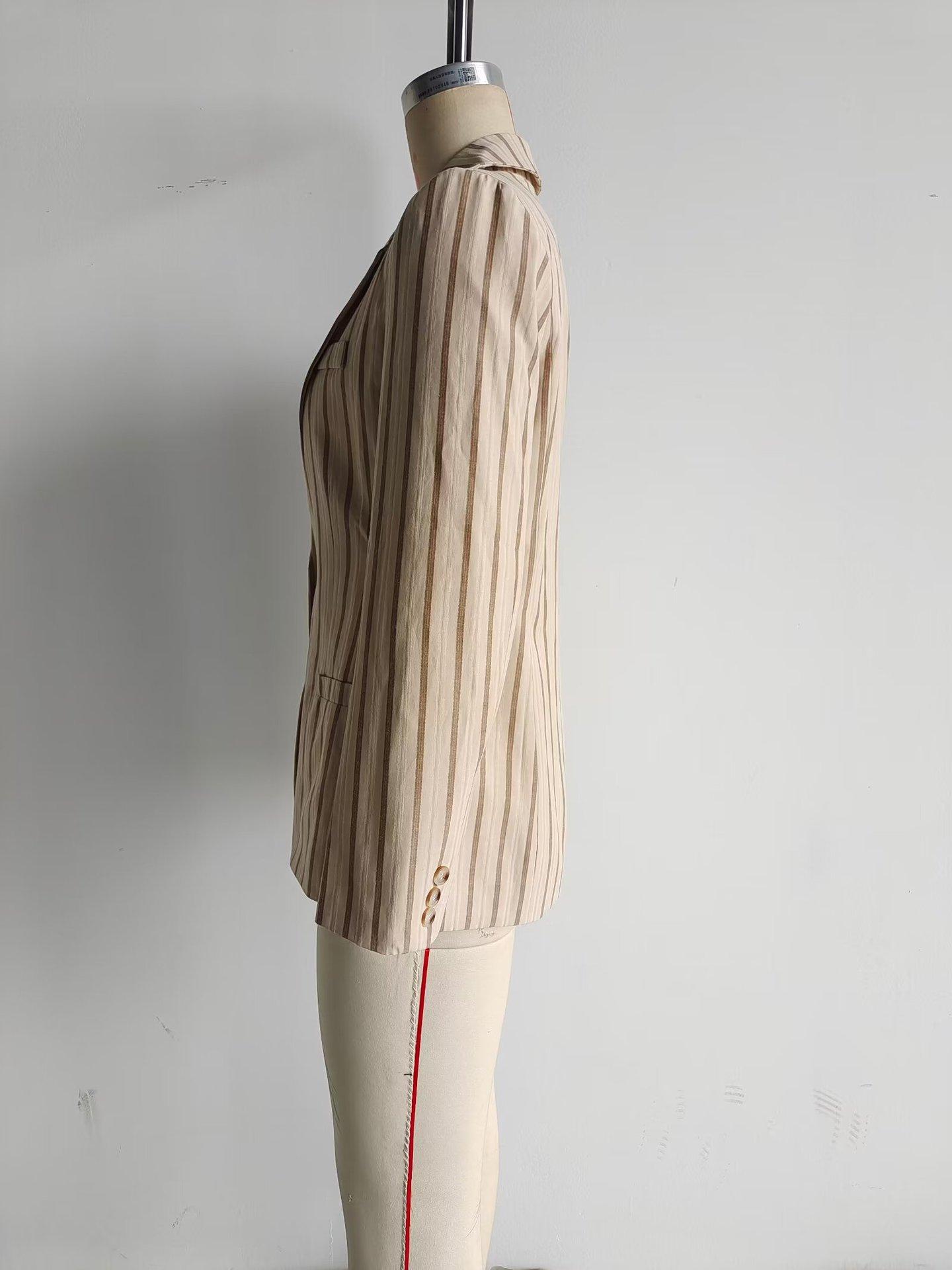 Moda Europea y Americana Transfronteriza Moda Popular de Aliexpress Casual Temperamento para Ir al Trabajo Versátil Traje Rayado Chaqueta de Manga Larga