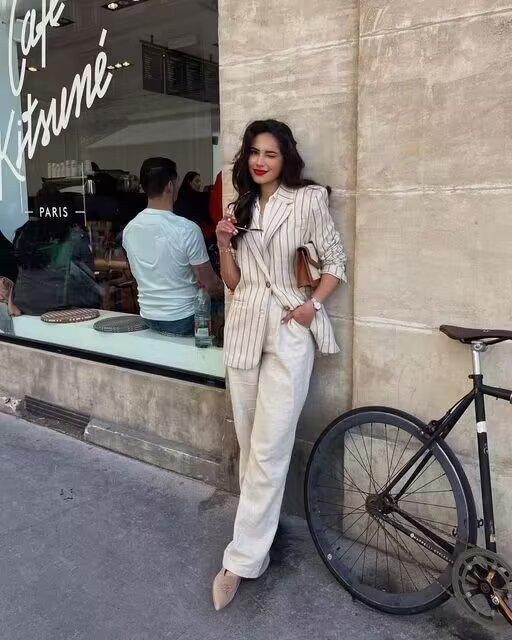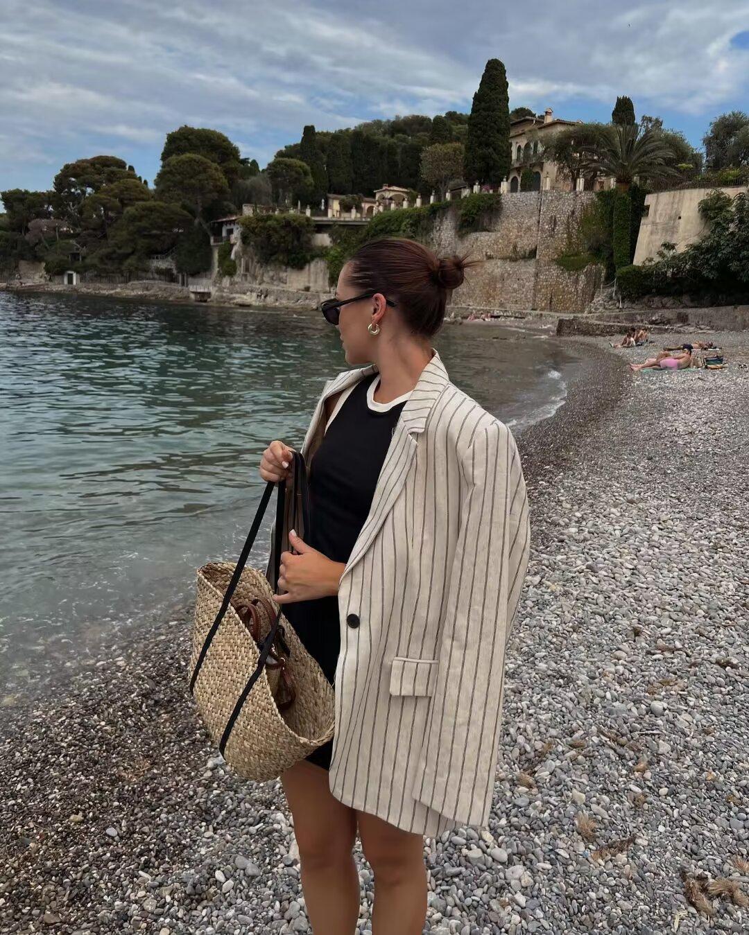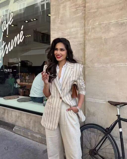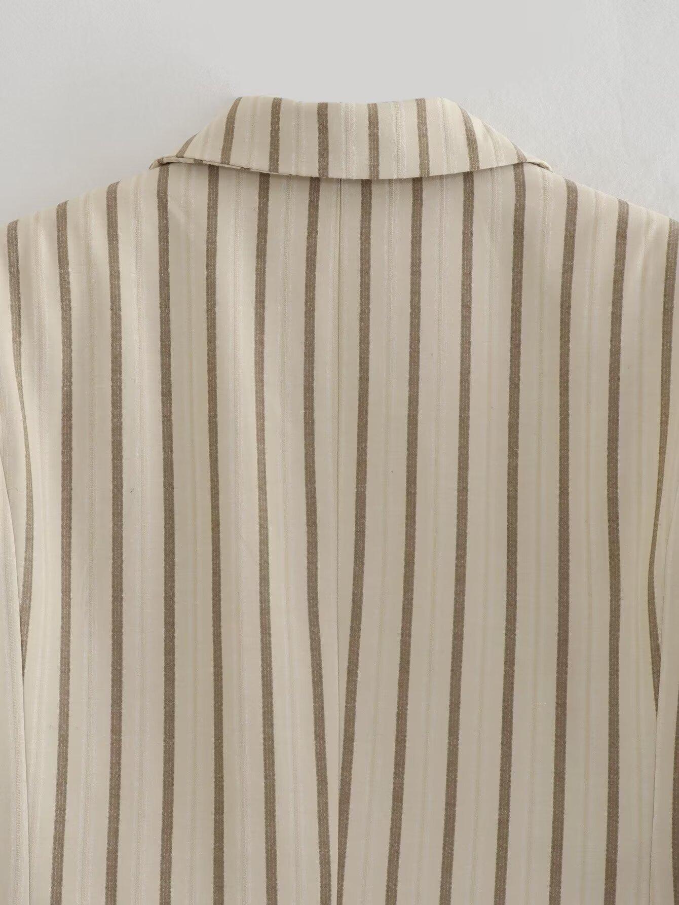 Moda Europea y Americana Transfronteriza Moda Popular de Aliexpress Casual Temperamento para Ir al Trabajo Versátil Traje Rayado Chaqueta de Manga Larga