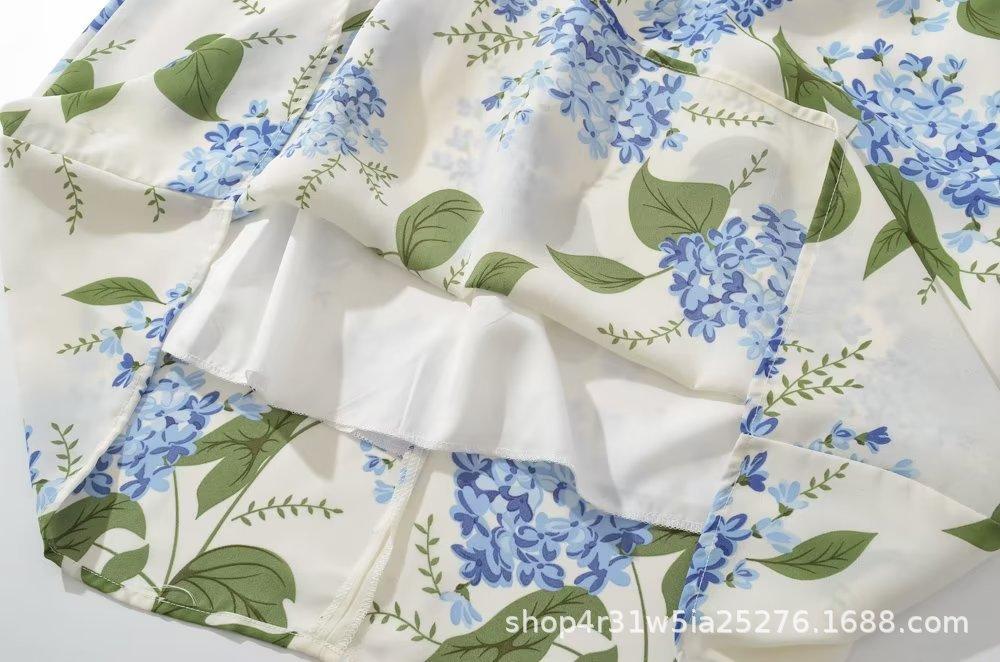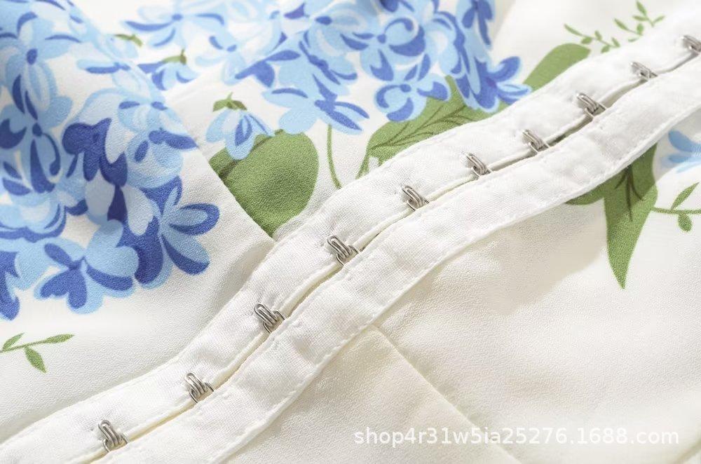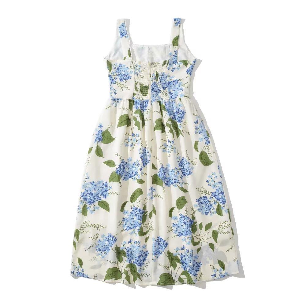 Vestido de tirantes de verano nuevo europeo y americano, retro francés de nicho, cuello cuadrado, estampado, cintura entallada, al por mayor