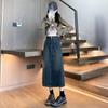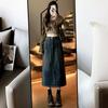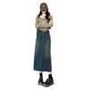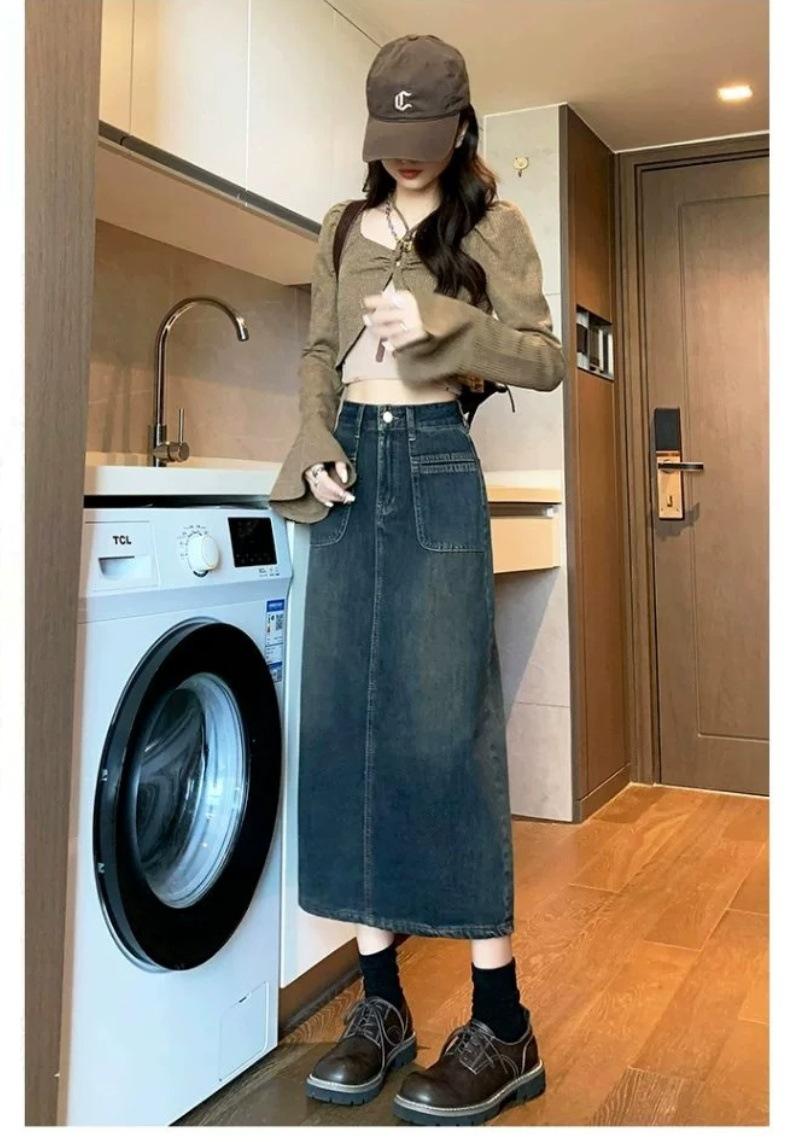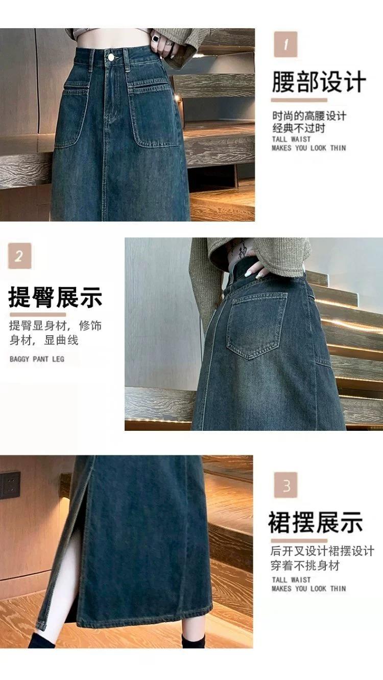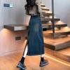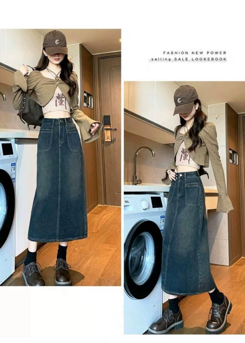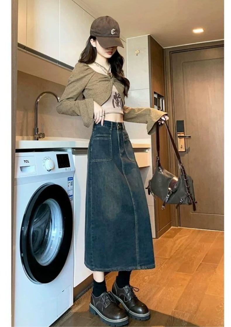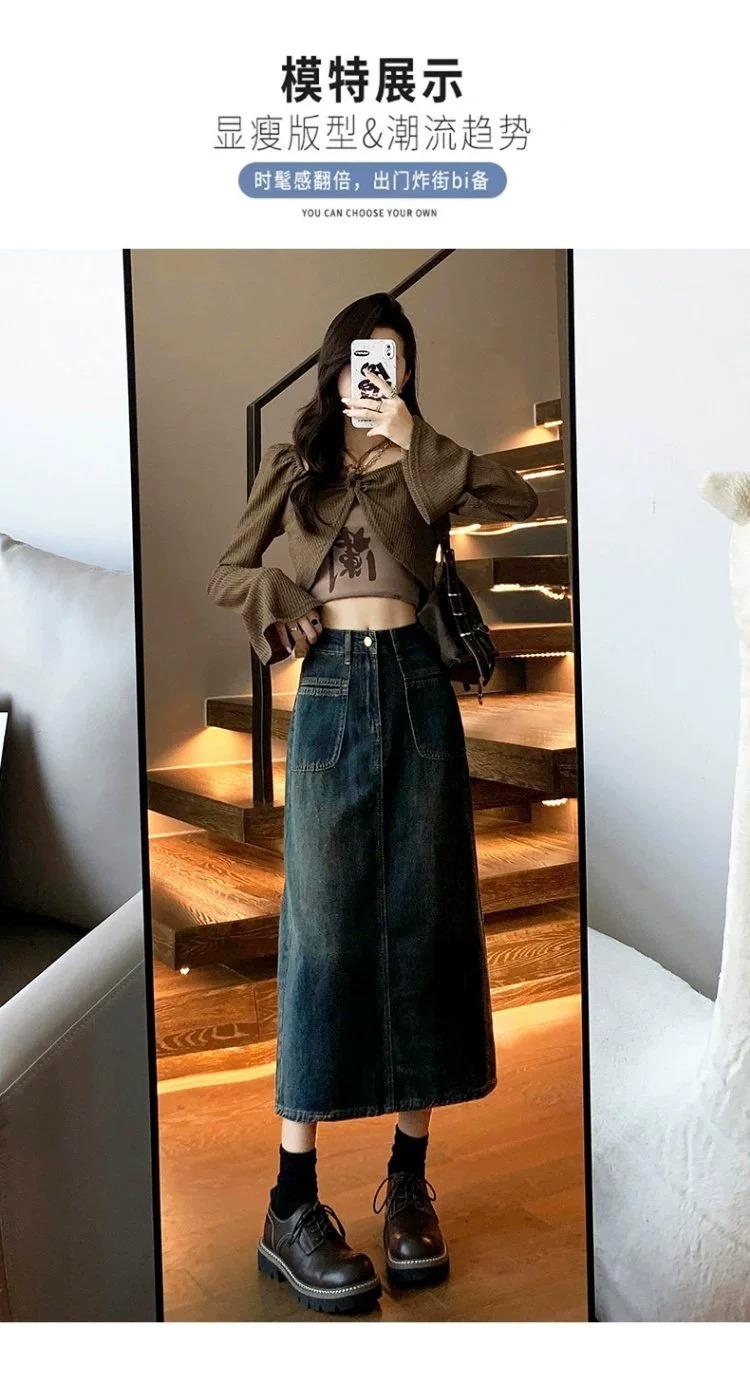 Falda vaquera vintage de cintura alta con corte A para mujer, primavera y otoño, nueva falda larga de longitud media con abertura pequeña, falda a la cadera