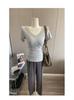 Compra Moda Estilo Americano Hombro Derecho Cuello en V Adelgazante de Cintura Chic Top Verano Sexy Versátil Color Sólido Camiseta de Manga Corta Trendy al por mayor en Joom.pro