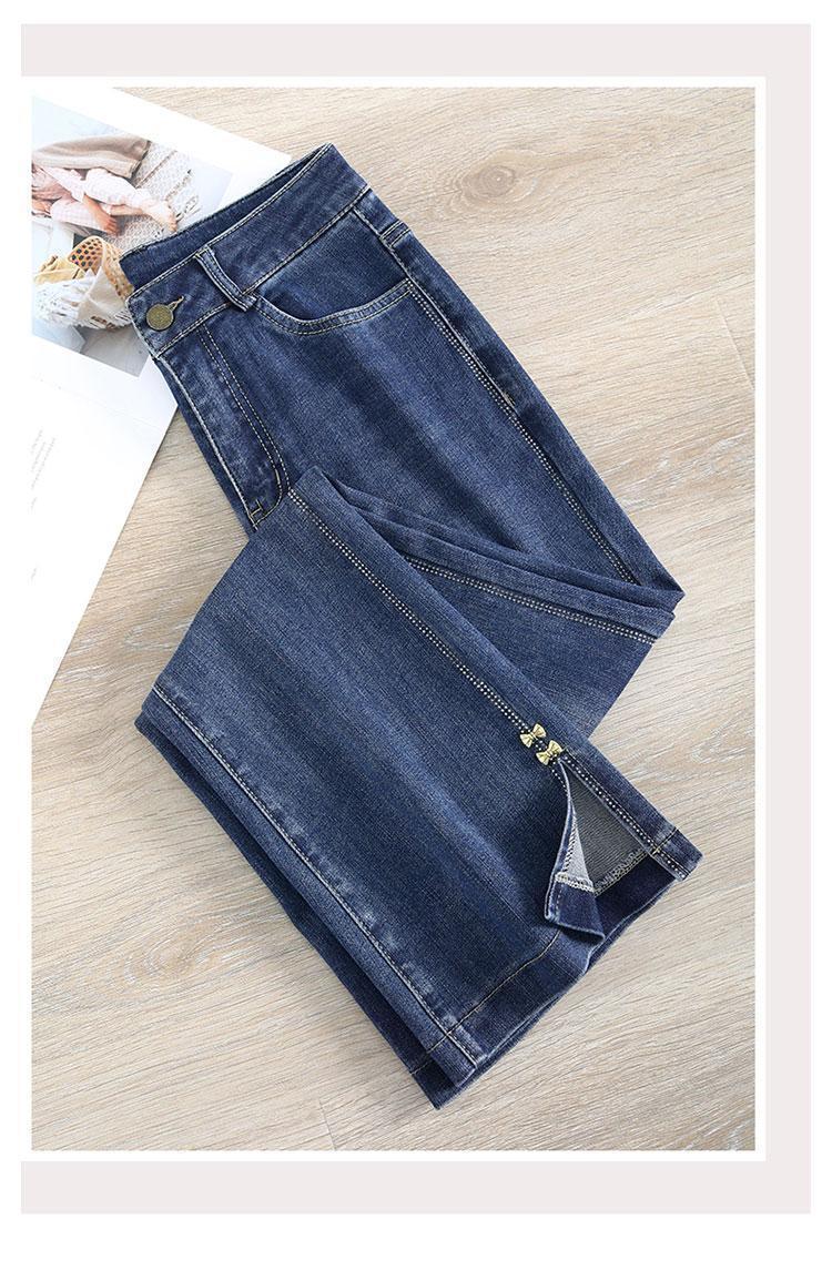 Nueva Llegada Jeans Skinny Cortos para Mujer Primavera y Otoño Cintura Alta Rectos Elásticos Ajustados Acampanados