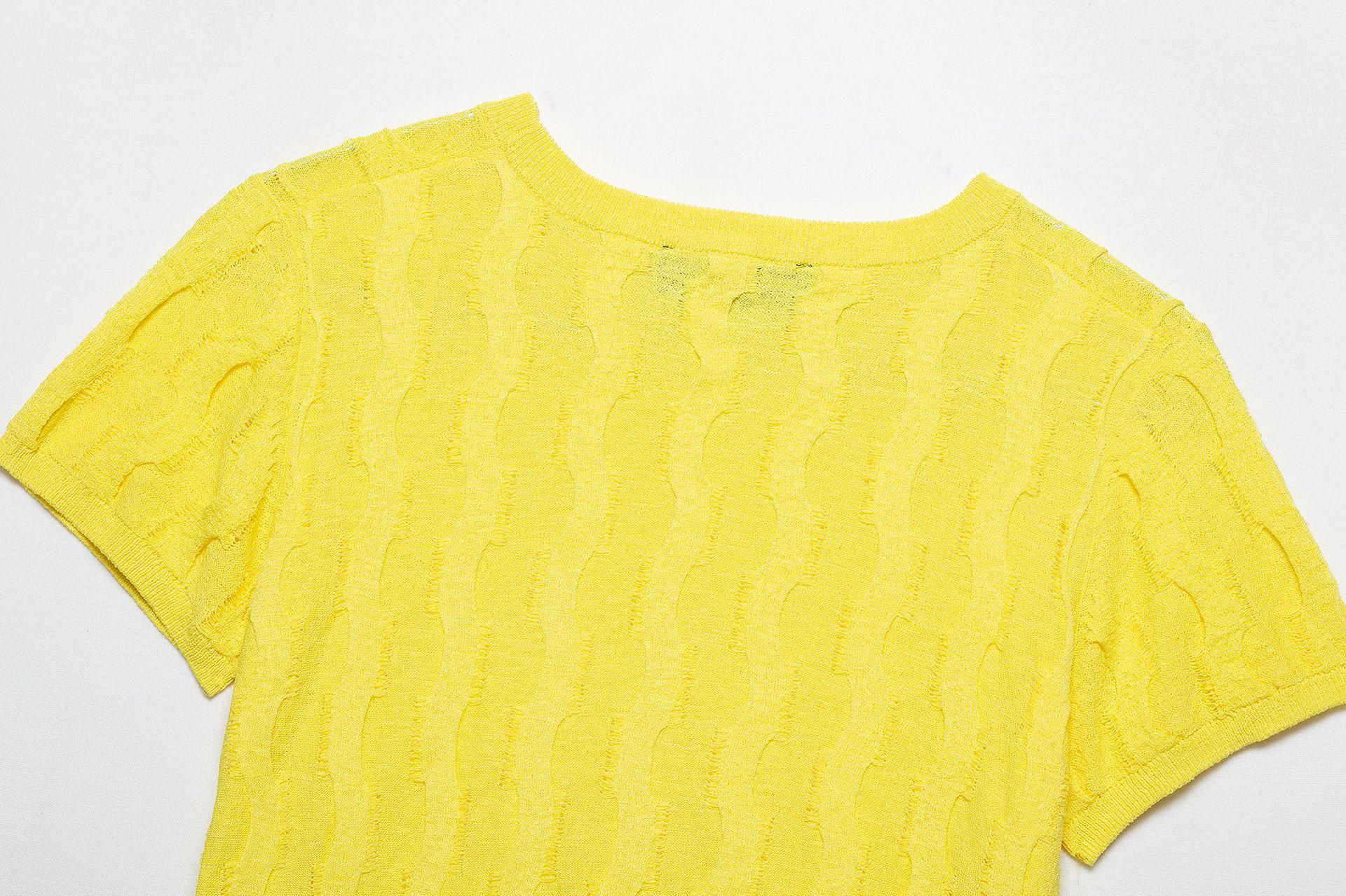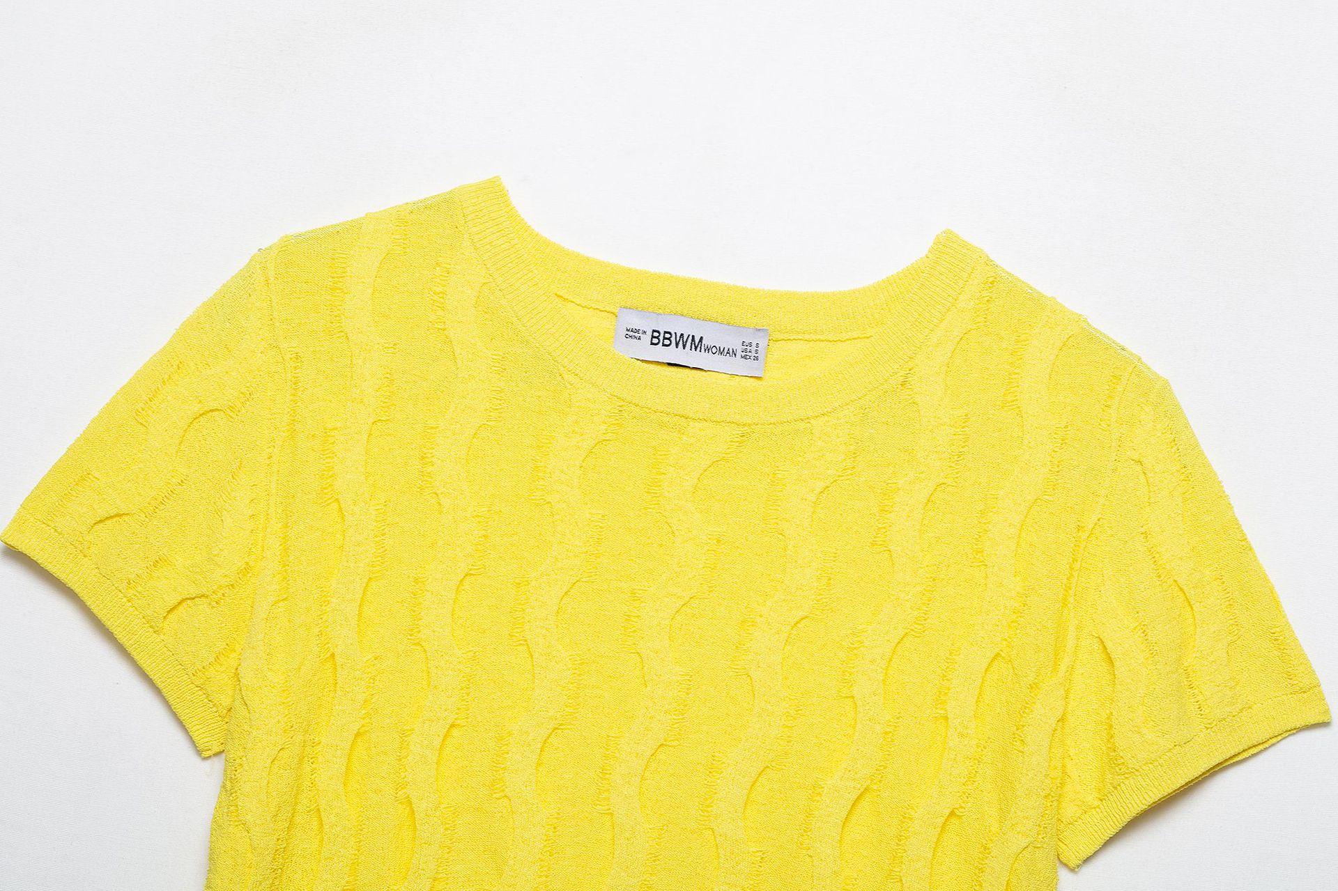 Aliexpress Exportación Transfronteriza Ropa Europea y Americana 2025 Primavera Nuevo Jersey de Punto de Manga Corta con Cuello Redondo y Patrón Trenzado