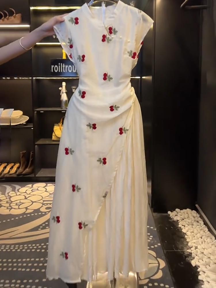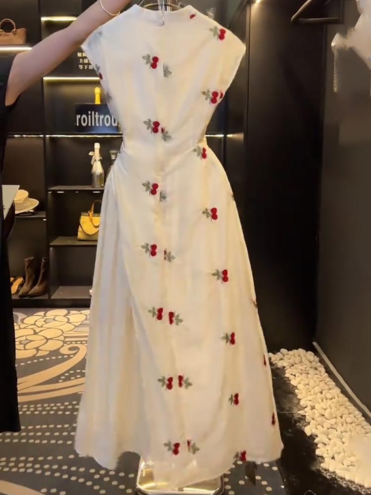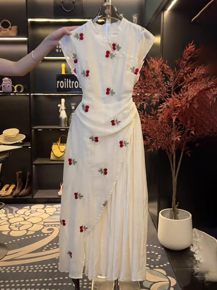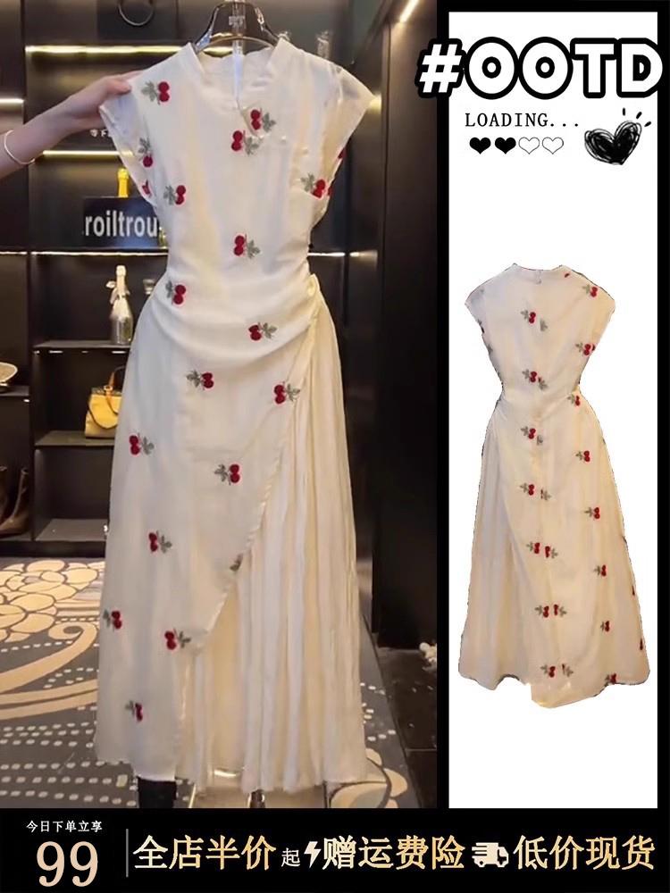 Vestido de Temperamento con Diseño Nicho de Alta Gama con Empalme en la Cintura Verano Nuevo Nuevo Estilo Chino Estilo Nacional Bordado Falda para Mujer