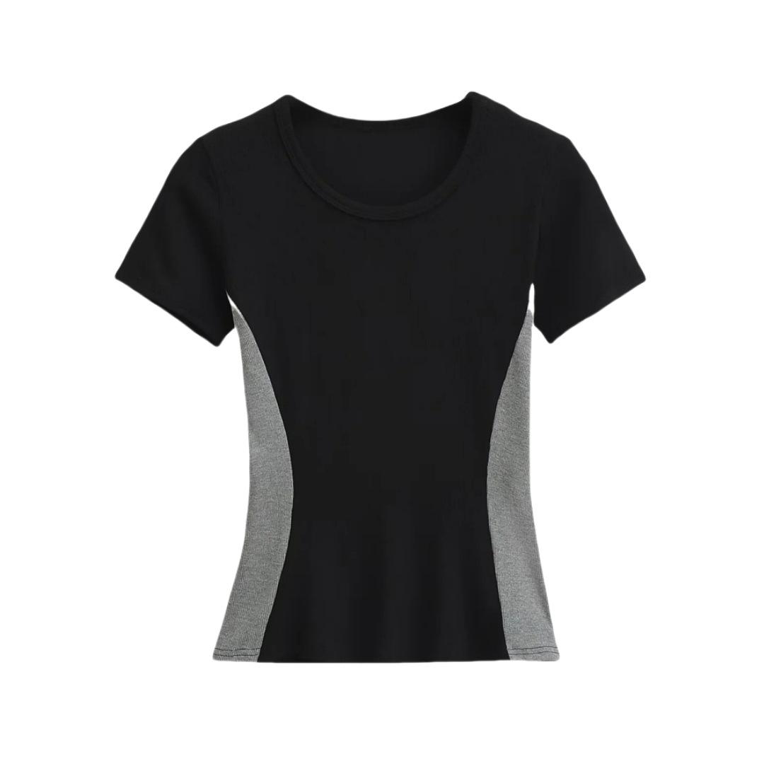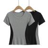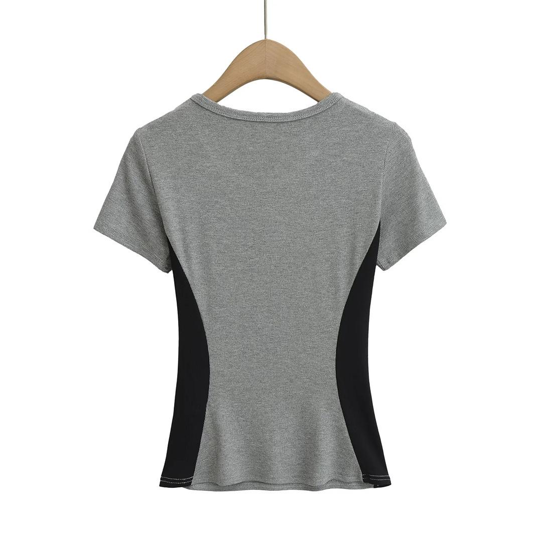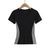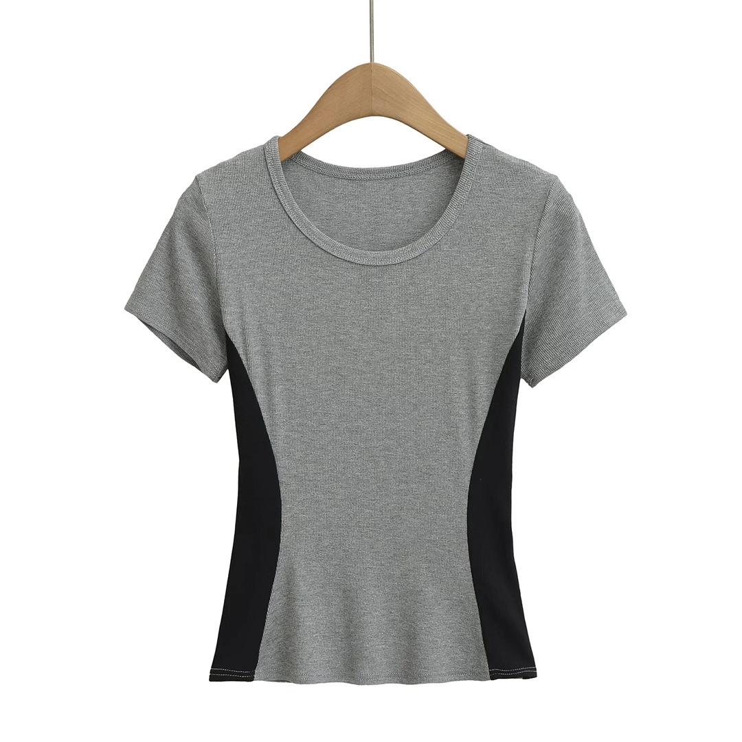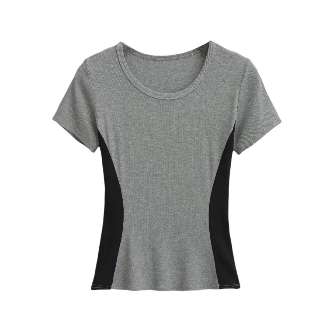 Camiseta Básica Retro Nicho Cuello Redondo Manga Corta Diseño Elegante Sexy Combinación de Colores Afinando la Cintura Look Top Verano