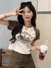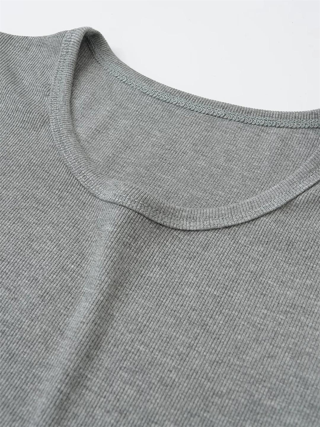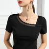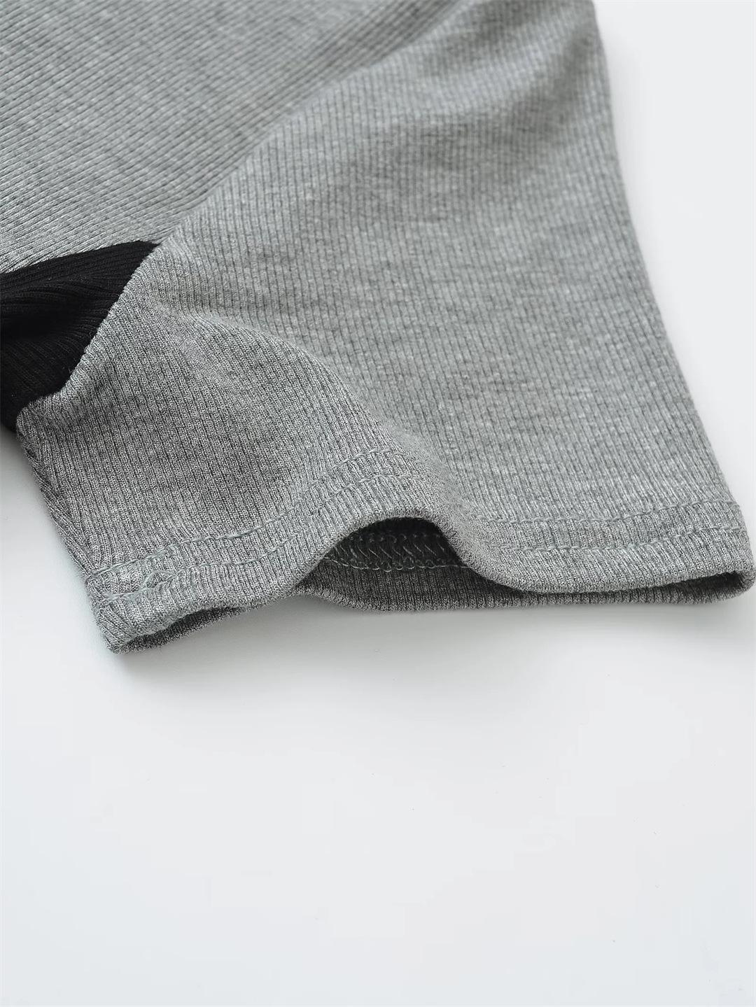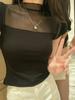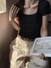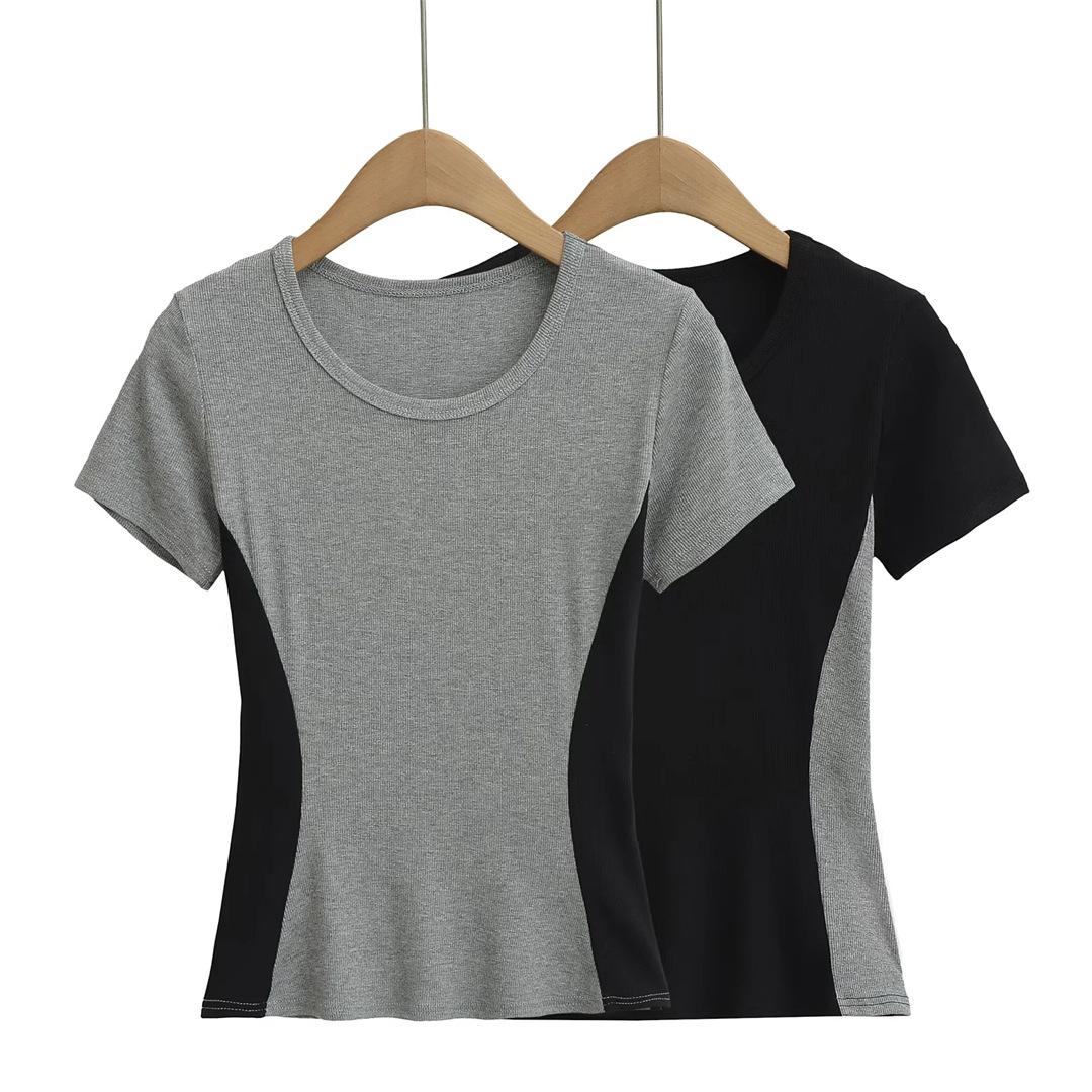 Camiseta Básica Retro Nicho Cuello Redondo Manga Corta Diseño Elegante Sexy Combinación de Colores Afinando la Cintura Look Top Verano
