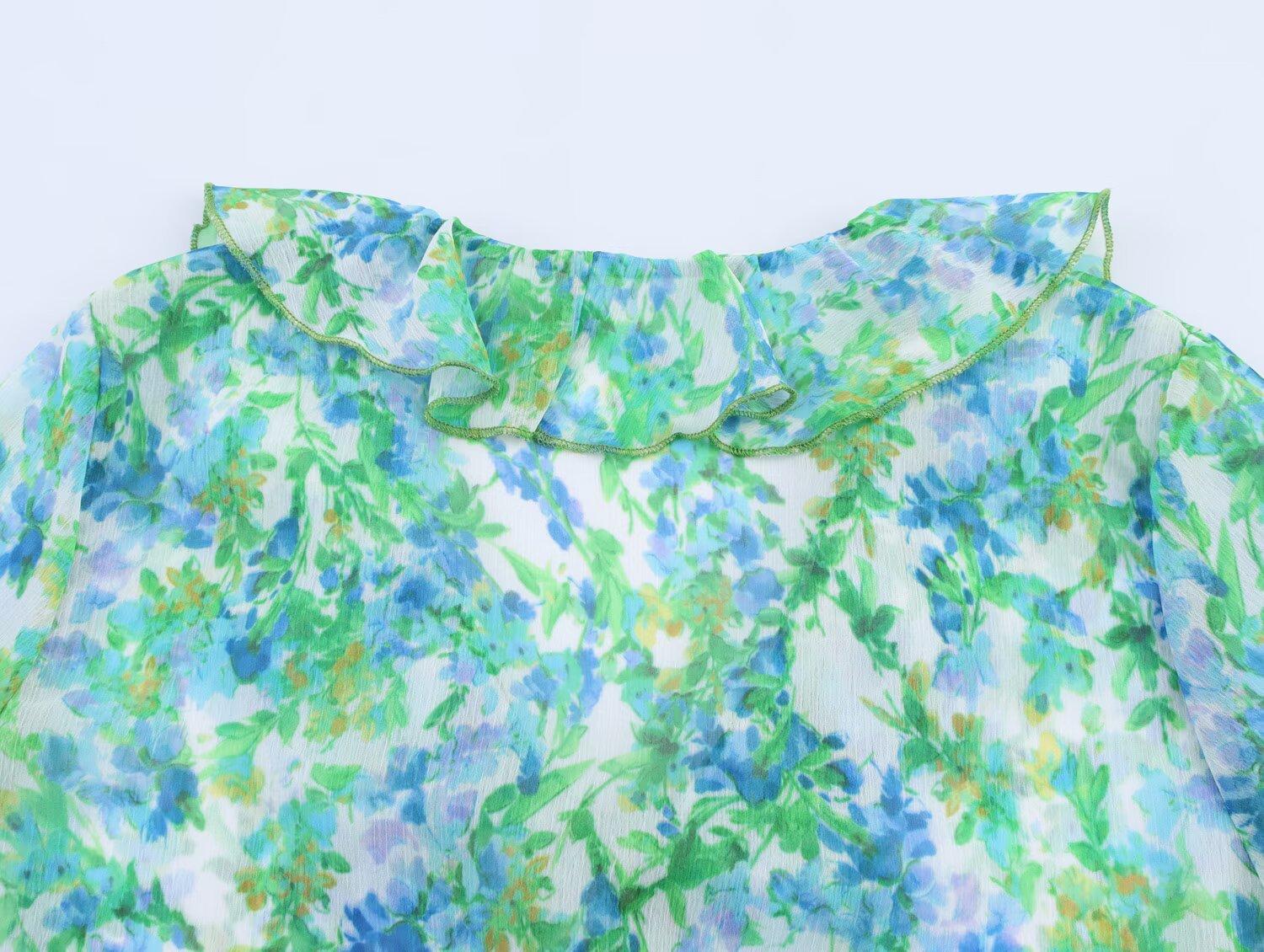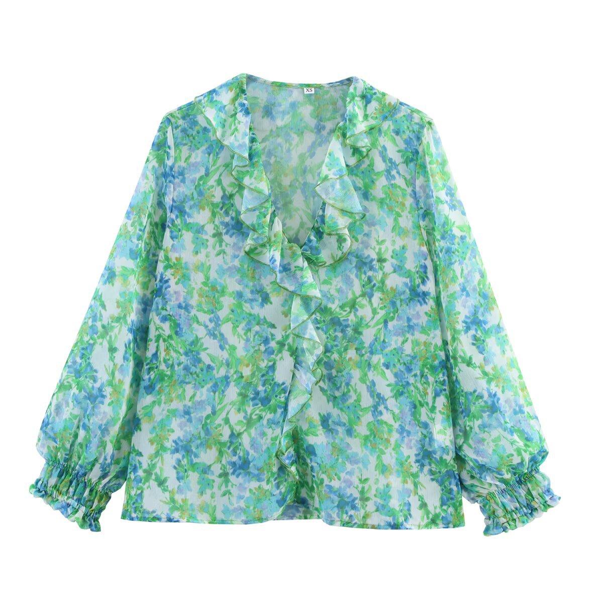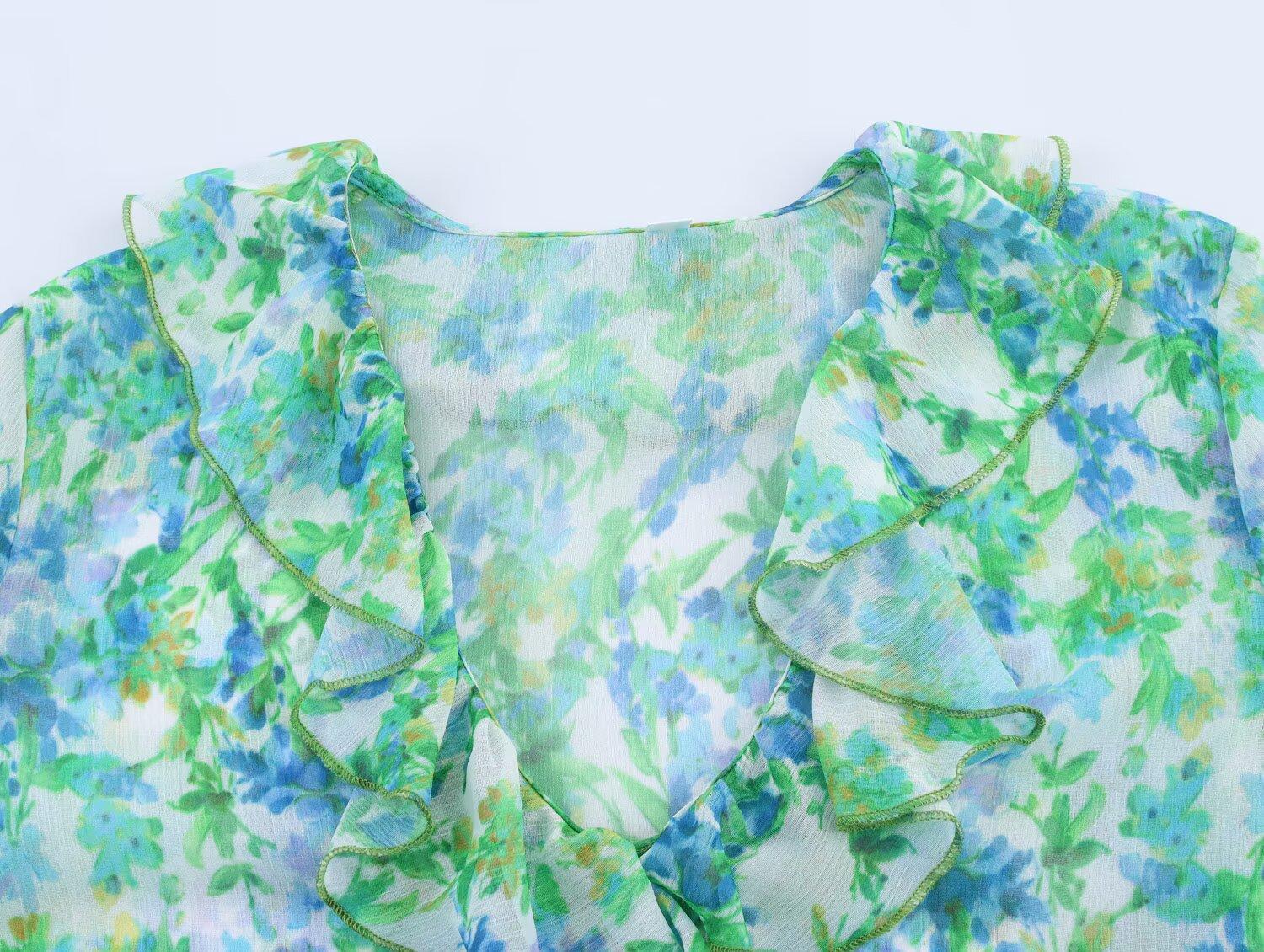 2025 Nueva Ropa de Verano para Mujer Estilo Europeo y Americano Moda Sencilla Versátil Capas Decorativas Camisa de Flores 3000268