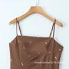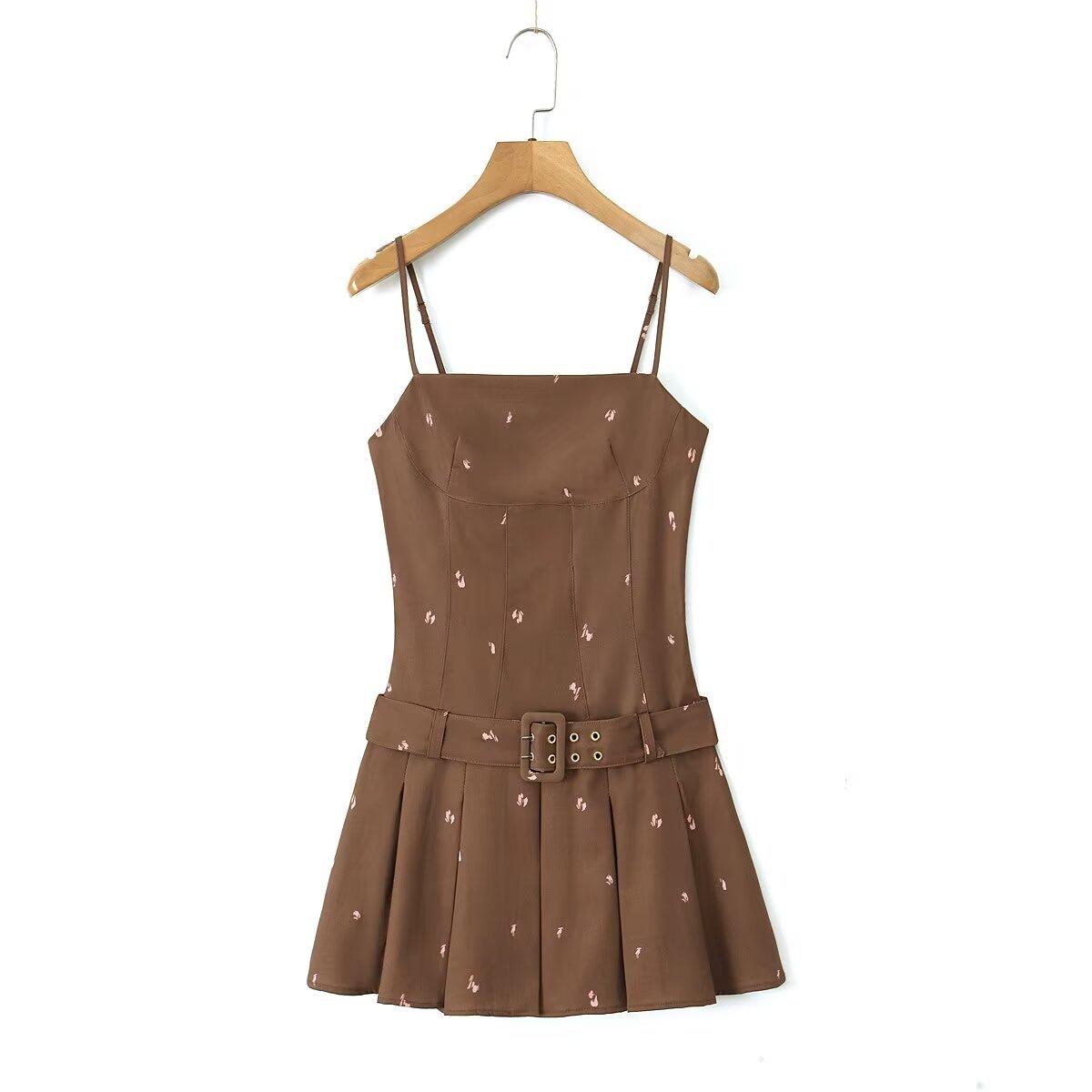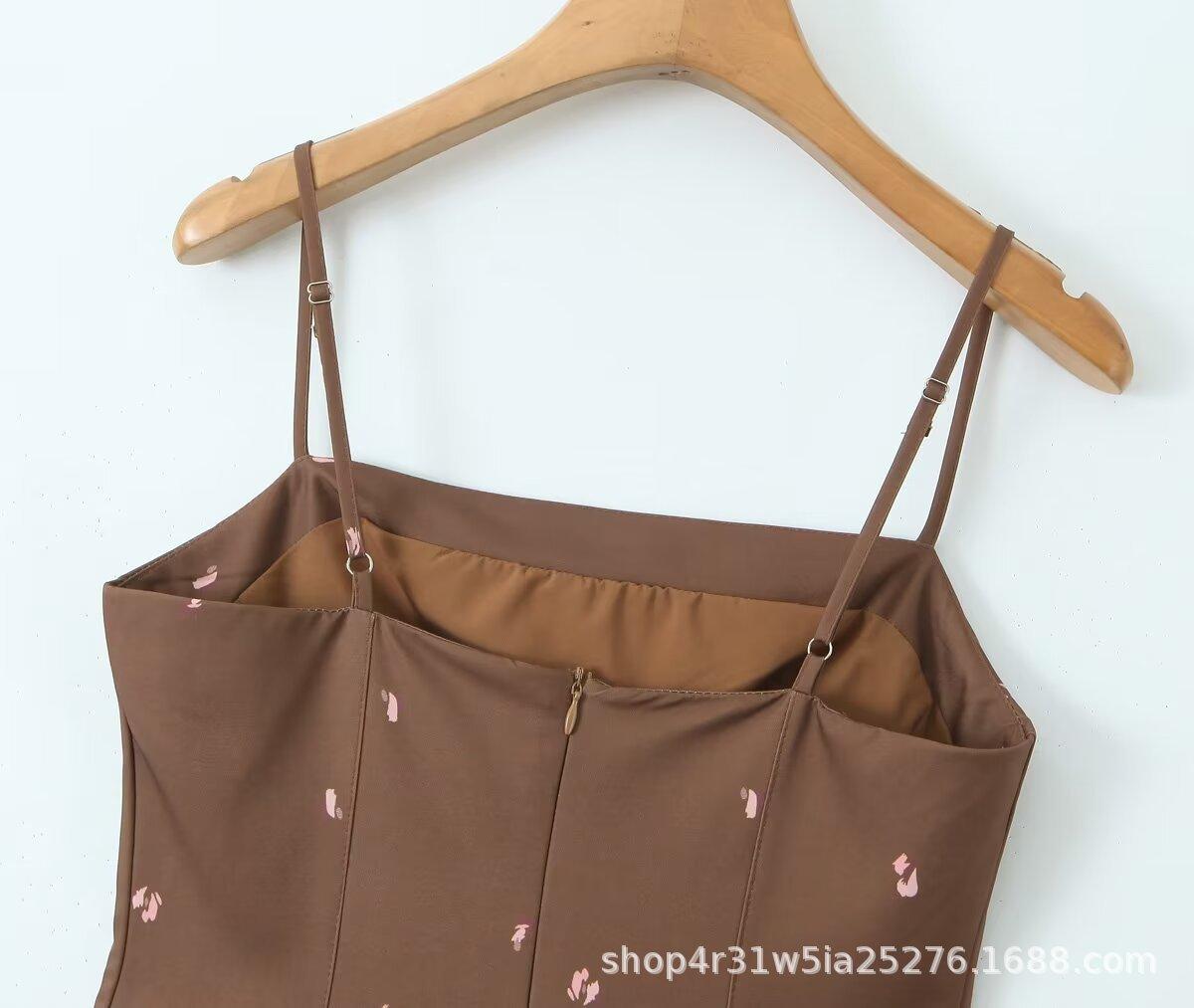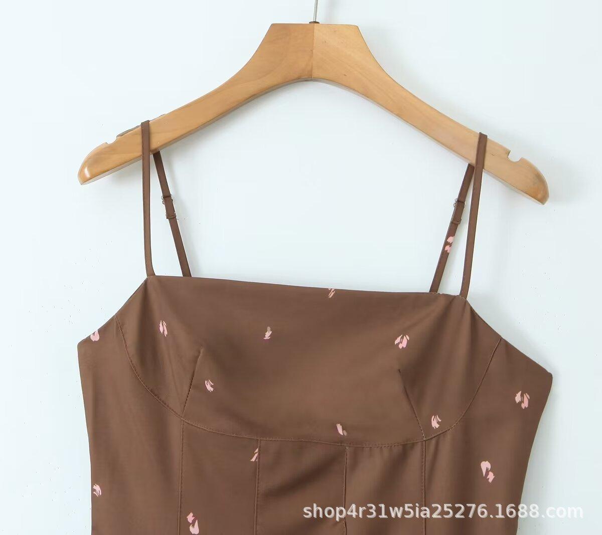 Europeo y Americano al por Mayor 2024 Verano Nuevo Estilo Vestido Slim de Tirantes con Estampado Retro Francés