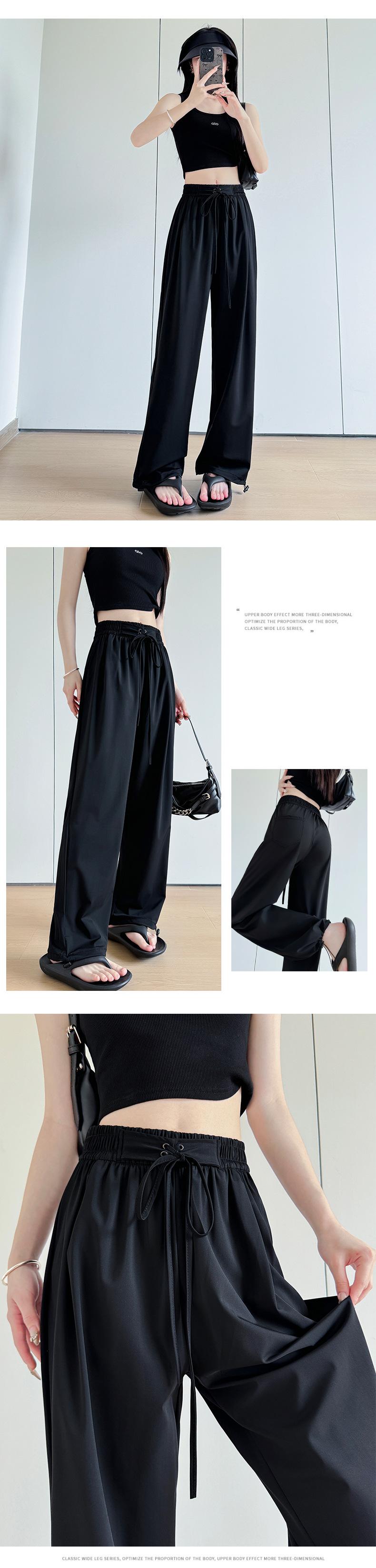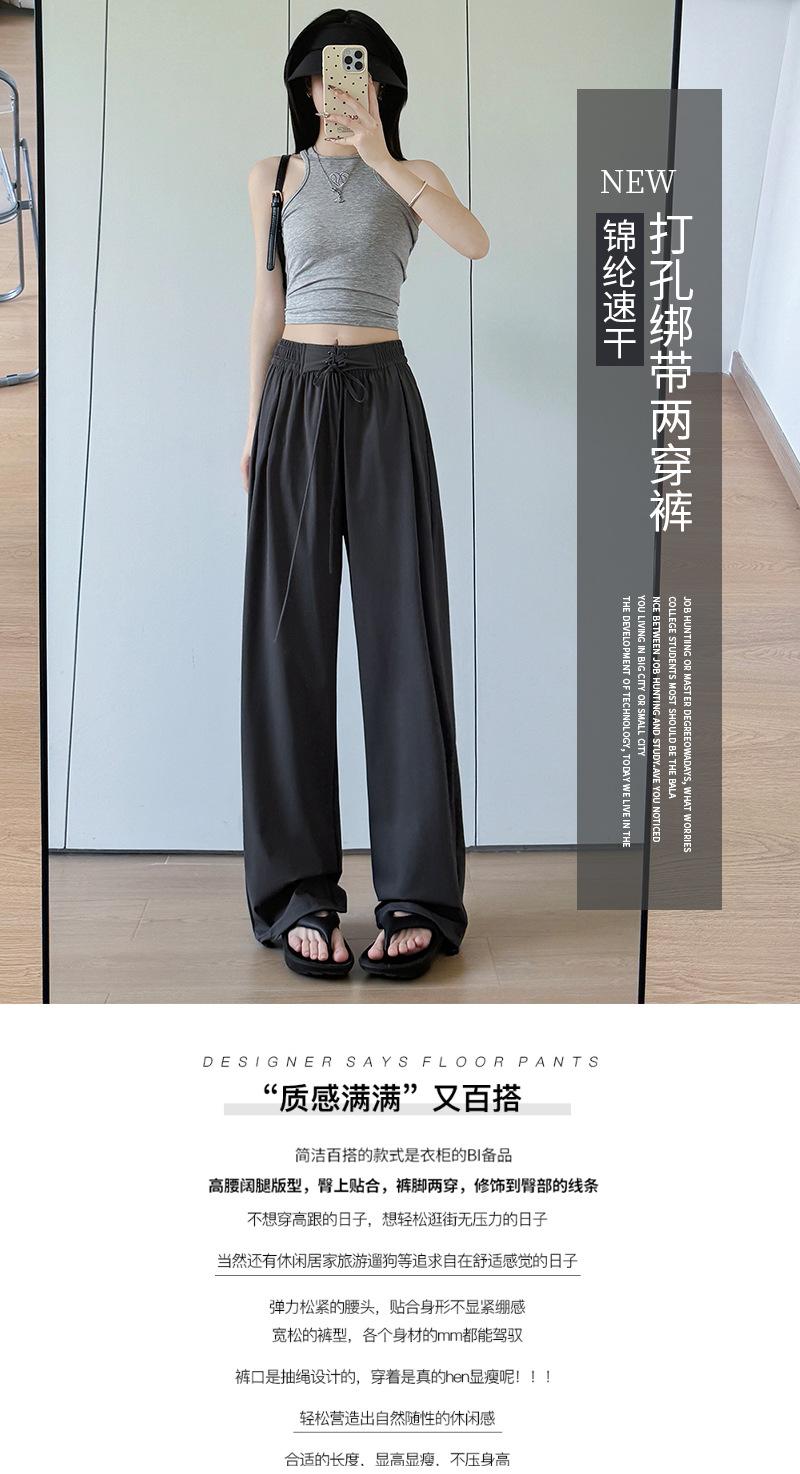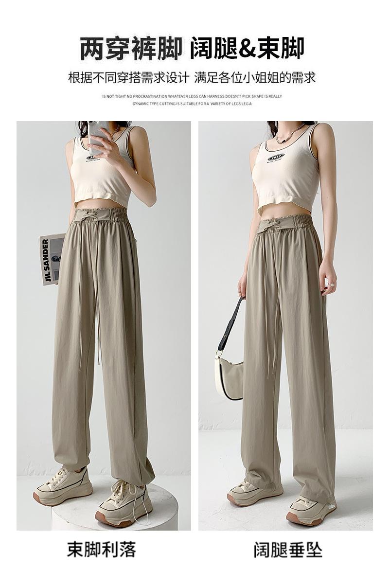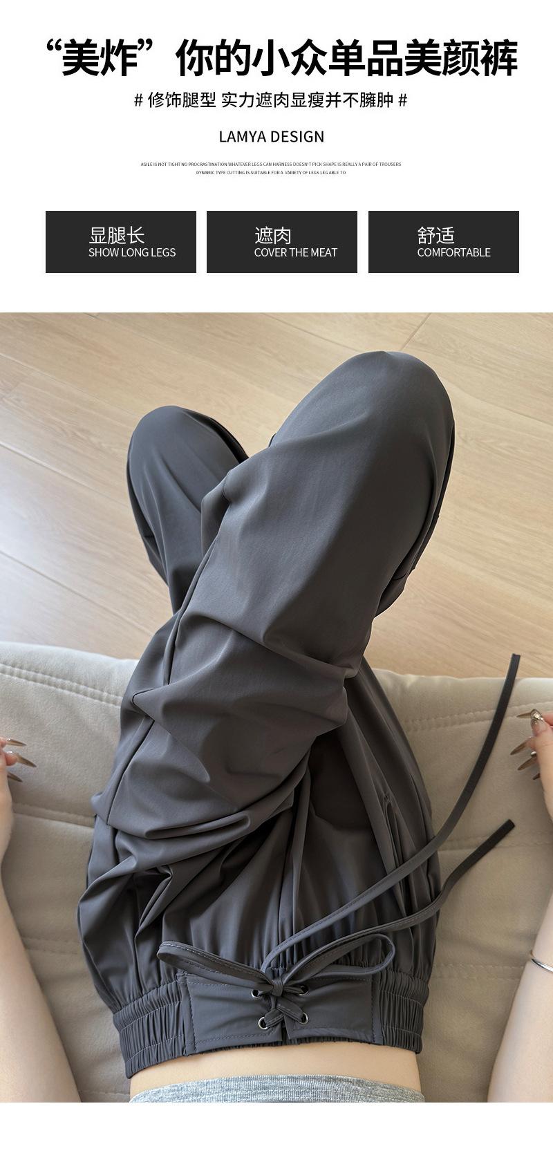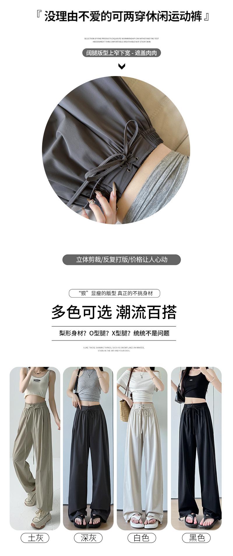 Pantalones Grises con Lazo para Protección Solar para Mujer, Pantalones Delgados de Verano de Cintura Alta Sueltos de Pierna Ancha, Pantalones Deportivos Rectos Casuales Jogger de Secado Rápido