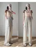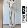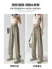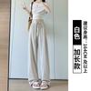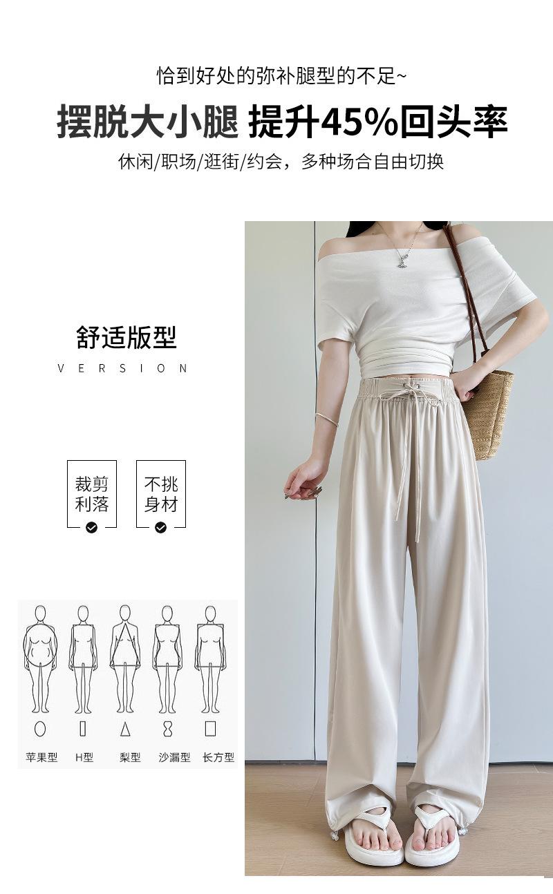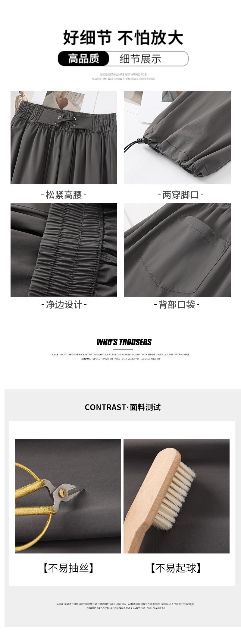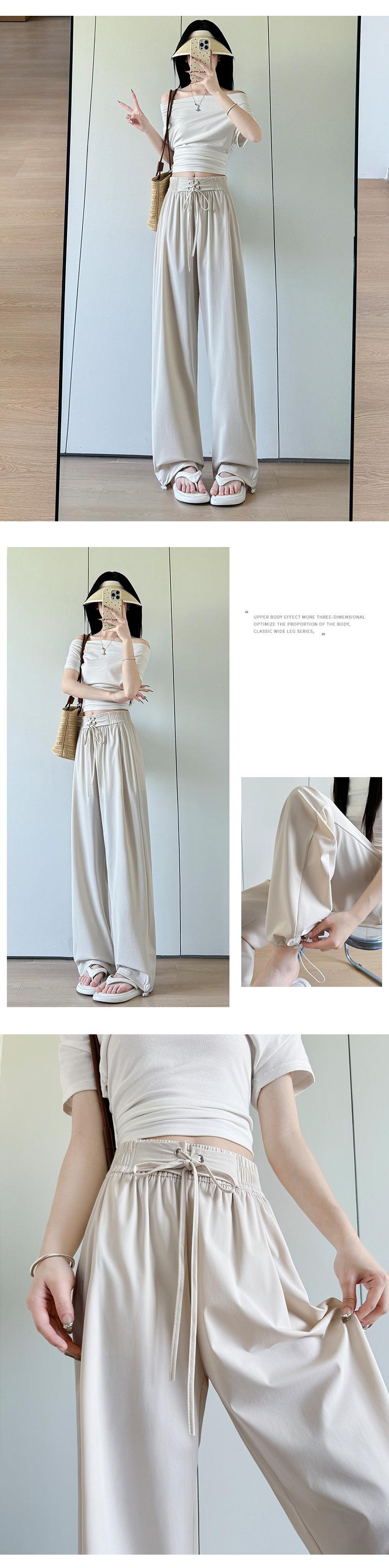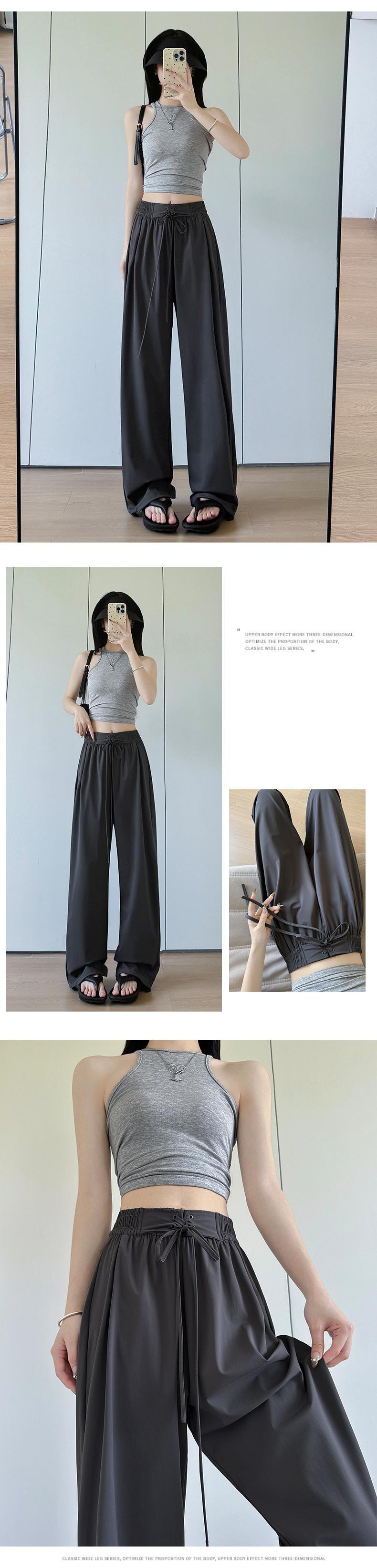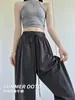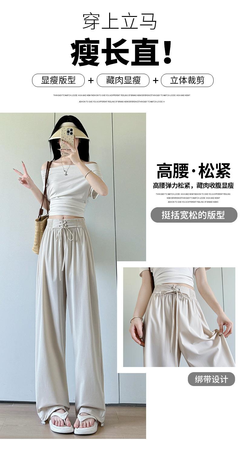 Pantalones Grises con Lazo para Protección Solar para Mujer, Pantalones Delgados de Verano de Cintura Alta Sueltos de Pierna Ancha, Pantalones Deportivos Rectos Casuales Jogger de Secado Rápido