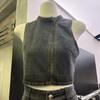 Chaleco de mezclilla en capas moderno y versátil para mujer Primavera y Verano Nuevo Chaqueta corta sin mangas holgada Casual