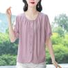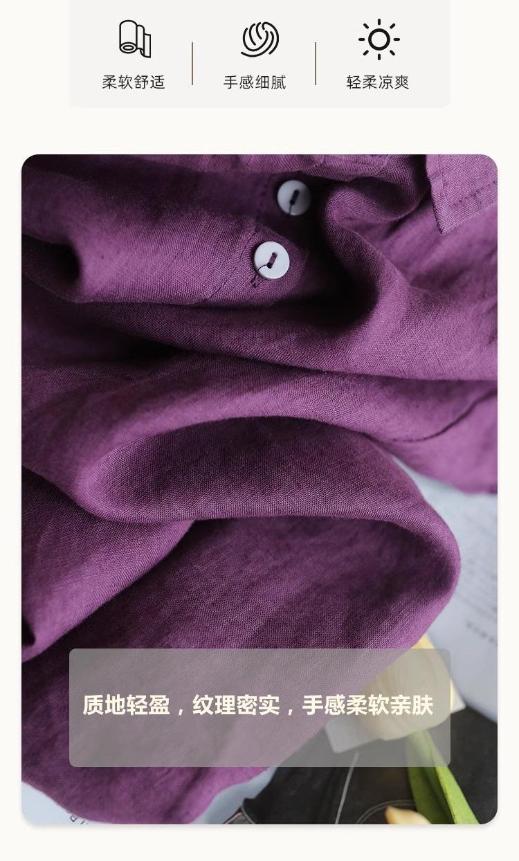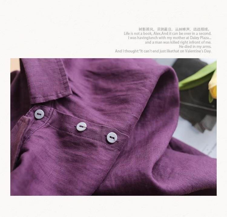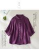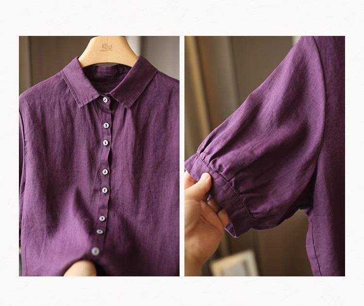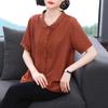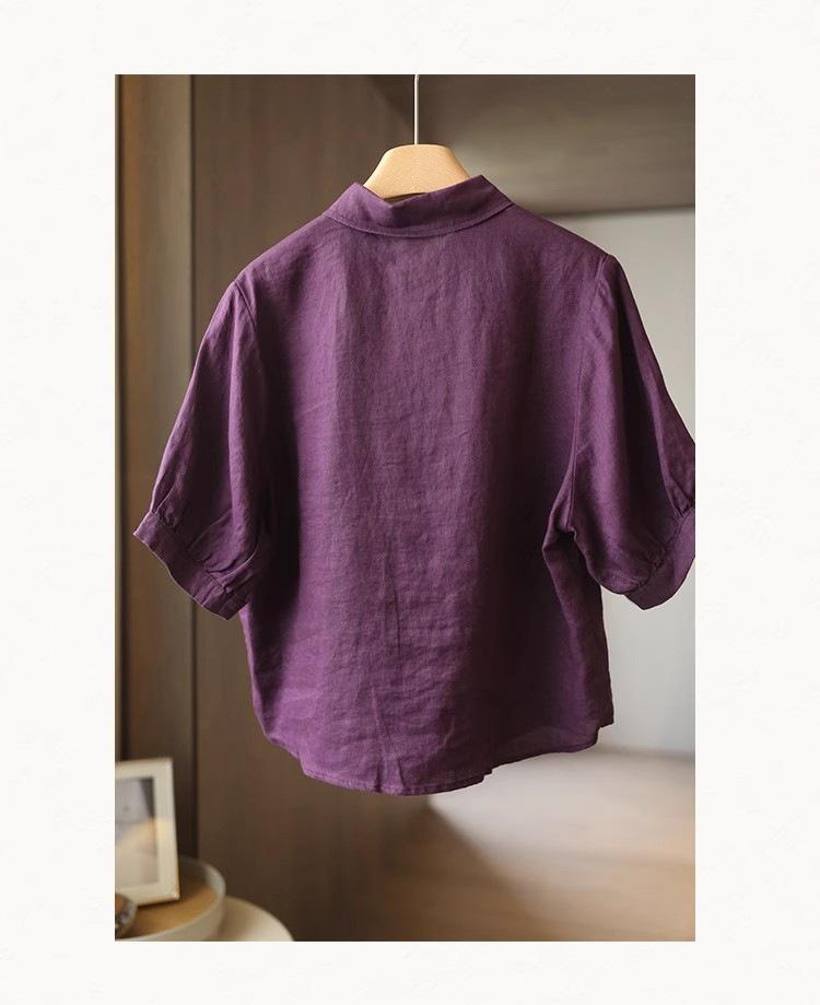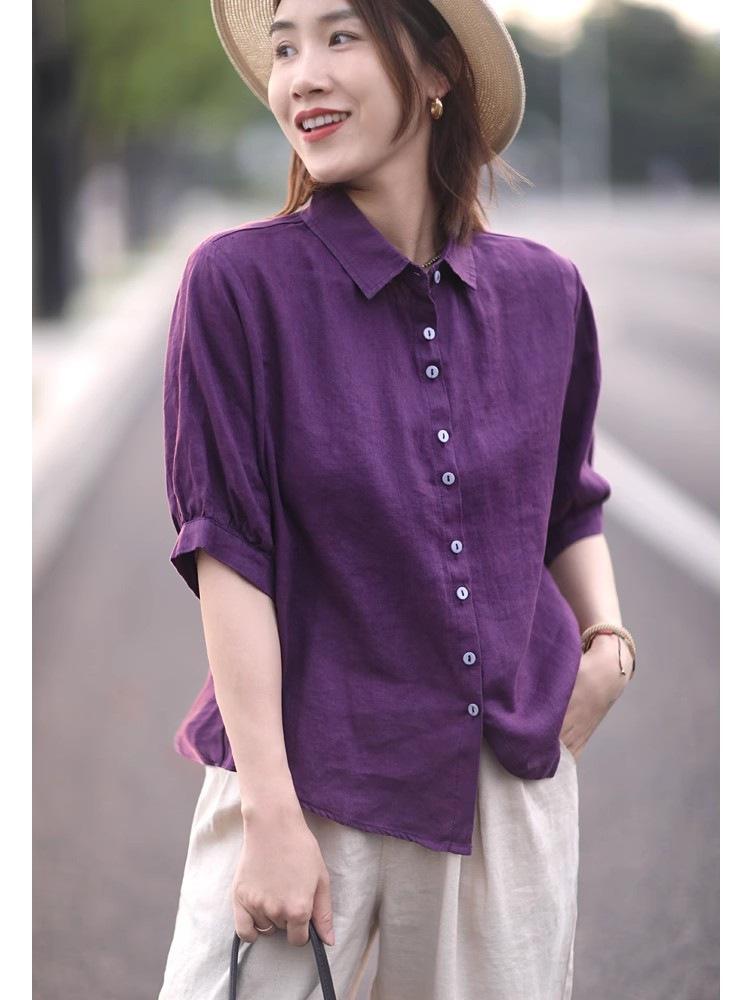 Verano 2025 Ocio Artístico Reductor de Edad Holgado Adelgazante Color Sólido Camisa de Lino Algodón Lino Top Manga Corta para Mujer