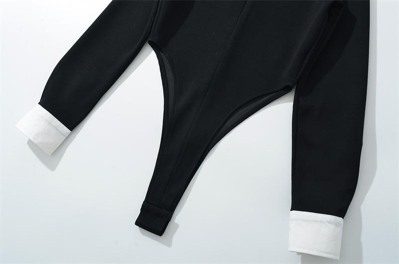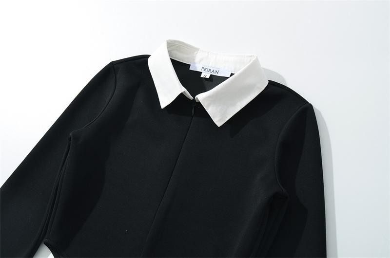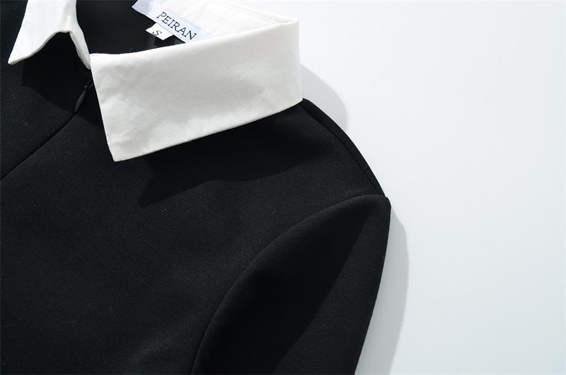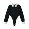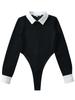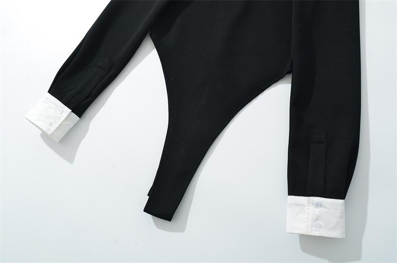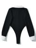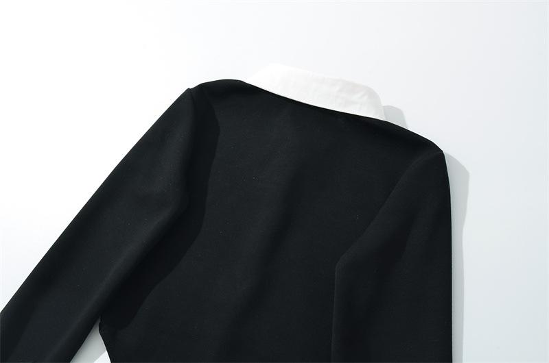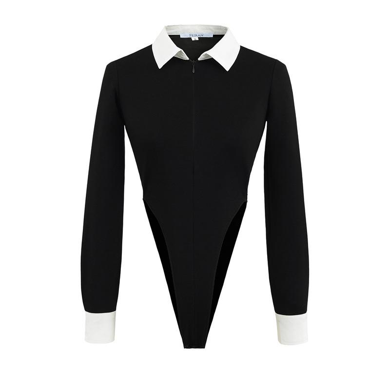 Mono ajustado sexy de estilo europeo y americano con solapa en contraste, manga larga, primavera 2025 nuevo, camisa básica Spice Girls de corte slim para mujer