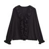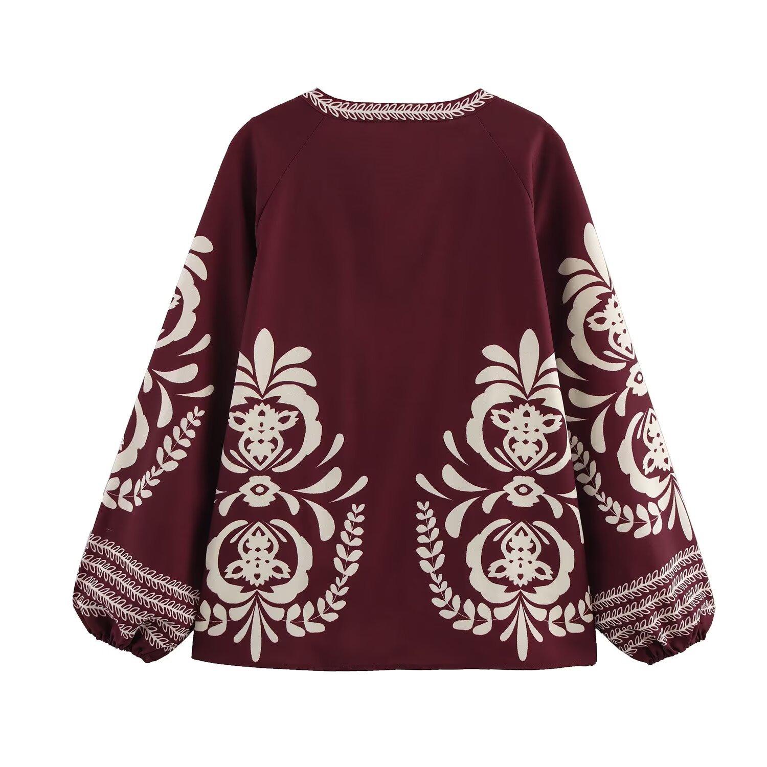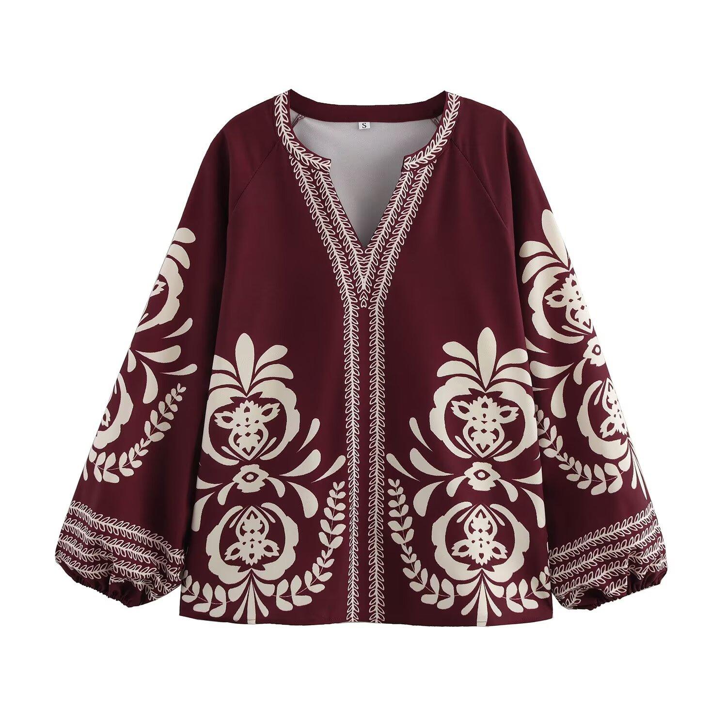 Ropa de Mujer Nueva Primavera 2025 Estilo Europeo y Americano Moda Sencilla Suelta Cuello en V Estampado Posicionado Camisa de Manga Larga
