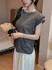 Verano Nuevo Color Sólido Holgado Versátil Casual Camiseta Ancha para Mujer, Ajuste Delgado, Diseño de Cuello Redondo, Top sin Mangas